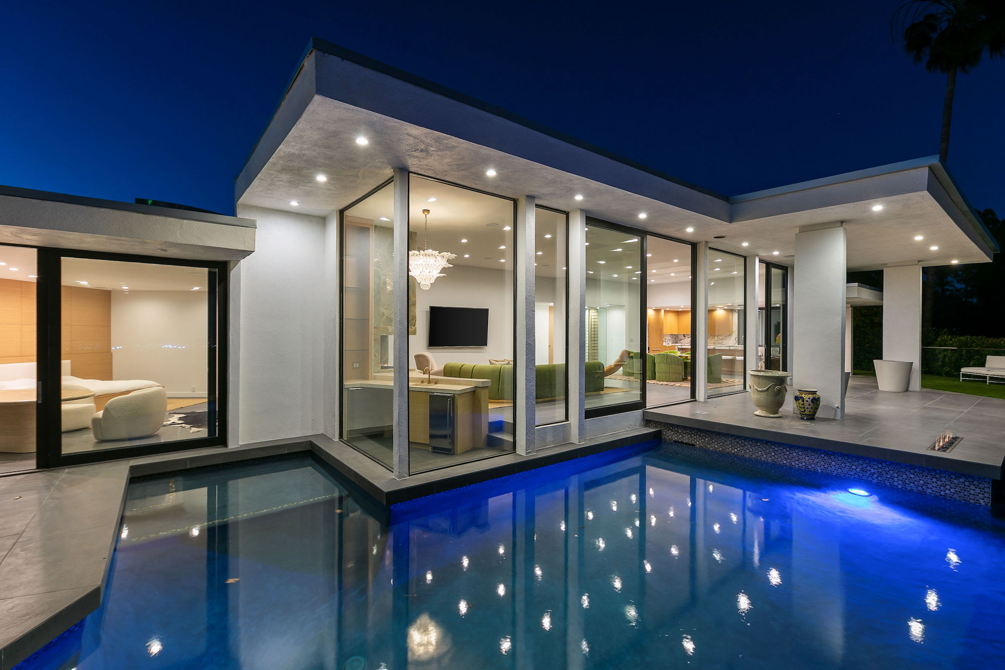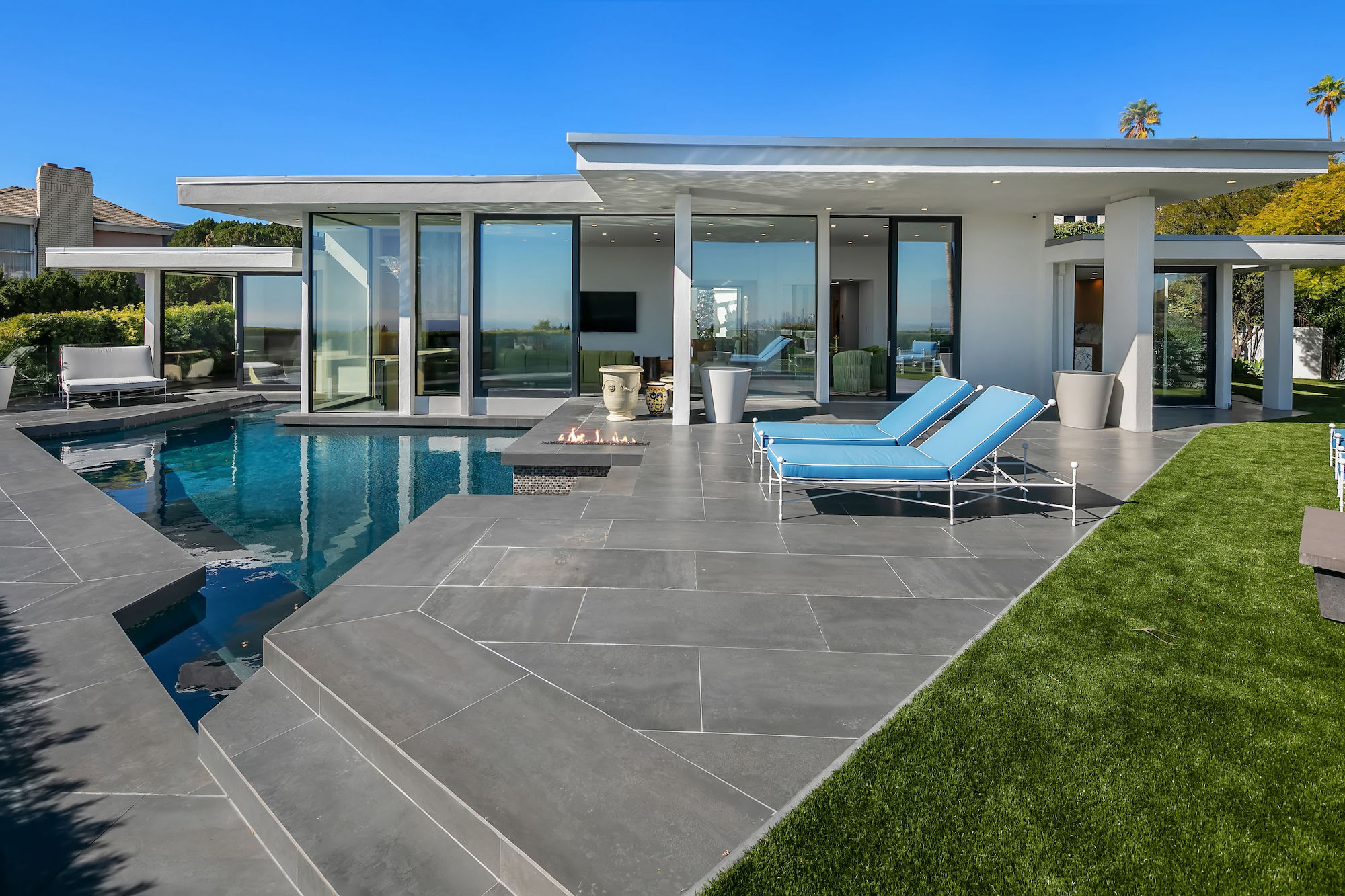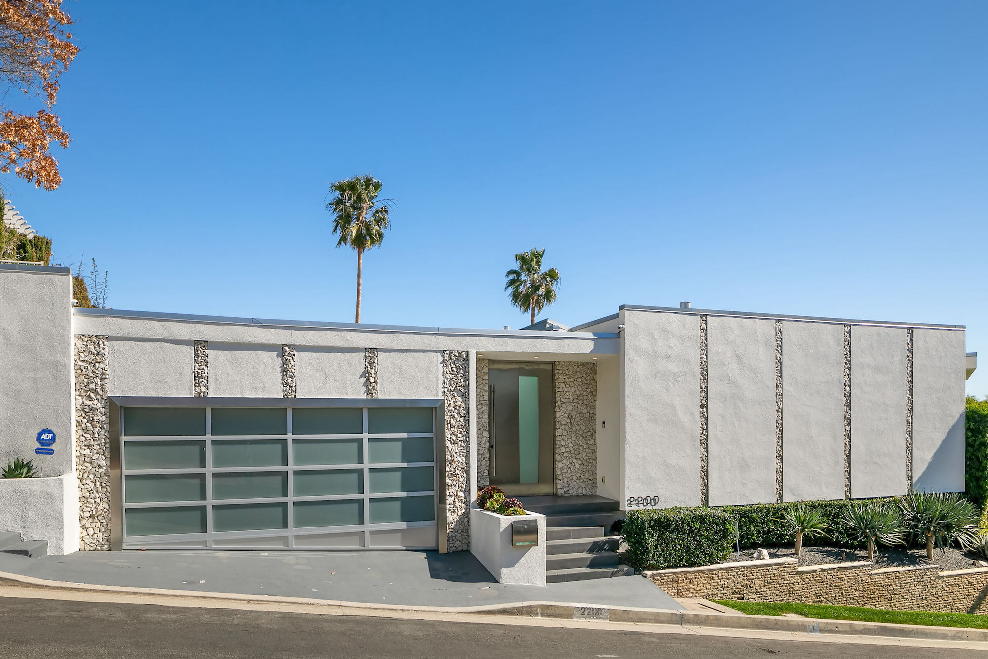 Seller Will Accept Bitcoin. THE ELVIS HOUSE! A Mid-Century Modern Classic perched high above the city lights set on a corner lot showcasing dramatic jet-liner views while maintaining ample privacy. Designed by legendary architect Hal Levitt, the storied home was featured in the 1968 Film "Live a Little, Love a Little" starring Elvis Presley. Having undergone tremendous renovations since then, the home now embodies all the luxuries of a modern home while maintaining the integrity of its classic Hollywood origin. Enjoy breathtaking sweeping views throughout the home with floor-to-ceiling windows and sliding glass doors that open to the enormous outdoor patio hosting a pool and an abundance of lounge space. Features include an open floor plan, porcelain tile floors, a green onyx fireplace with travertine trim, solid brass finishes, hand-painted Italian silk wallpaper, Murano antique light fixtures, stunning stonework, a new control 4 system, and custom furniture throughout (avail for purchase). 2200 Hercules Dr is a world-class property that is not to be missed.