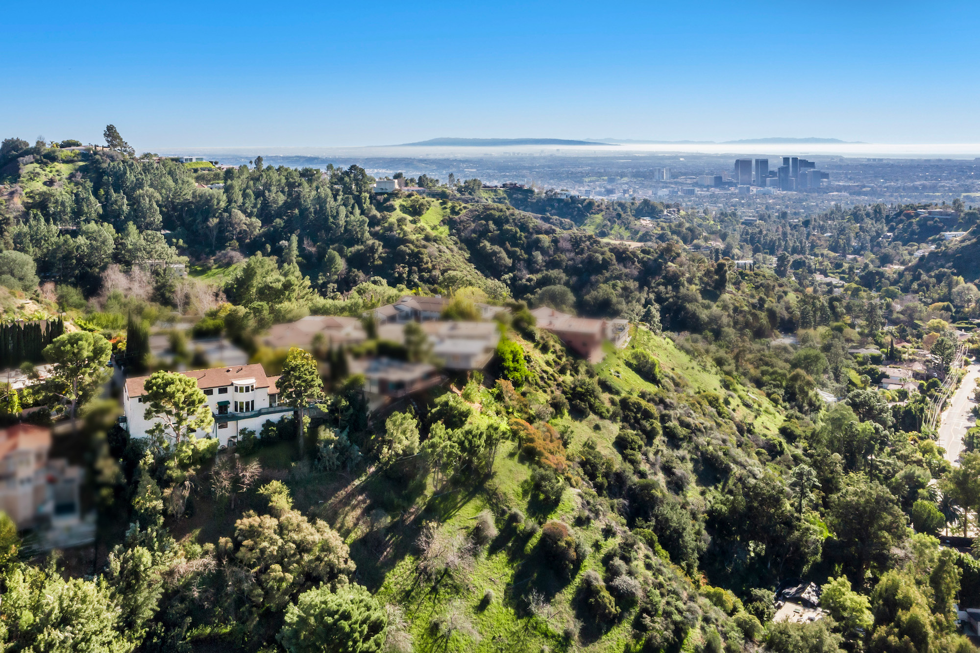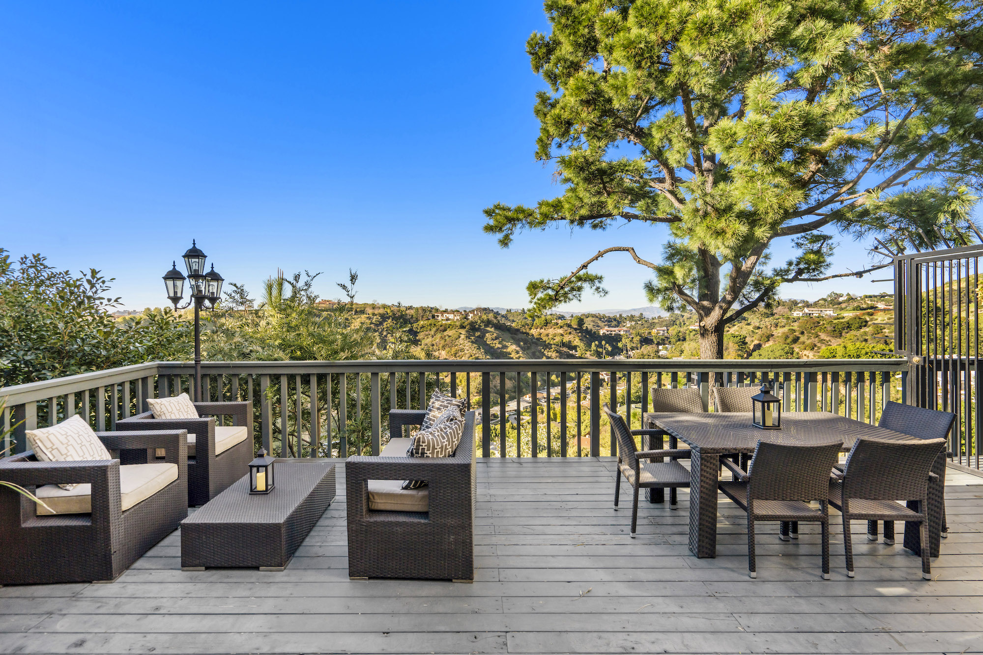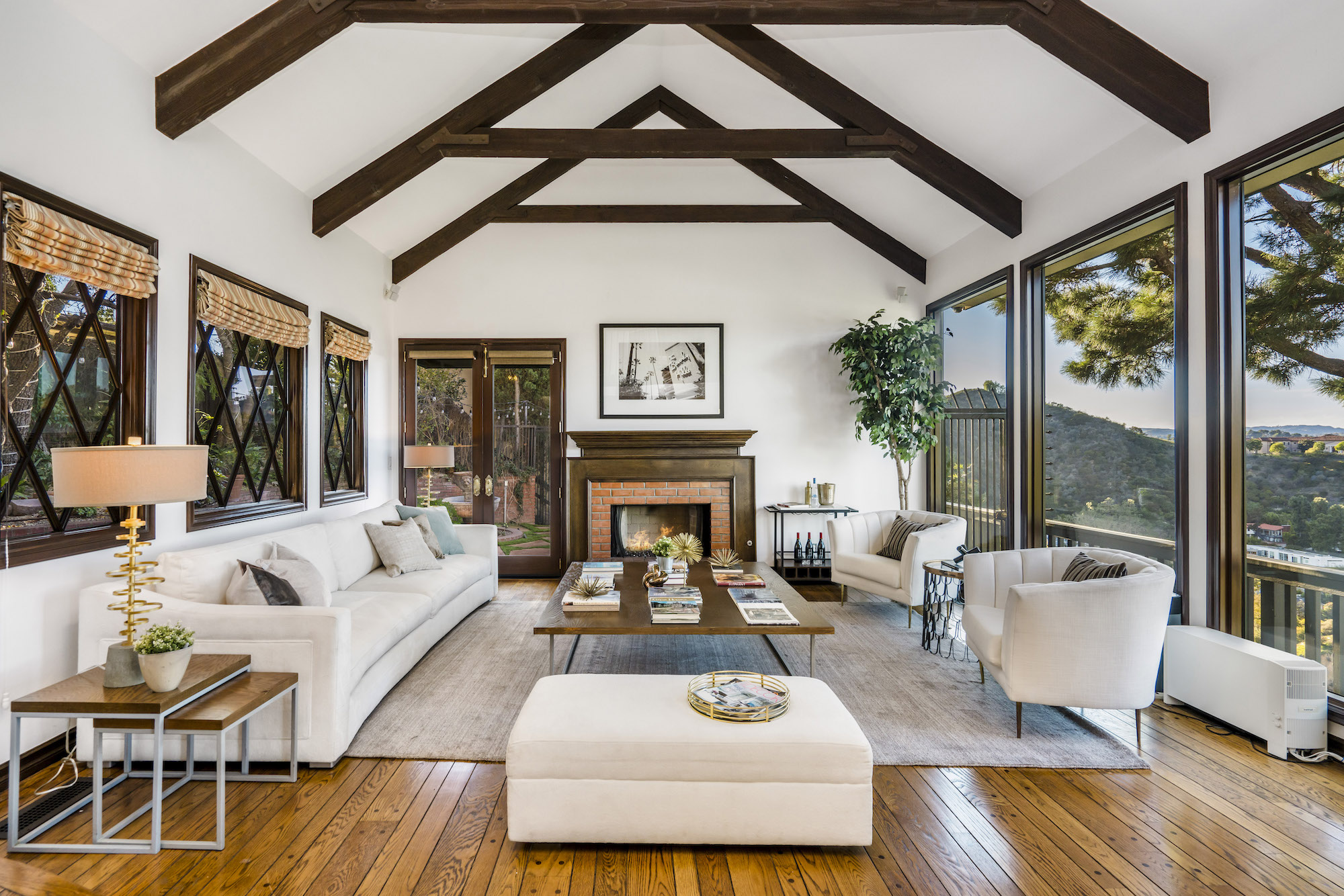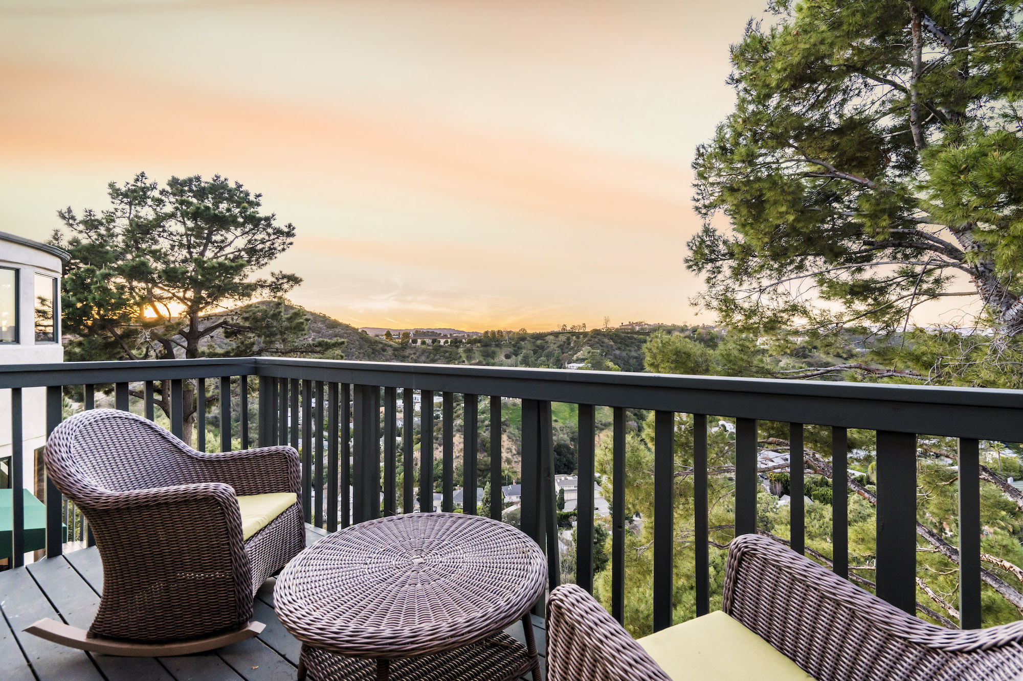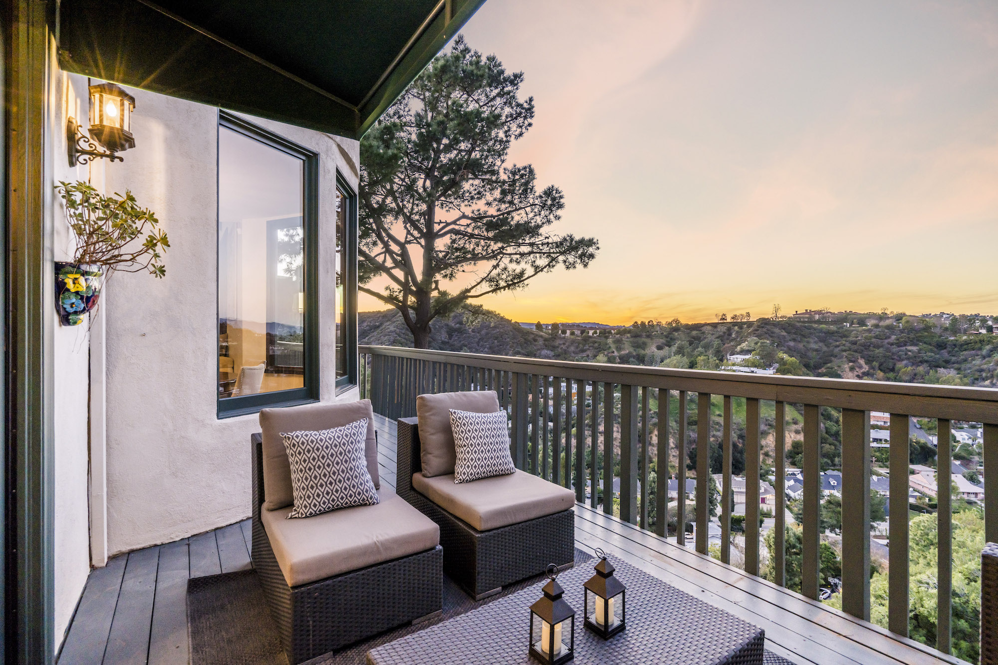 2251 Gloaming Way - This west facing view estate nestled in the hills of Beverly Hills Post Office, featuring 4 bedrooms + 4.5 bathrooms is just minutes away from the Golden Triangle and Sunset Strip. Upon entering, the great room welcomes you to a grand staircase and soaring wood beamed ceilings flooded with natural light, where you can take in some of the most eye-catching sunsets over the Santa Monica Mountains. Enjoy views from every room with an open floor plan that takes advantage of this 143 foot wide lot. The upper level encompasses a primary suite that offers a private deck, den, spacious closet, and separate shower and soaking tub. Adjacent are two guest bedrooms, each with their own bathroom. The lower level features a guest bedroom with an updated en-suite bathroom, kitchen and dining area, which leads to a wrap-around deck and backyard with plenty of room to entertain guests. Located within the West Hollywood Elementary school boundaries. Other amenities include a double lot of 12,185 square feet, 3-car garage, hardwood flooring throughout, and potential to add an infinity edge pool overlooking panoramic canyon views. If you are looking for serenity, views, and privacy in BHPO, look no further.