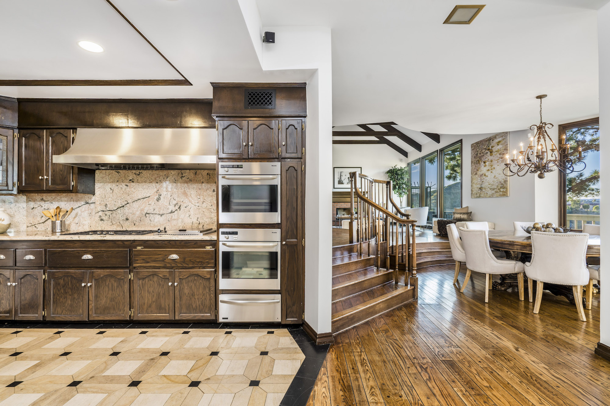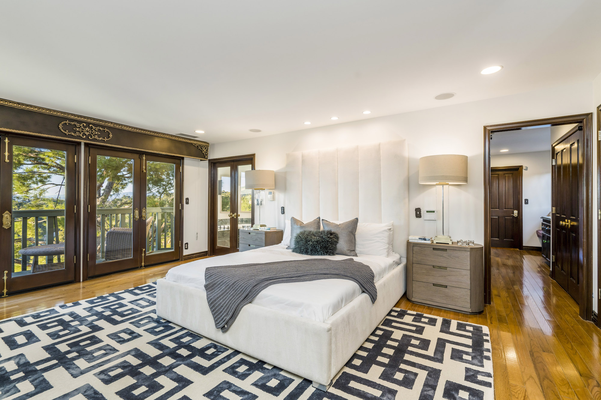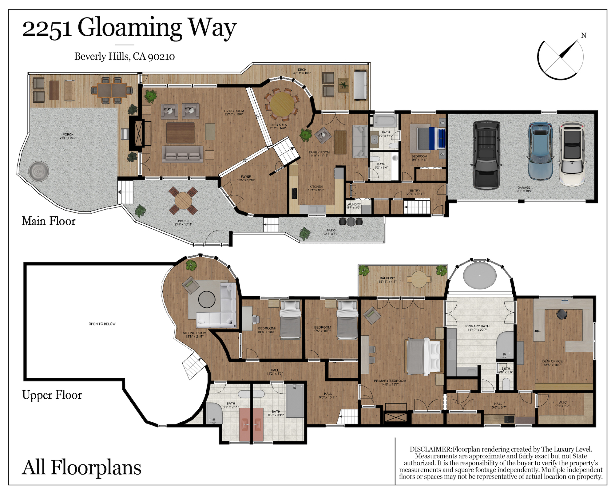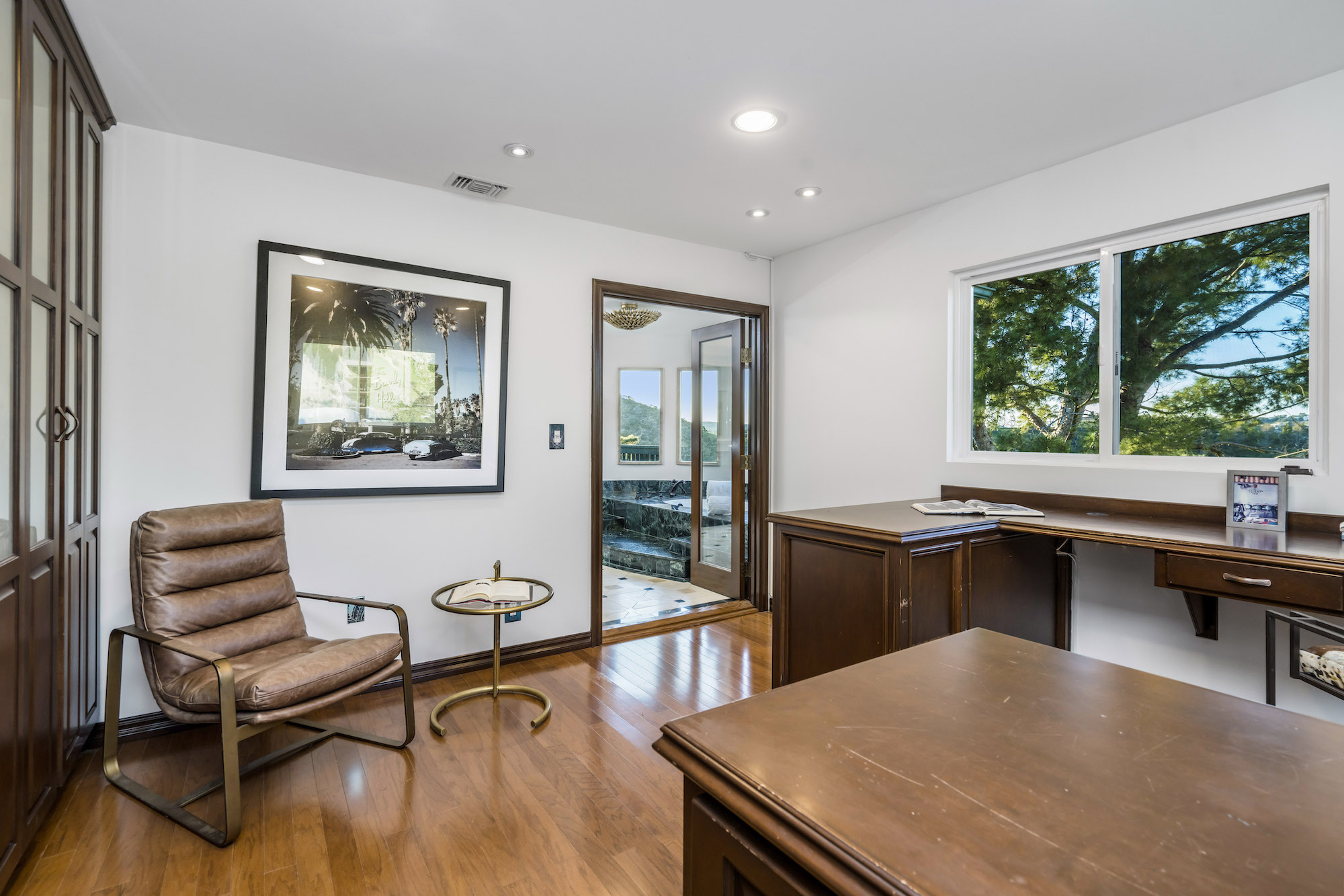 2251 Gloaming Way - This west facing view estate nestled in the hills of Beverly Hills Post Office, featuring 4 bedrooms + 4.5 bathrooms is just minutes away from the Golden Triangle and Sunset Strip. Upon entering, the great room welcomes you to a grand staircase and soaring wood beamed ceilings flooded with natural light, where you can take in some of the most eye-catching sunsets over the Santa Monica Mountains. Enjoy views from every room with an open floor plan that takes advantage of this 143 foot wide lot. The upper level encompasses a primary suite that offers a private deck, den, spacious closet, and separate shower and soaking tub. Adjacent are two guest bedrooms, each with their own bathroom. The lower level features a guest bedroom with an updated en-suite bathroom, kitchen and dining area, which leads to a wrap-around deck and backyard with plenty of room to entertain guests. Located within the West Hollywood Elementary school boundaries. Other amenities include a double lot of 12,185 square feet, 3-car garage, hardwood flooring throughout, and potential to add an infinity edge pool overlooking panoramic canyon views. If you are looking for serenity, views, and privacy in BHPO, look no further.