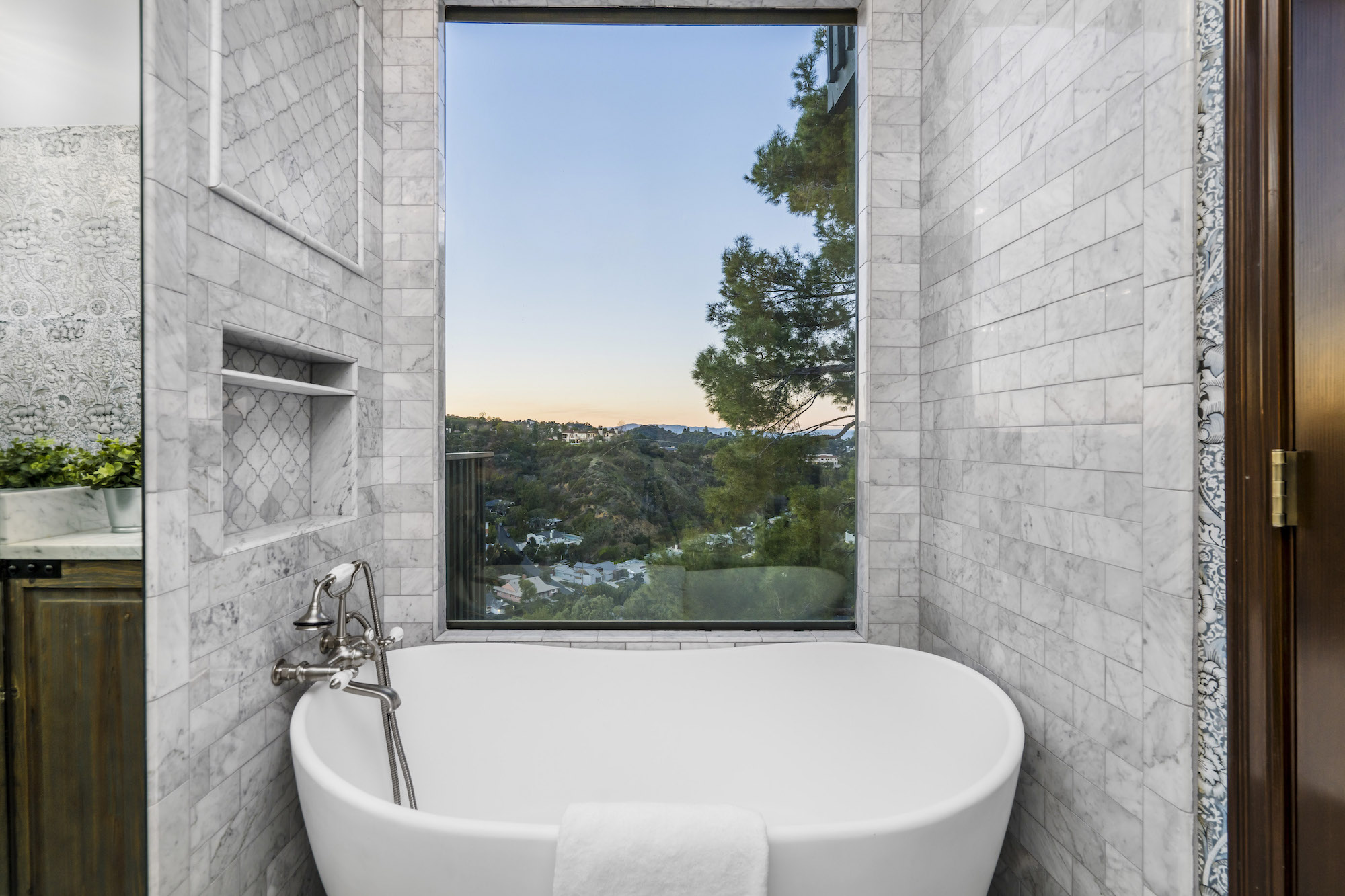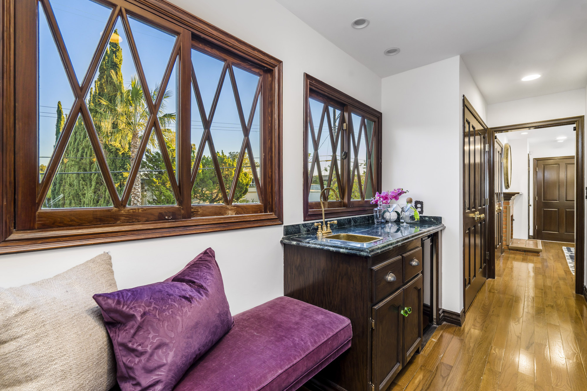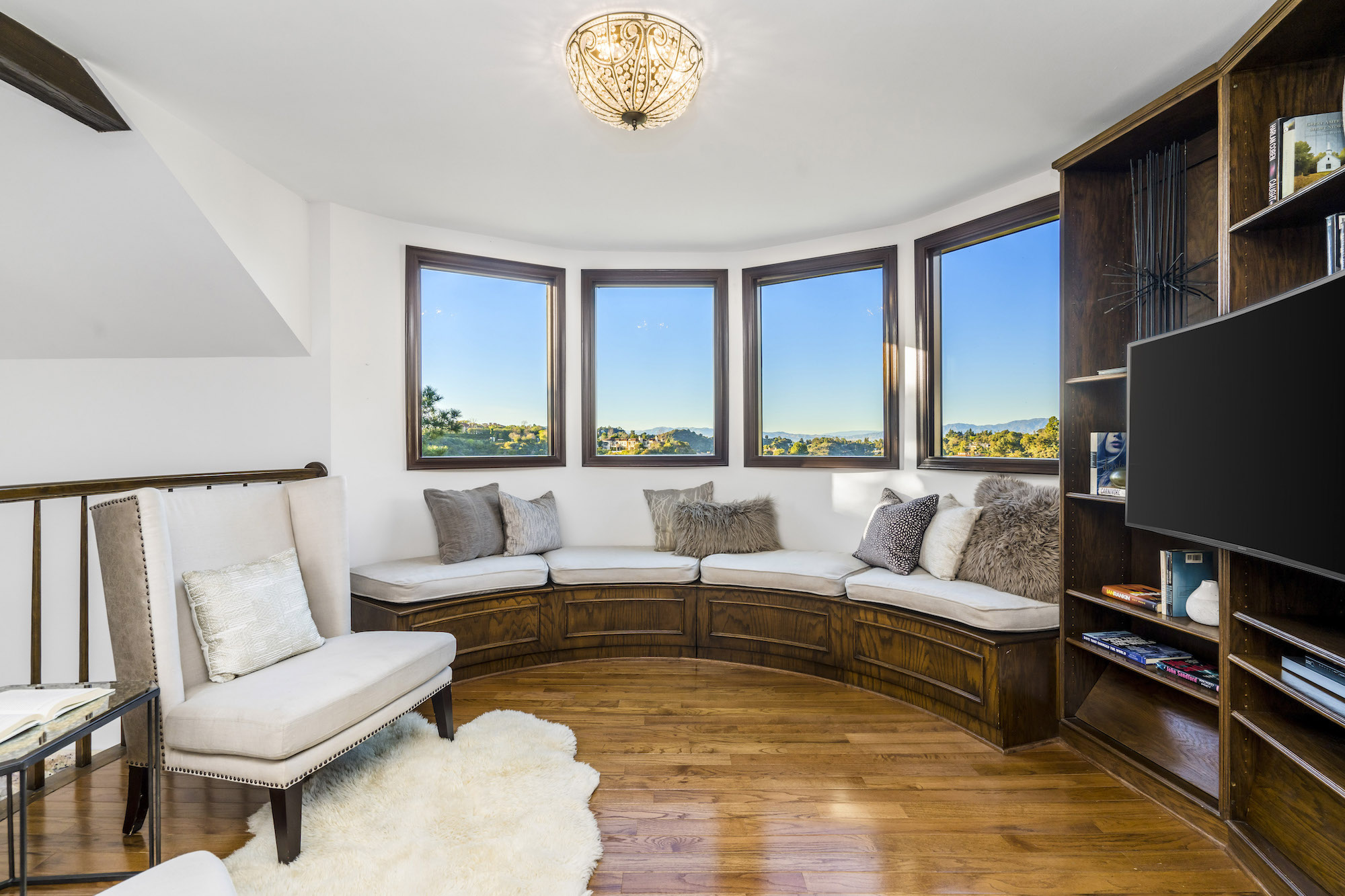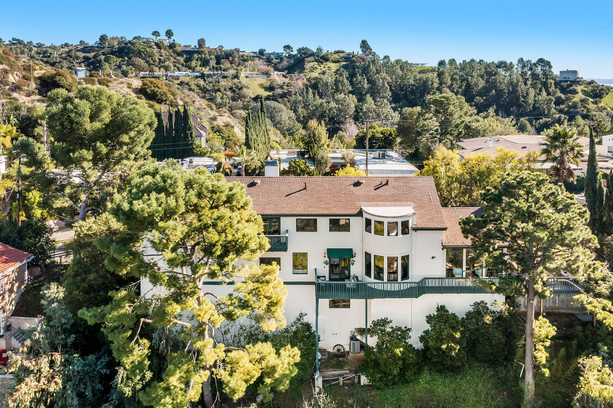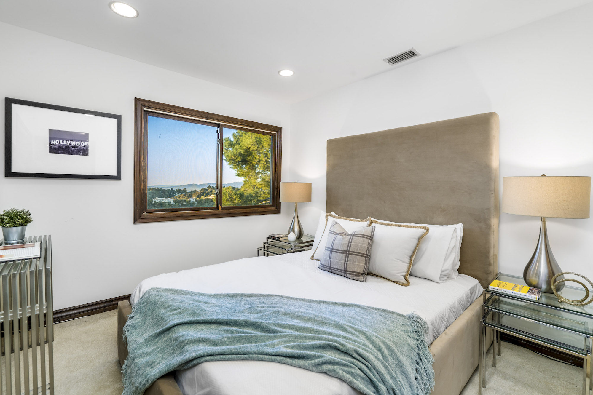 2251 Gloaming Way - This west facing view estate nestled in the hills of Beverly Hills Post Office, featuring 4 bedrooms + 4.5 bathrooms is just minutes away from the Golden Triangle and Sunset Strip. Upon entering, the great room welcomes you to a grand staircase and soaring wood beamed ceilings flooded with natural light, where you can take in some of the most eye-catching sunsets over the Santa Monica Mountains. Enjoy views from every room with an open floor plan that takes advantage of this 143 foot wide lot. The upper level encompasses a primary suite that offers a private deck, den, spacious closet, and separate shower and soaking tub. Adjacent are two guest bedrooms, each with their own bathroom. The lower level features a guest bedroom with an updated en-suite bathroom, kitchen and dining area, which leads to a wrap-around deck and backyard with plenty of room to entertain guests. Located within the West Hollywood Elementary school boundaries. Other amenities include a double lot of 12,185 square feet, 3-car garage, hardwood flooring throughout, and potential to add an infinity edge pool overlooking panoramic canyon views. If you are looking for serenity, views, and privacy in BHPO, look no further.