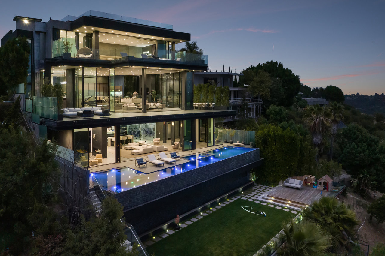 string(1022) "Nestled in prestigious Bel Air, this architectural masterpiece redefines modern luxury with impeccable design and breathtaking views of the hills and lake. The custom Italian-designed kitchen boasts sleek black countertops, a waterfall island, and a striking glass-enclosed wine cellar. The decadent primary bath is adorned with exotic Spanish tiles and features a steam shower, a soaker tub, dual stone sinks, and a double-sided fireplace. Spanning four levels accessible by a private elevator, this home offers an oversized entertainment space, a 1,000+ bottle walk-in wine cellar, a gym, and more. Additional amenities include a gated driveway, a 5-car garage, a Sonos sound system, LED lighting, crystal chandeliers, and exquisite white oak floors. Seamless indoor-outdoor flow is enhanced by floor-to-ceiling glass walls, leading to expansive terraces and an infinity-edge pool that blends harmoniously with the serene surroundings. This Bel Air estate is a showcase of elegance, sophistication, and ultimate comfort."