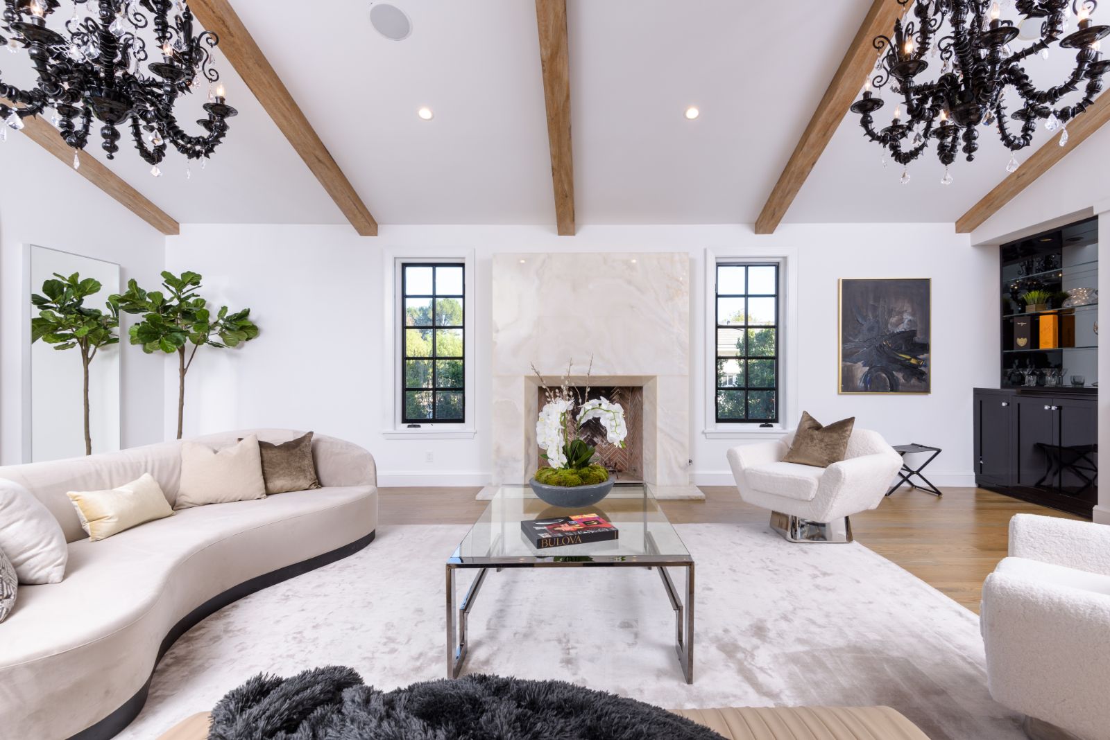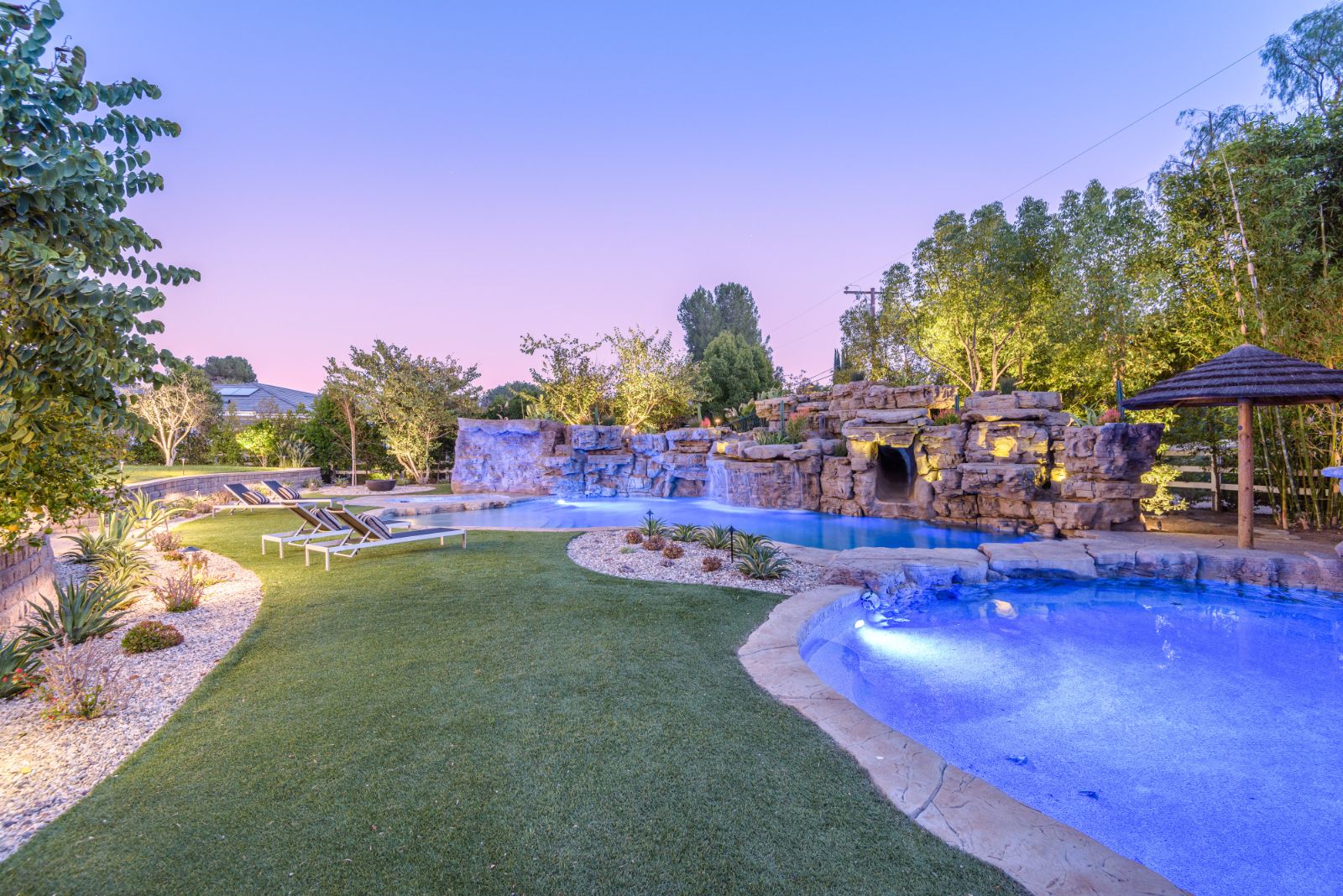 string(1084) "Beautifully remodeled throughout, this gated Hidden Hills Estate spans ~8,500 square feet of immaculate quality and design. Features include soaring open beam ceilings, wood floors, grand living spaces, and a luxurious master suite w/ 2 fireplaces, dual stone baths, and boutique-style custom closets. Offering a wrap-around center island w/ seating, a freestanding Wolf range, four ovens, Miele Coffee center, and pizza oven the chef's kitchen flows seamlessly into the custom family room with a stunning fireplace. Additionally, there is a home theater, dedicated wine room with refrigerated wine storage & linear fireplace, formal living, dining & breakfast rooms, and a sunny front office with large picture windows that overlook the manicured grounds. The wonderfully private resort-like yard hosts one of the most beautiful beach entry pools in the city with multiple waterfalls and a spa. The adjoining large entertainer's pavilion includes a fireplace, music system, TV, pizza oven, and an outdoor kitchen. Lush landscaping and mature fruit & shade trees surround the grounds."