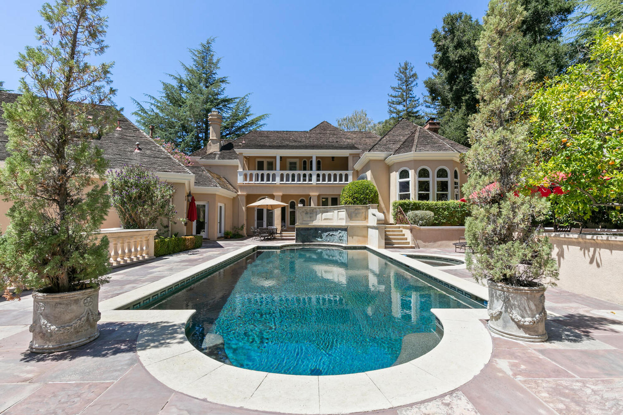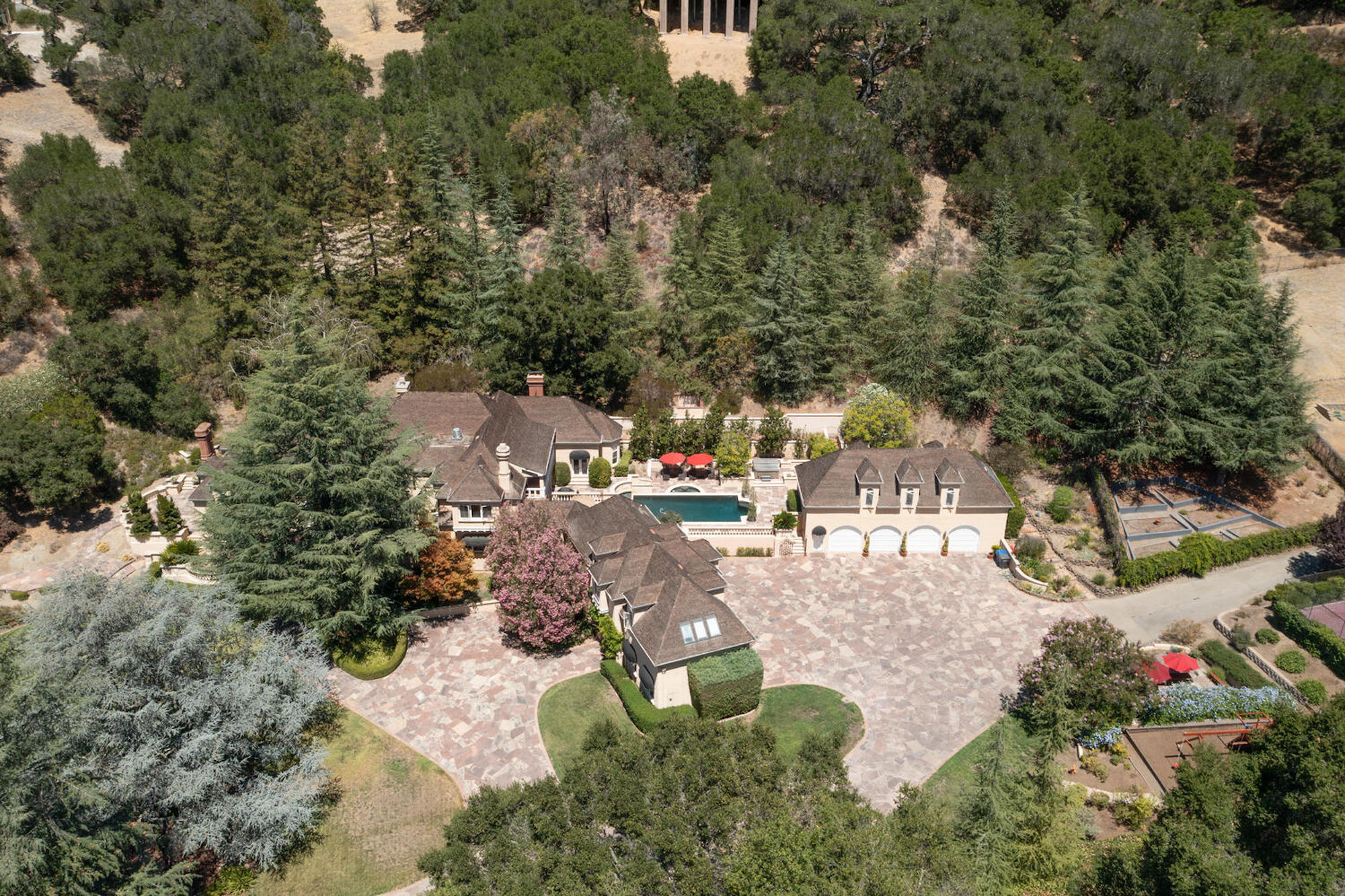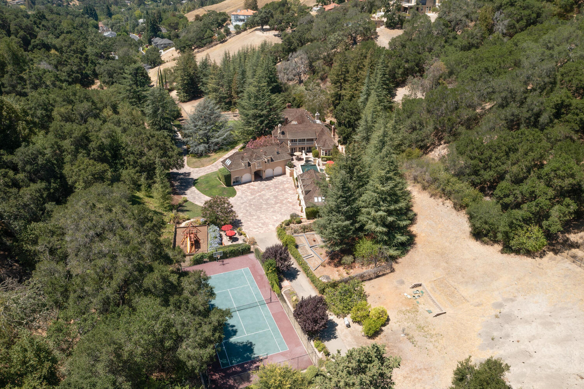 This magnificent property is a true compound and one of its kind in the heart of Los Gatos. This private, gated estate is a 10.6 acre park: scenic tree lined driveway, rolling manicured lawns, glistening statue studded pool and spa, vegetable gardens, rose gardens, Italian-esque garden, Redwoods, playgrounds, sport court, garage space for 8 cars, massive car park for onsite guest parking and on. Completely versatile spaces for entertainment in today's post-pandemic lifestyle! The depth of the quality of materials is immediately evident throughout this stately manor and upon entry into the majestic two-story foyer, with a warm opulence and elegance flowing throughout the home. With close proximity to all the charming shops and restaurants of downtown Los Gatos, this estate is accessible to Silicon Valley, SJC, wine producing vineyards, the beaches and golf of the Monterey Peninsula and the lifestyle of the City of SF.