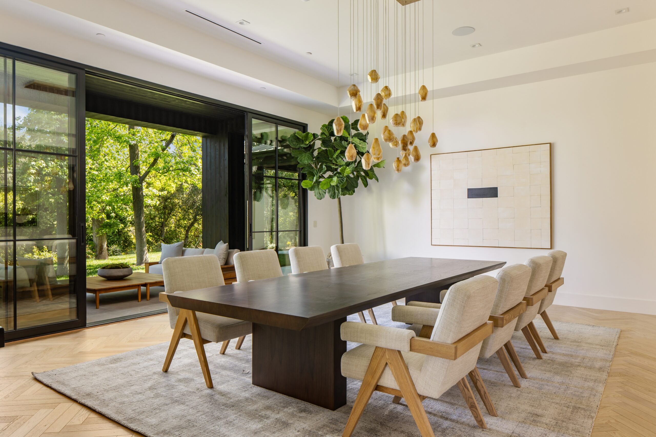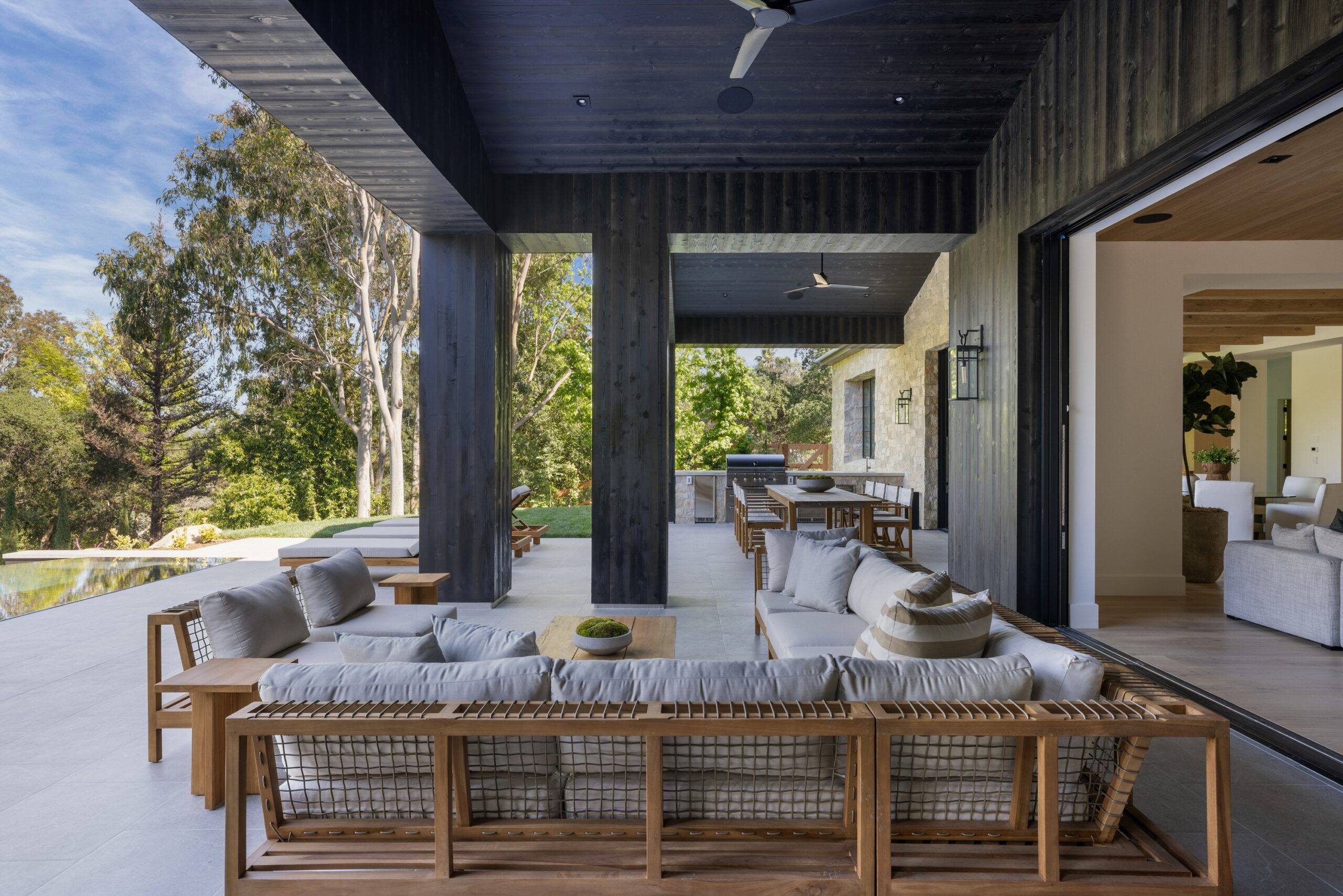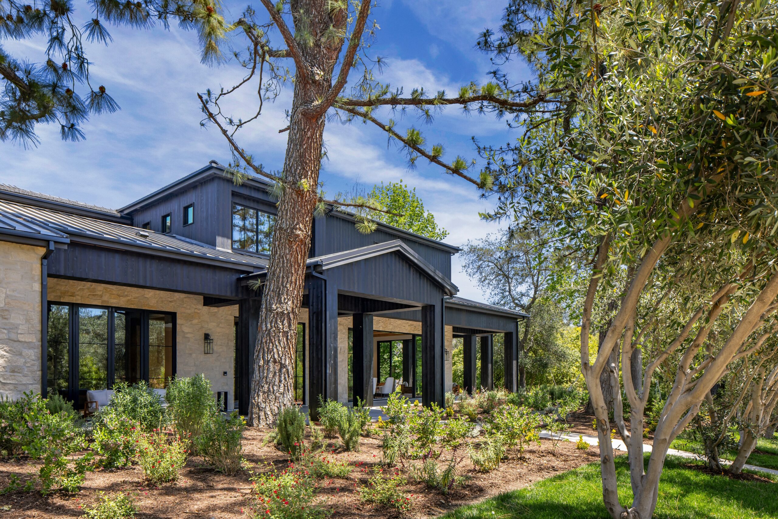 Gorgeous new estate sited on nearly 2.5 acres of mature trees and superbly private grounds. Nestled on a quiet cul de sac, highlights of this beautifully built residence include an open floor plan that's perfect for relaxed family living and gracious entertaining. Features include a superb chef's kitchen with two islands & sunny breakfast room, opening to the spacious family room with stone fireplace and huge picture windows overlooking the lush grounds. Additional amenities include both formal living & dining rooms, a lounge with wet bar, a glass encased, refrigerated wine room, a beautiful custom office, a deluxe home theater, a gym/wellness center with both steam shower & sauna, and a second, upstairs den. All six bedrooms in the main house are en suite, and the primary suite is a true statement of luxury with dual all stone baths, two generous, room-sized custom closets, a two-sided, floor to ceiling fireplace, and an expansive walk-out balcony, all nestled amongst mature oak & pine trees. The amazing grounds also include your own private tennis court, a sparkling infinity edged pool and spa, covered patio with barbecue center, and a one bedroom guest house set on it's own pad with a large grassy lawn area, plus a 4-car garage with loads of off additional off street parking. With a wonderful, center of Hidden Hills location, close to highly regarded public and private schools, and just minutes from The Common's Shopping Center, this home has much to offer.