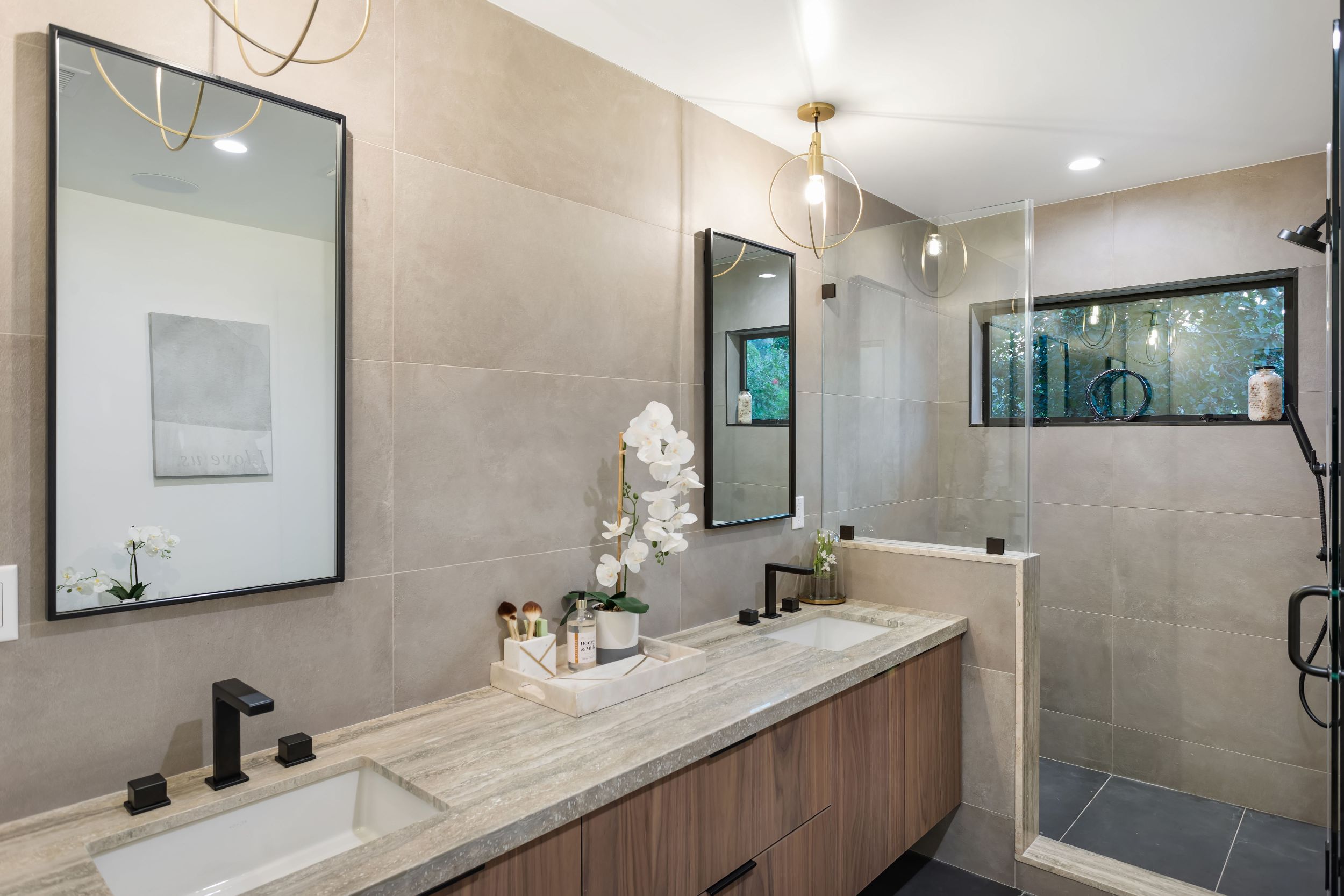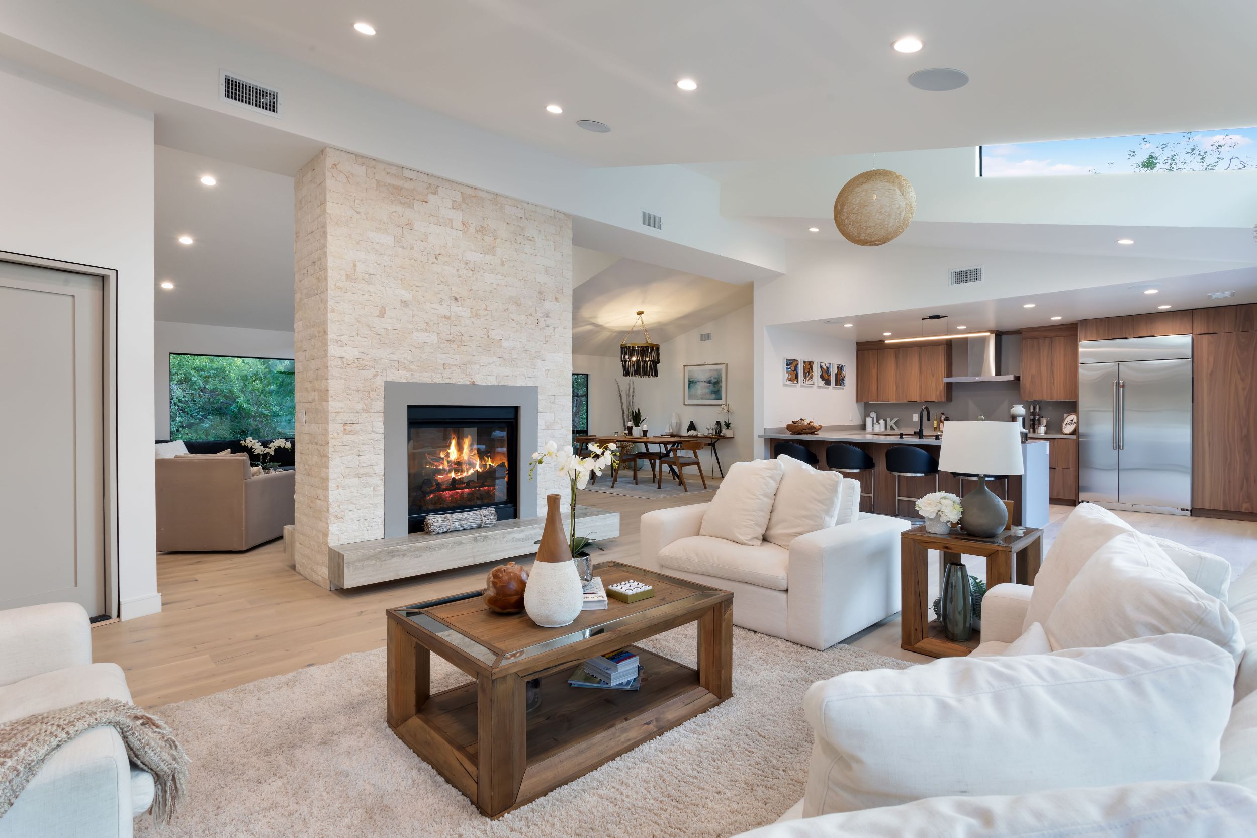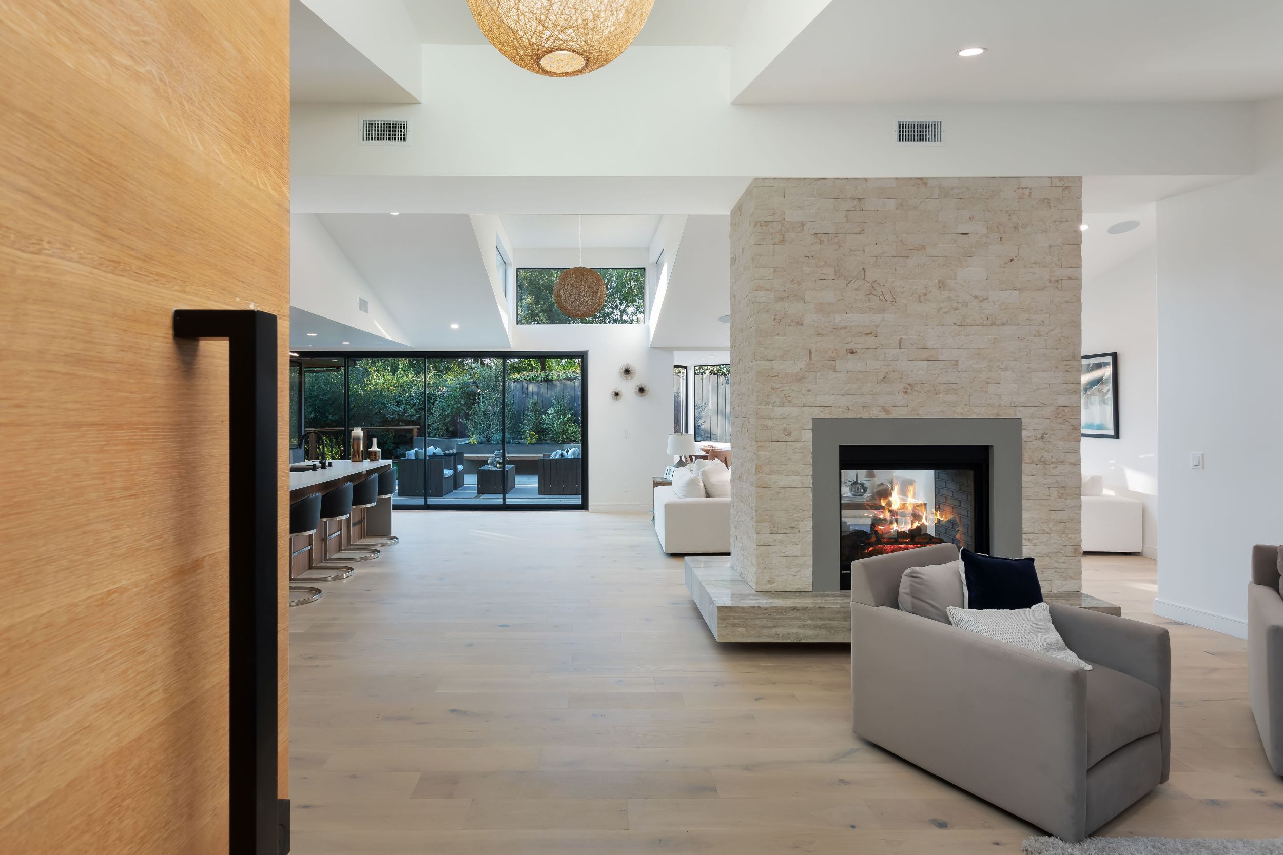 Beautiful open concept home with an abundance of natural light flowing in from each angle. Set in Bel Air, the home has been completely remodeled with high end design and top of the line finishes. Boasting approx. 2300 square feet, the living space encompasses soaring ceilings and recessed lighting throughout the 3 ensuite bedrooms, powder room, living room, great room, and dining area. Custom kitchen with Caesarstone counter tops, stainless steel appliances, and a breakfast bar. Each living space displays views of the backyard through the large glass doors and windows. See through fireplace surrounded by stone separating the living and great room. The master suite is complete with a luxurious stone filled bathroom and walk in closet. Serene, private backyard with great space for entertaining and relaxation.