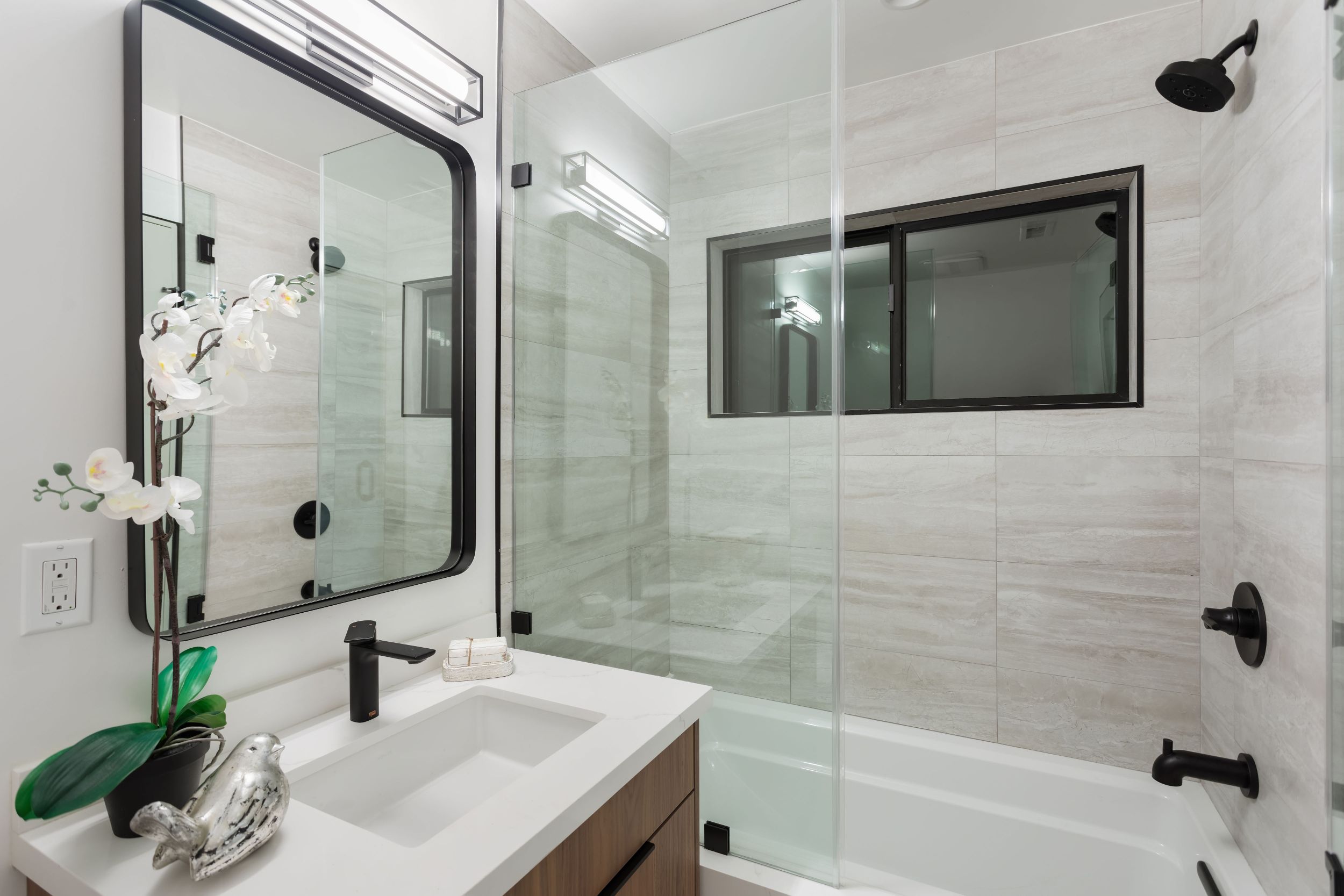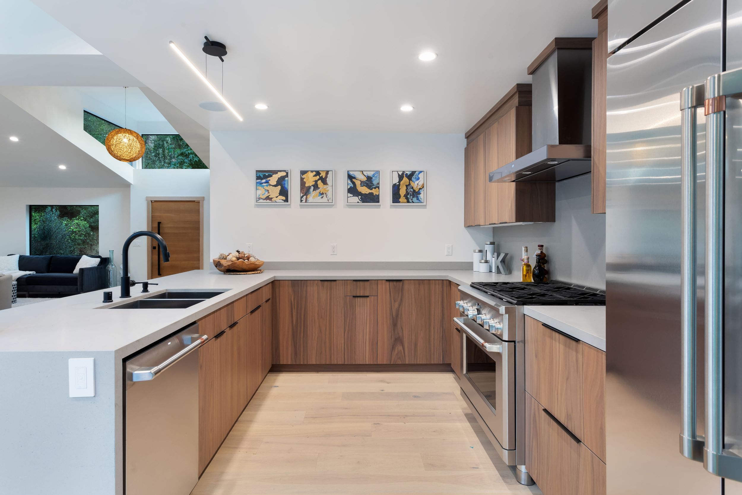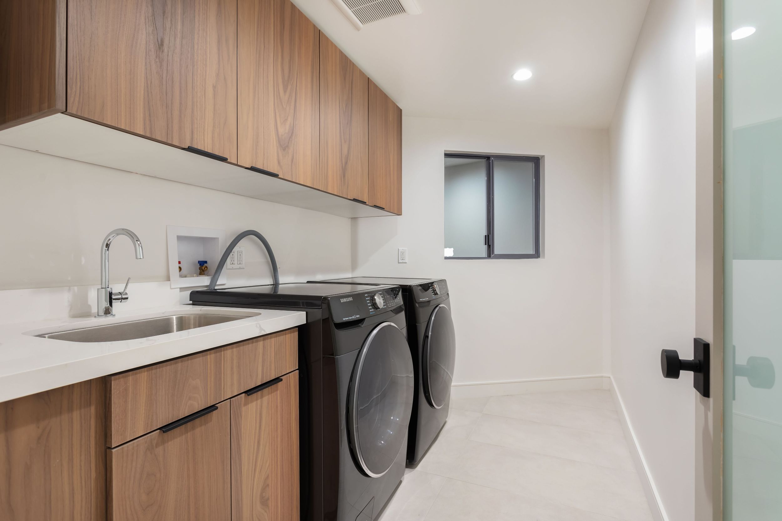 Beautiful open concept home with an abundance of natural light flowing in from each angle. Set in Bel Air, the home has been completely remodeled with high end design and top of the line finishes. Boasting approx. 2300 square feet, the living space encompasses soaring ceilings and recessed lighting throughout the 3 ensuite bedrooms, powder room, living room, great room, and dining area. Custom kitchen with Caesarstone counter tops, stainless steel appliances, and a breakfast bar. Each living space displays views of the backyard through the large glass doors and windows. See through fireplace surrounded by stone separating the living and great room. The master suite is complete with a luxurious stone filled bathroom and walk in closet. Serene, private backyard with great space for entertaining and relaxation.