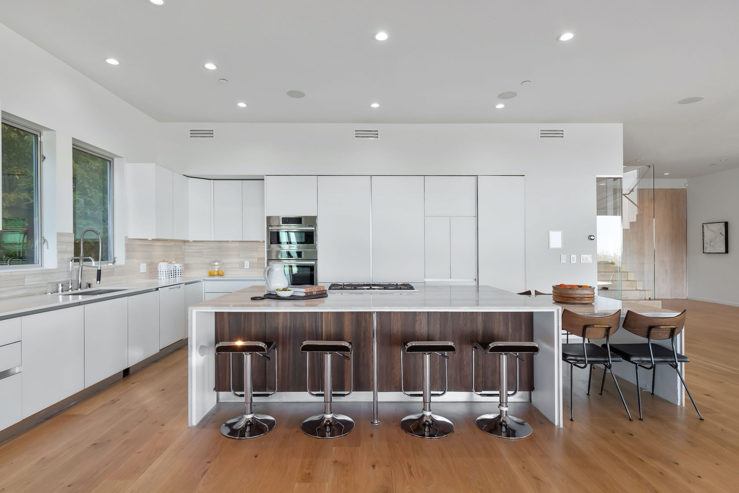 string(1031) "Set in the highly sought-after Outpost Estates, this modern architectural home offers the grandeur of expansive indoor-outdoor living with breathtaking city views. Spanning nearly 5,000 square feet incapsulated by soaring ceilings and white oak floors, the masterfully designed open floor plan features 5 bedrooms, 6 bathrooms, a wine cellar and office. From the living room, dining room & kitchen, walls of glass vanish opening up to the backyard positioned atop the Los Angeles skyline. The custom kitchen is suited with top-of-the-line appliances, a waterfall island and breakfast bar, all open to the other main entertainment spaces. Upstairs, the Master Suite is complete with a private balcony, walk in closet and a jaw dropping stone filled bathroom with a free-standing tub looking over the entire city. Perfect for both entertaining and relaxation, the backyard hosts a pool, elevated spa, and lush grass area. Fully equipped with the latest technology, the smart home allows for the most convenient living experience."