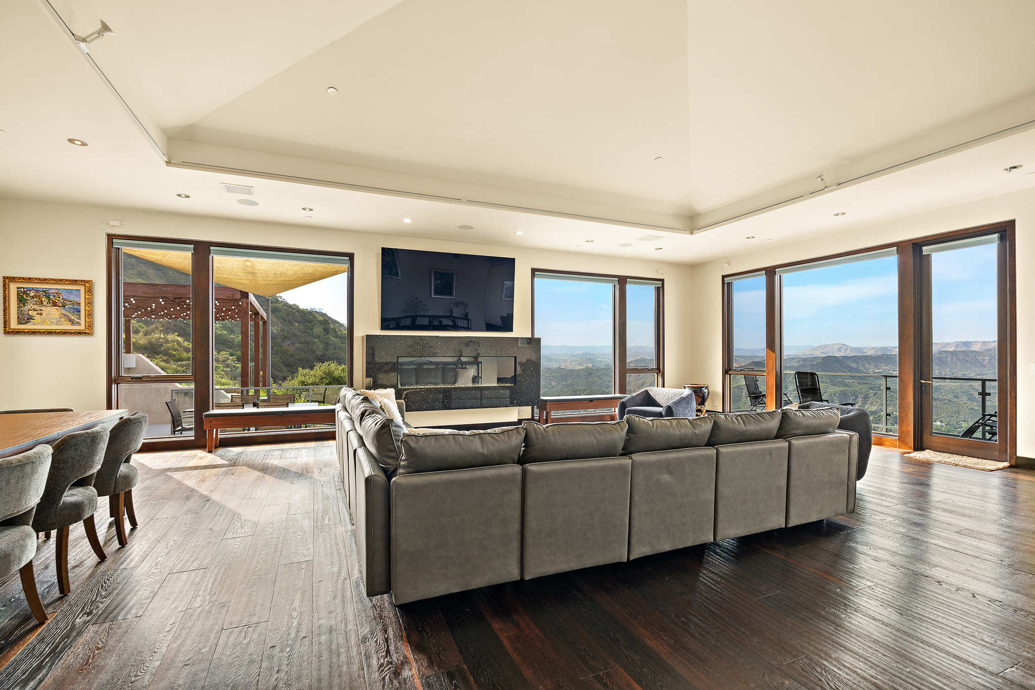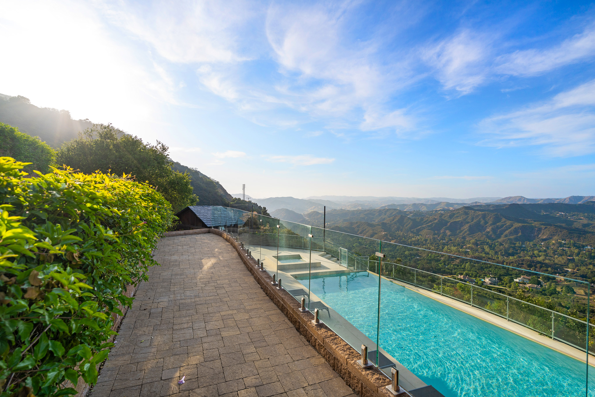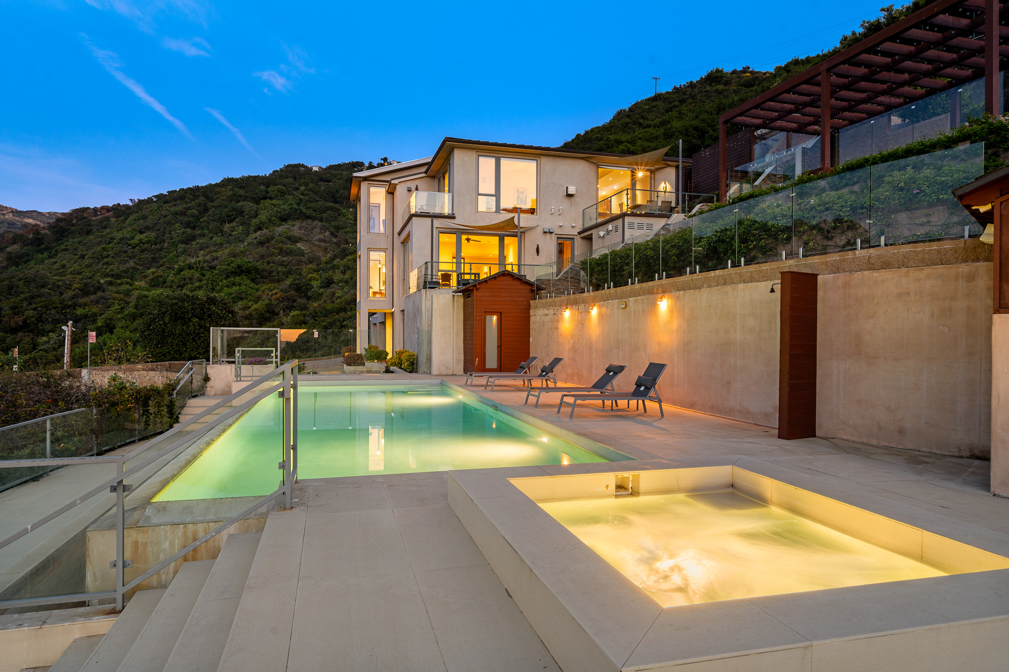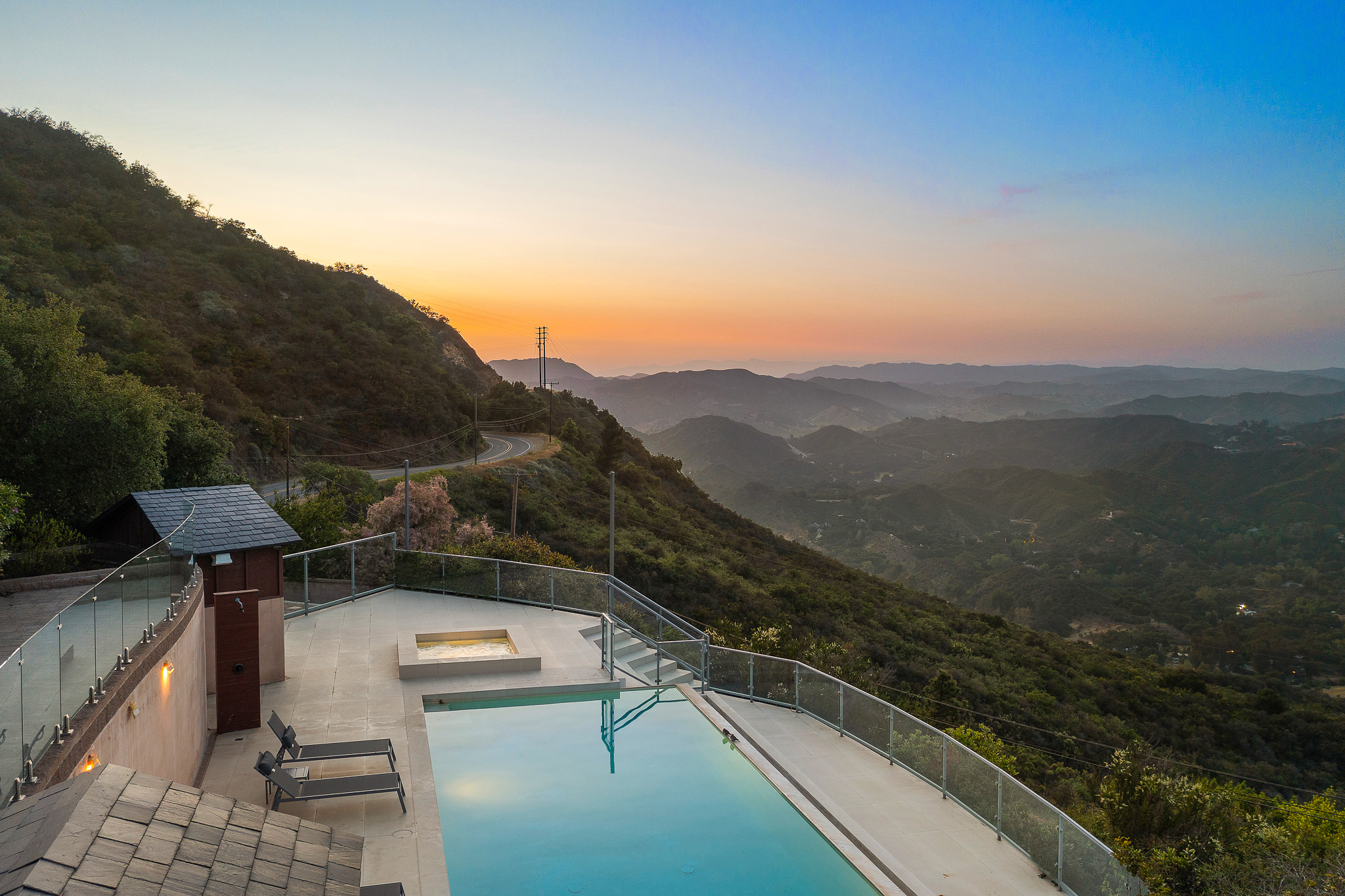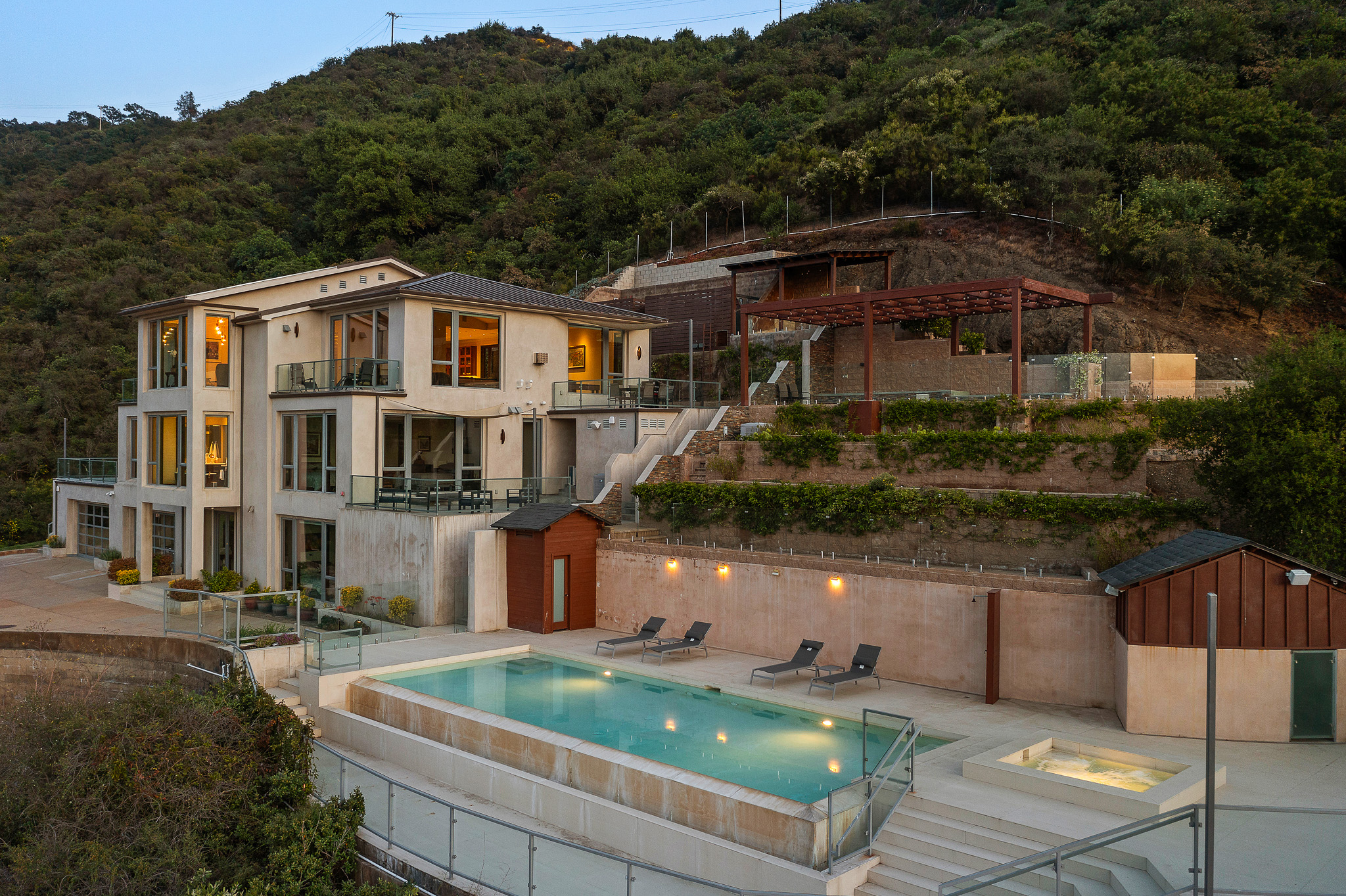 Welcome to 25155 Piuma Road - a one-of-a-kind architectural masterpiece by acclaimed architect Jack Moses, perched on a private promontory in the Malibu hills. Set behind gates and surrounded by a mile of open space with no neighboring homes in sight, this striking modern retreat offers unmatched privacy, tranquility, and panoramic views of the Santa Monica Mountains. Often described as a "sanctuary in the sky" or "a house in the clouds," this home is truly unlike any other and simply cannot be duplicated. Expansive walls of glass flood the interiors with natural light and frame breathtaking vistas from nearly every room. The open-concept living area features wide-plank hardwood floors, a sleek fireplace, and seamless indoor-outdoor flow to multiple terraces. The chef's kitchen is outfitted with top-of-the-line appliances, custom cabinetry, and a large island ideal for entertaining. This multi-level estate offers generously sized bedrooms, including a luxurious primary suite with spa-like amenities, a soaking tub, and jaw-dropping views. Additional features include a media room, home office, and ample guest accommodations. The outdoor spaces are nothing short of spectacular, with a resort-style infinity pool and spa, expansive decks for lounging and dining, a pergola-covered firepit lounge, and beautifully curated gardens featuring 26 fruit and citrus trees. Environmentally conscious buyers will appreciate that the home is set up to be completely off the grid, with a reverse osmosis water filtration system and a private well that pumps water from 200 feet below into two 5,000-gallon storage tanks, providing clean, free water year-round. Tucked within the Santa Monica Mountains National Recreation Area, yet just 10 minutes from both Calabasas and Nobu Malibu, 25155 Piuma Road offers the perfect blend of secluded luxury and accessible convenience. A rare opportunity to own an extraordinary retreat in the sky, where nature, design, and serenity converge.