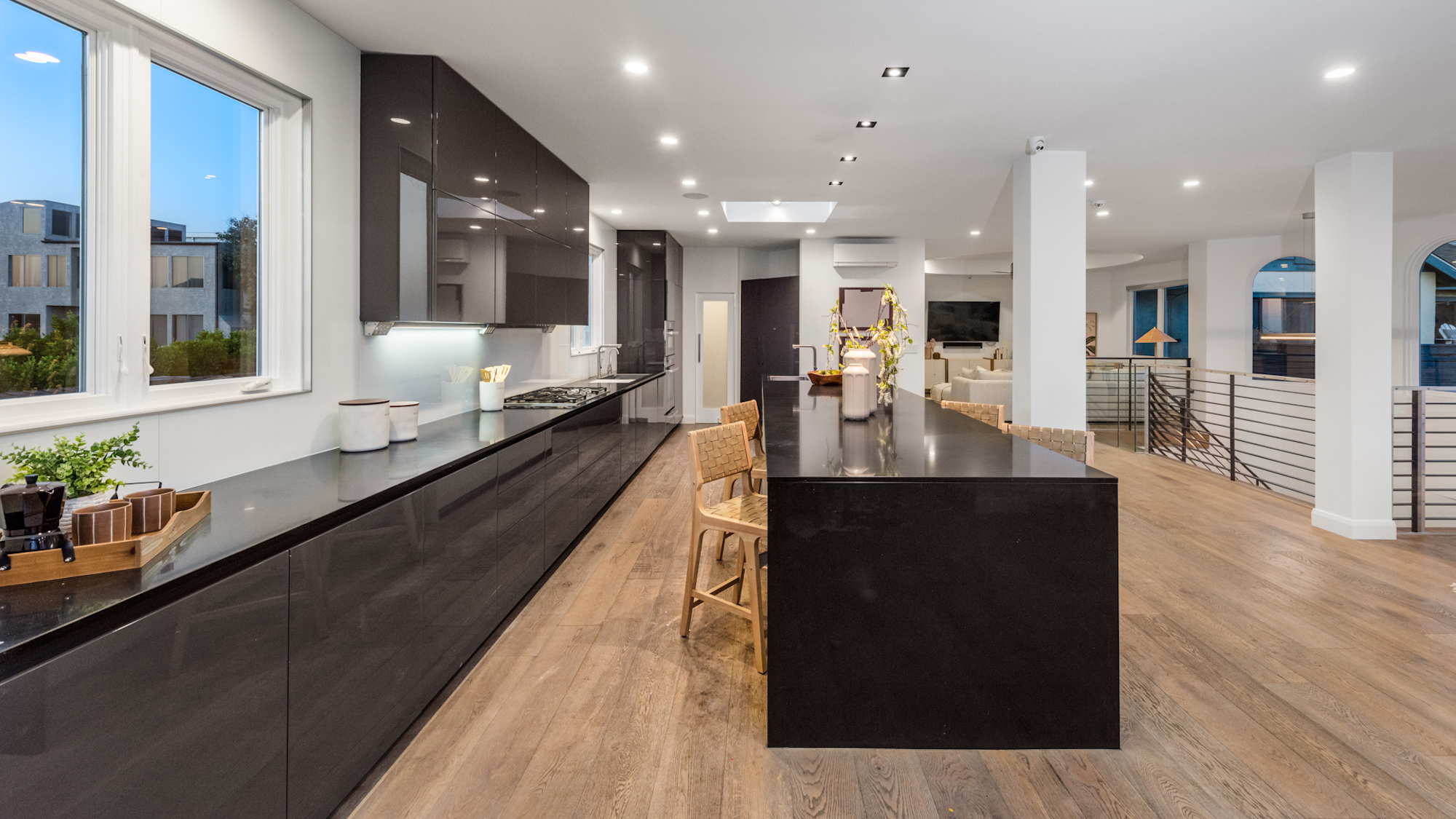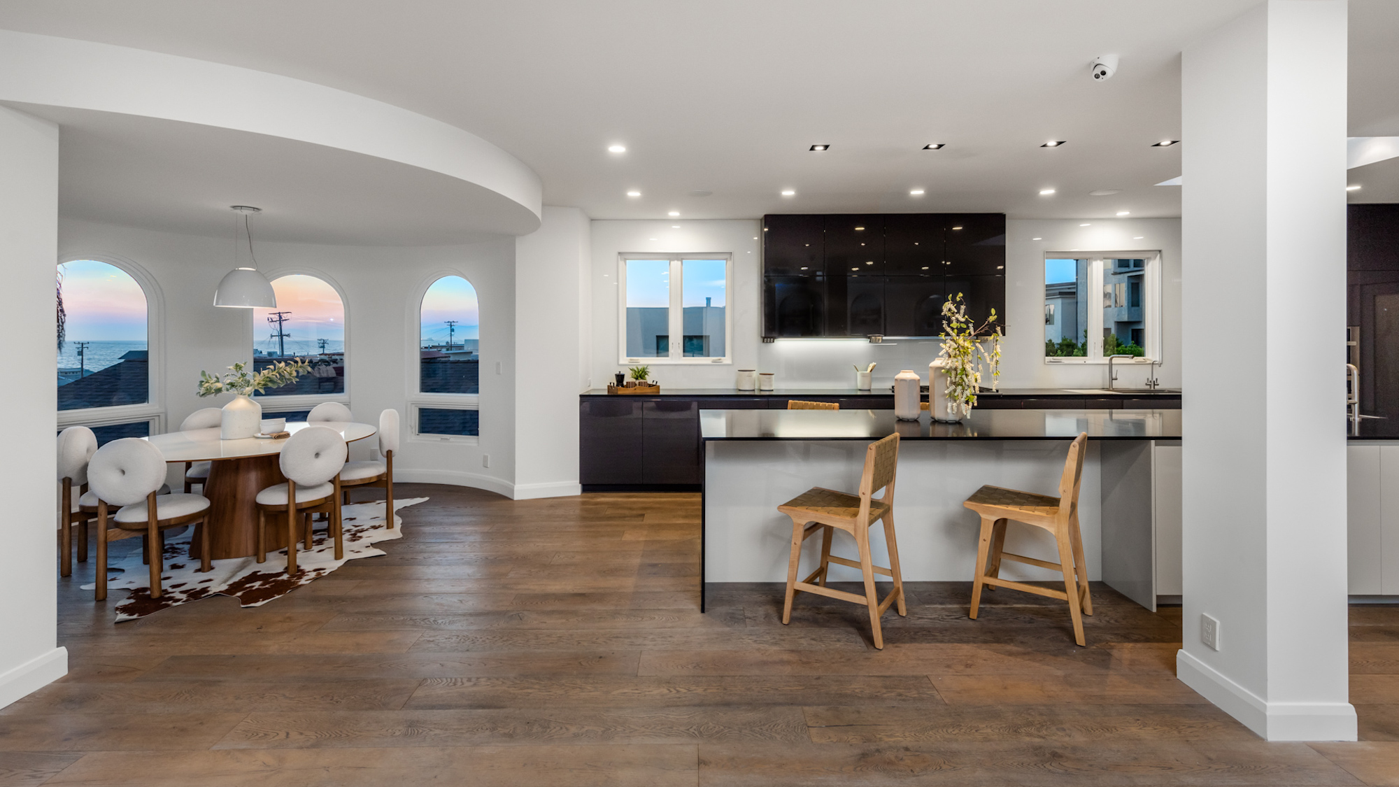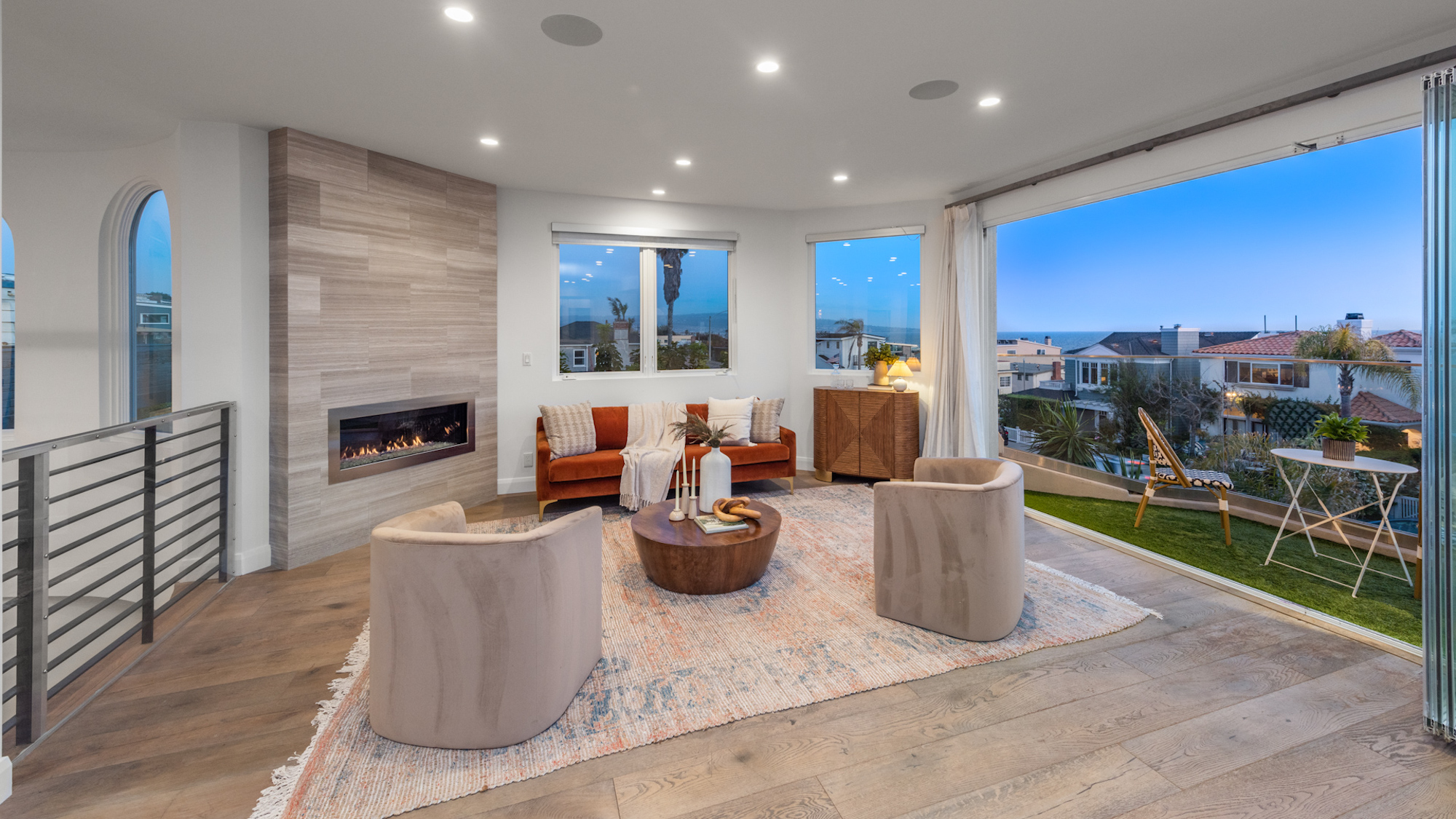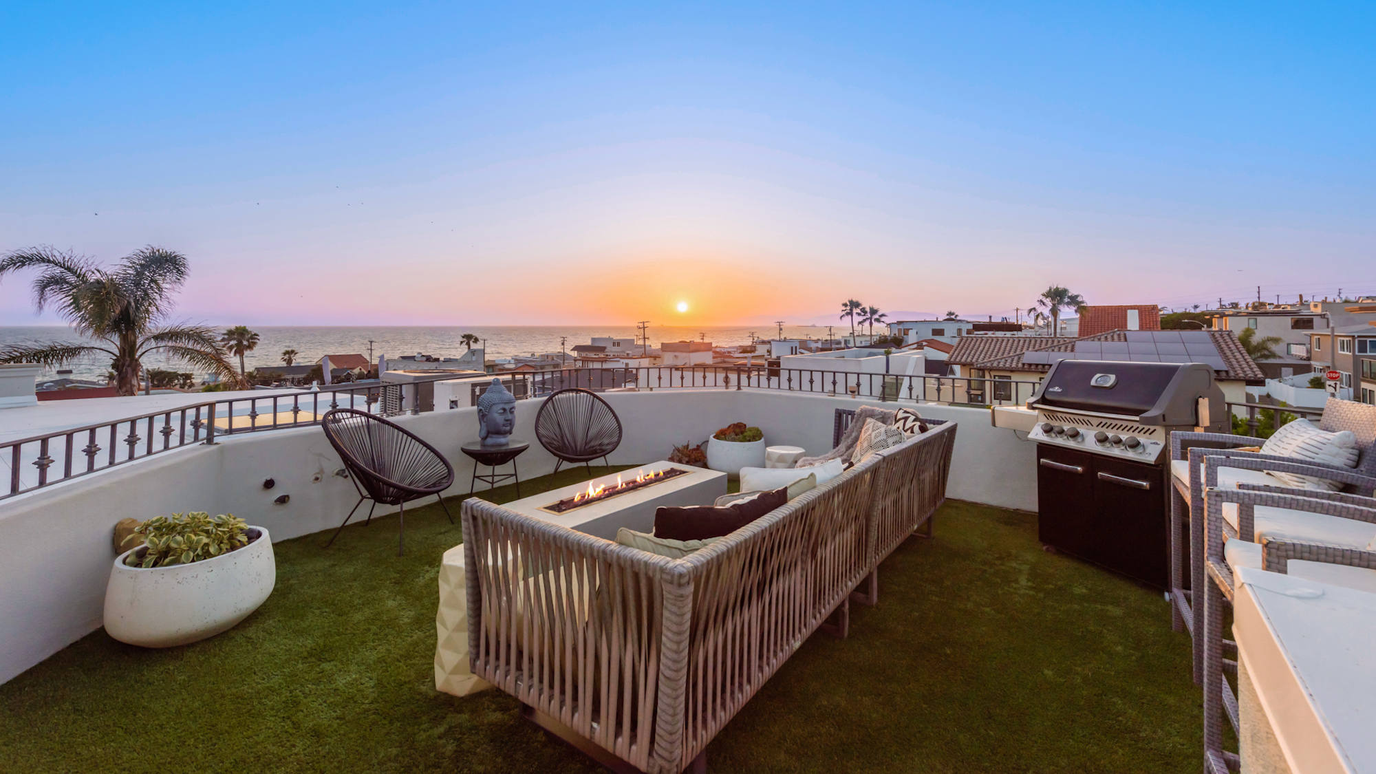 Welcome to the epitome of coastal luxury in this street-to-street Hermosa Beach home! This sleek and stylish contemporary home is a true masterpiece, boasting breathtaking panoramic views stretching from Palos Verdes to the Santa Monica Mountains including both City and Ocean viewpoints. Nestled in the highly sought-after North Hermosa Beach area, this five-bedroom, four-bathroom home offers a remarkable living experience with a rare oversized lot. From the moment you step inside, you'll be captivated by the incredible ceiling height, custom design and attention to detail. The heart of this home is the ocean-facing gourmet kitchen, adorned with Italian Dada lacquer-finish cabinetry, high-end Miele appliances. The open-floor plan also includes the dining area which invites you to savor every meal while soaking in the 180-degree views. The family room seamlessly opens to a beach-facing deck, blurring the boundaries between indoor and outdoor living. Upstairs, the roof deck awaits, offering a breathtaking vantage point to soak in the awe-inspiring ocean vistas. Retreat to the luxurious master suite, featuring walnut floors, a cozy fireplace, and his-and-hers walk-in closets. Indulge in the spa-like primary bathroom, designed for pure relaxation with sauna. With its gated lot and incredible amenities, this home provides the ultimate beachside lifestyle in Hermosa Beach. What sets this property apart is its large lot, which is considered street-to-street. This unique feature provides not only ample space but also added privacy and convenience. Additionally, the six-car parking capacity is unusual in this neighborhood, making it a standout feature for homeowners who value convenience and hosting guests. Immerse yourself in the tranquility, elegance, and unparalleled beauty that this remarkable property has to offer. With its panoramic views, meticulous design, and exceptional features, this incredible family house truly exemplifies the best of coastal living in Hermosa Beach.
