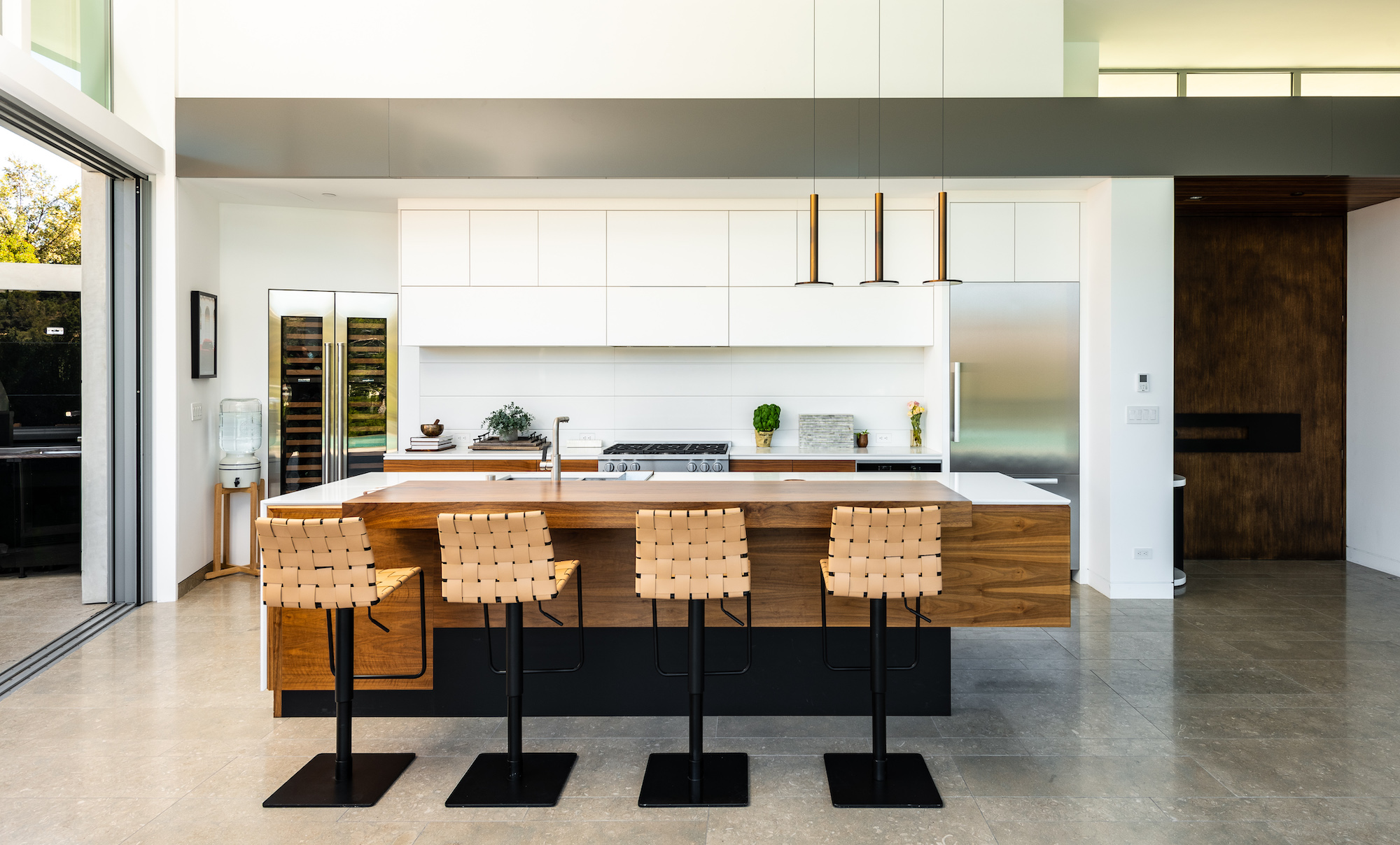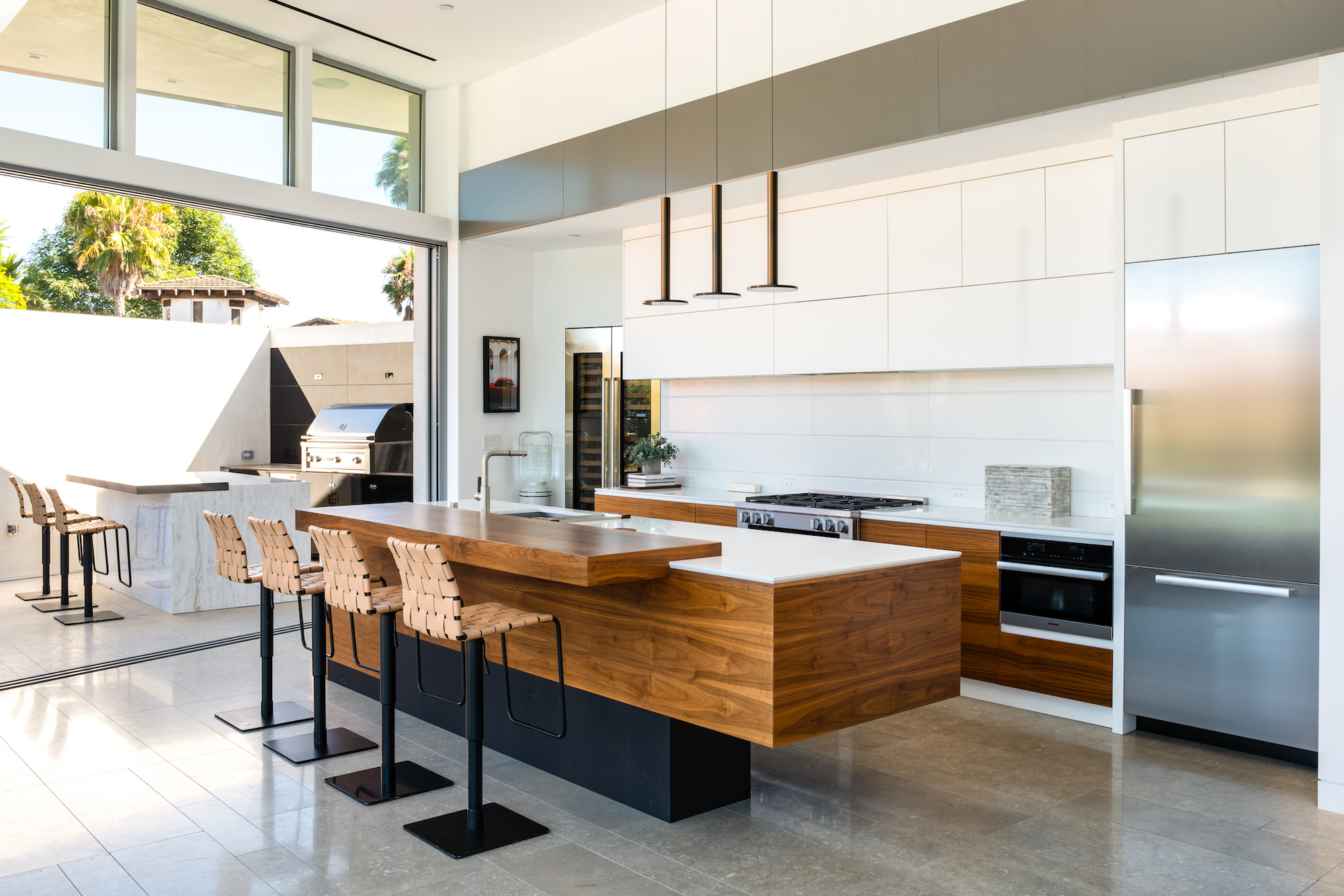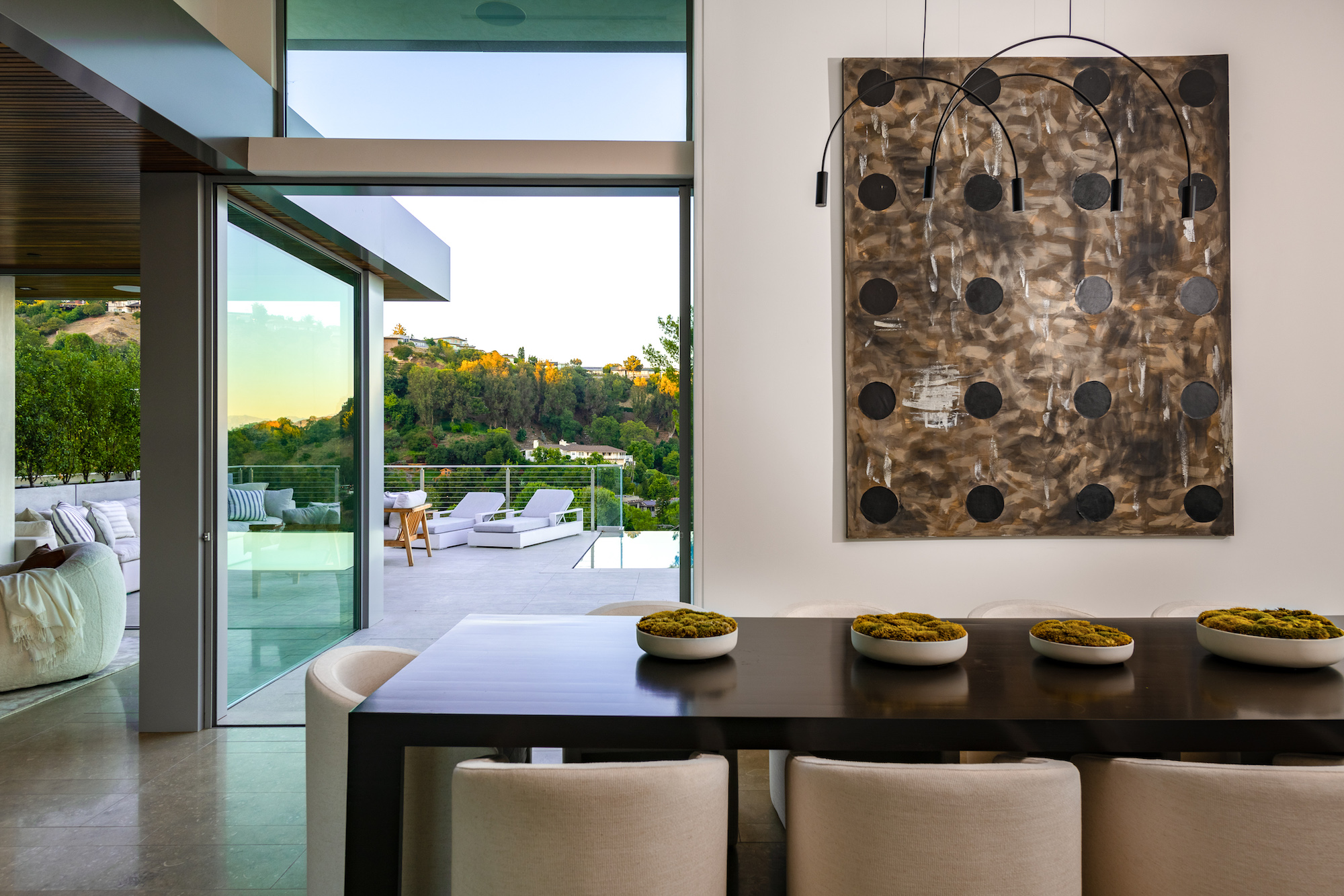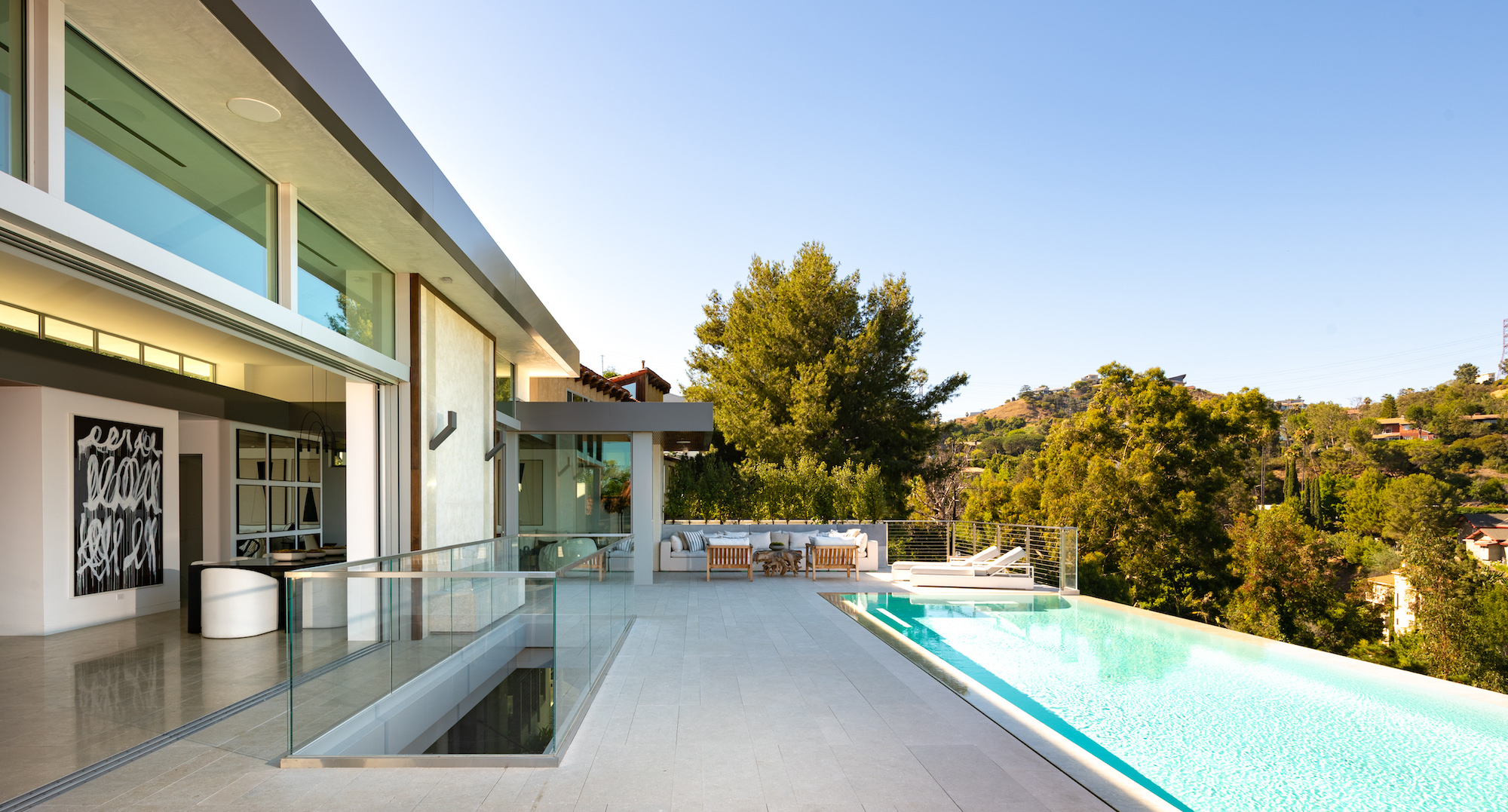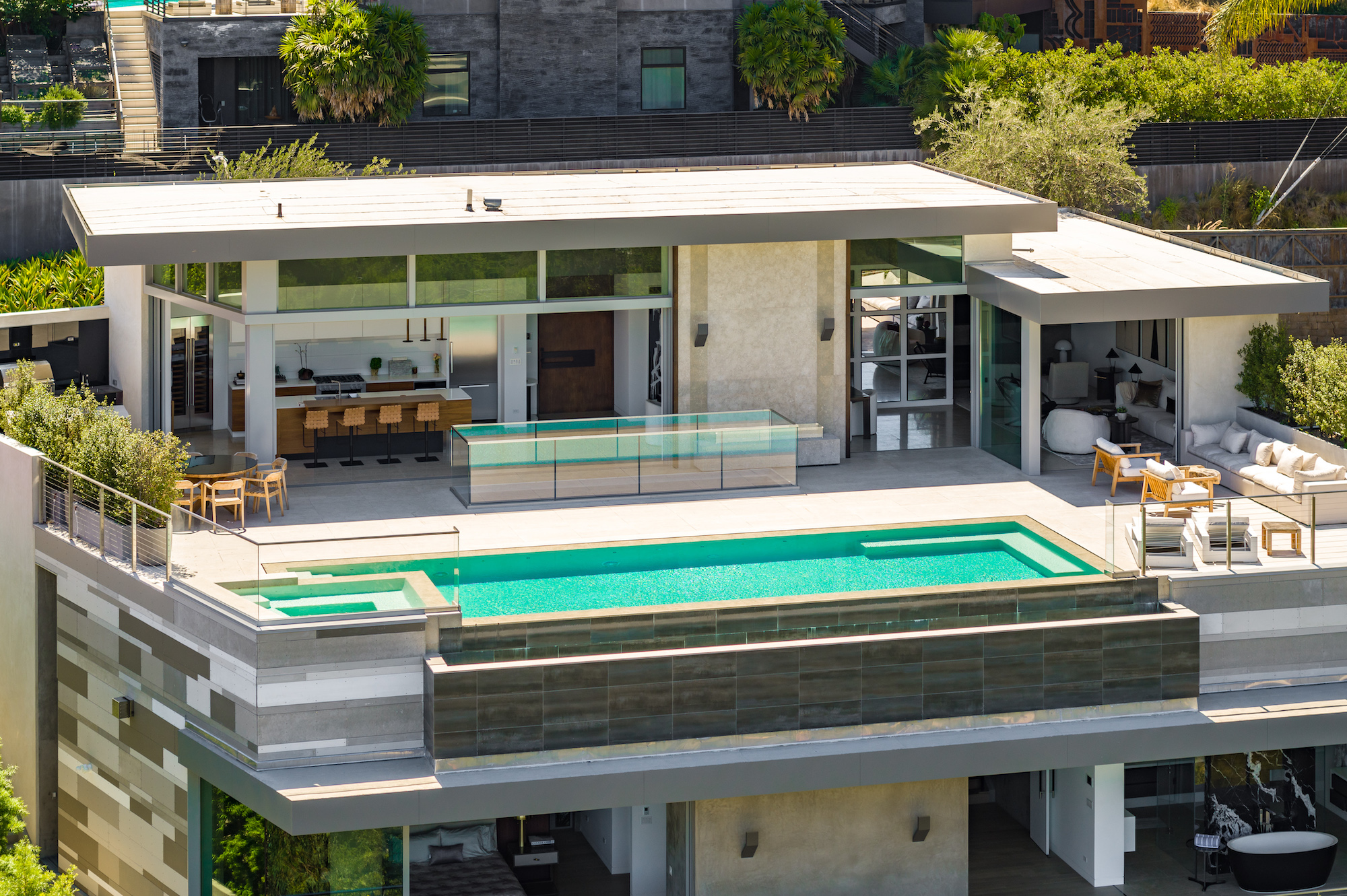 Set in the Hollywood Hills on a premier private cul-de-sac, this architectural masterpiece boasts jetliner city and canyon views with unparalleled scale and design. With 3,800sf of luxury living, this 3-bedroom, 4-bathroom home showcases an expansive floor plan with a state-of-the-art chef's kitchen, oversized center island and top of the line appliances. The entire enclave is met by floor-to-ceiling sliding doors giving a seamless transition to your outdoor patio space and 75 foot raised zero-edge infinity pool that cascades into thin air. The living room features a built-in media center with stealth audio in the walls. The primary suite is its own sanctuary surrounded by lush green canyon views, including a private gym room and sun-drenched spa bathroom. Additional amenities include a 2-story subterranean garage with car lifts, a private Zen Garden in the center, and a backyard cut from the Getty Museums grounds.