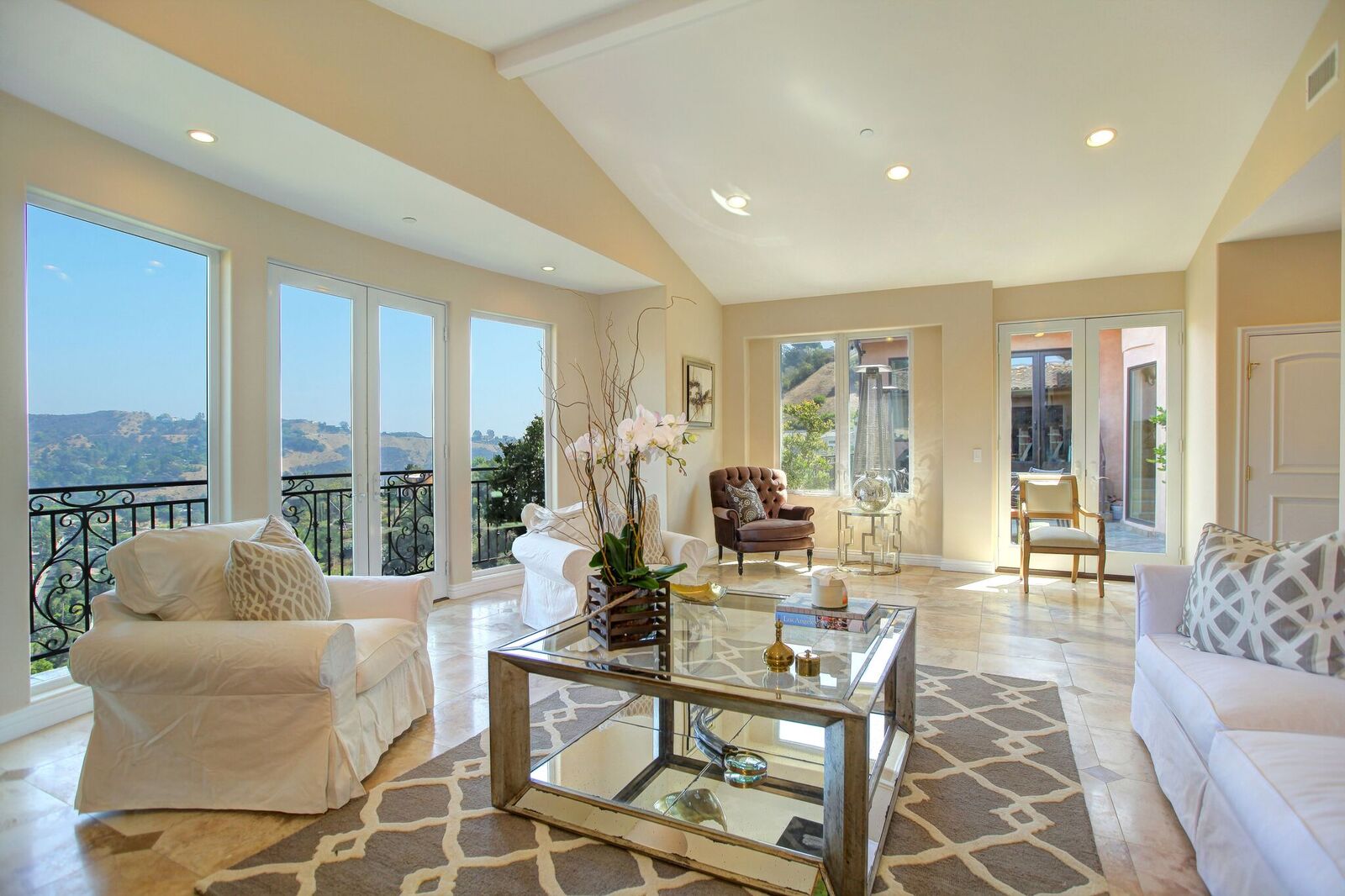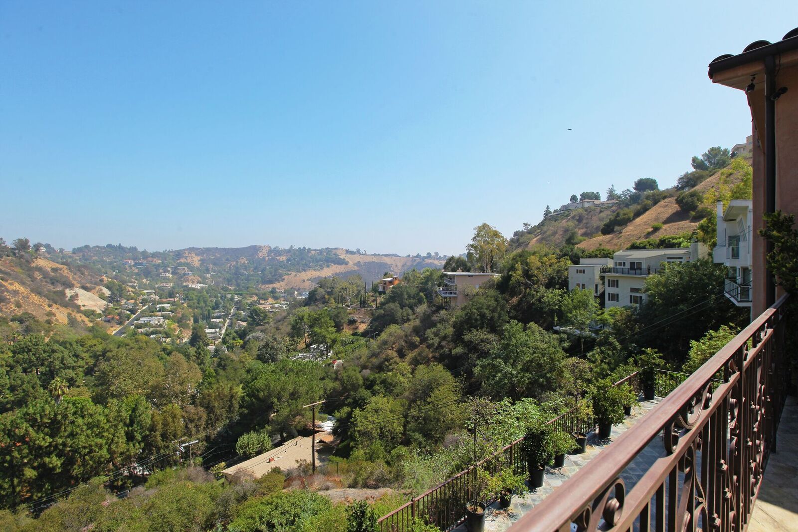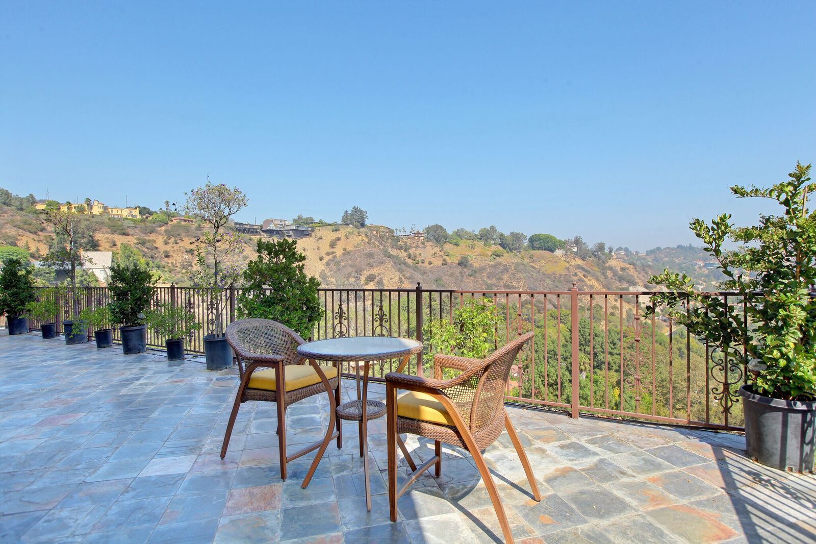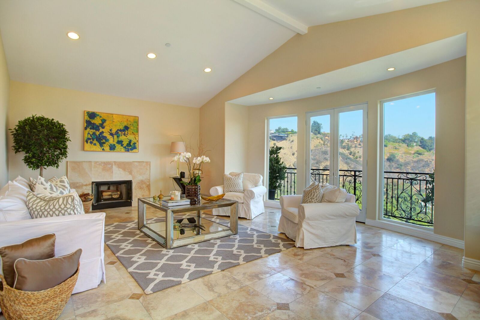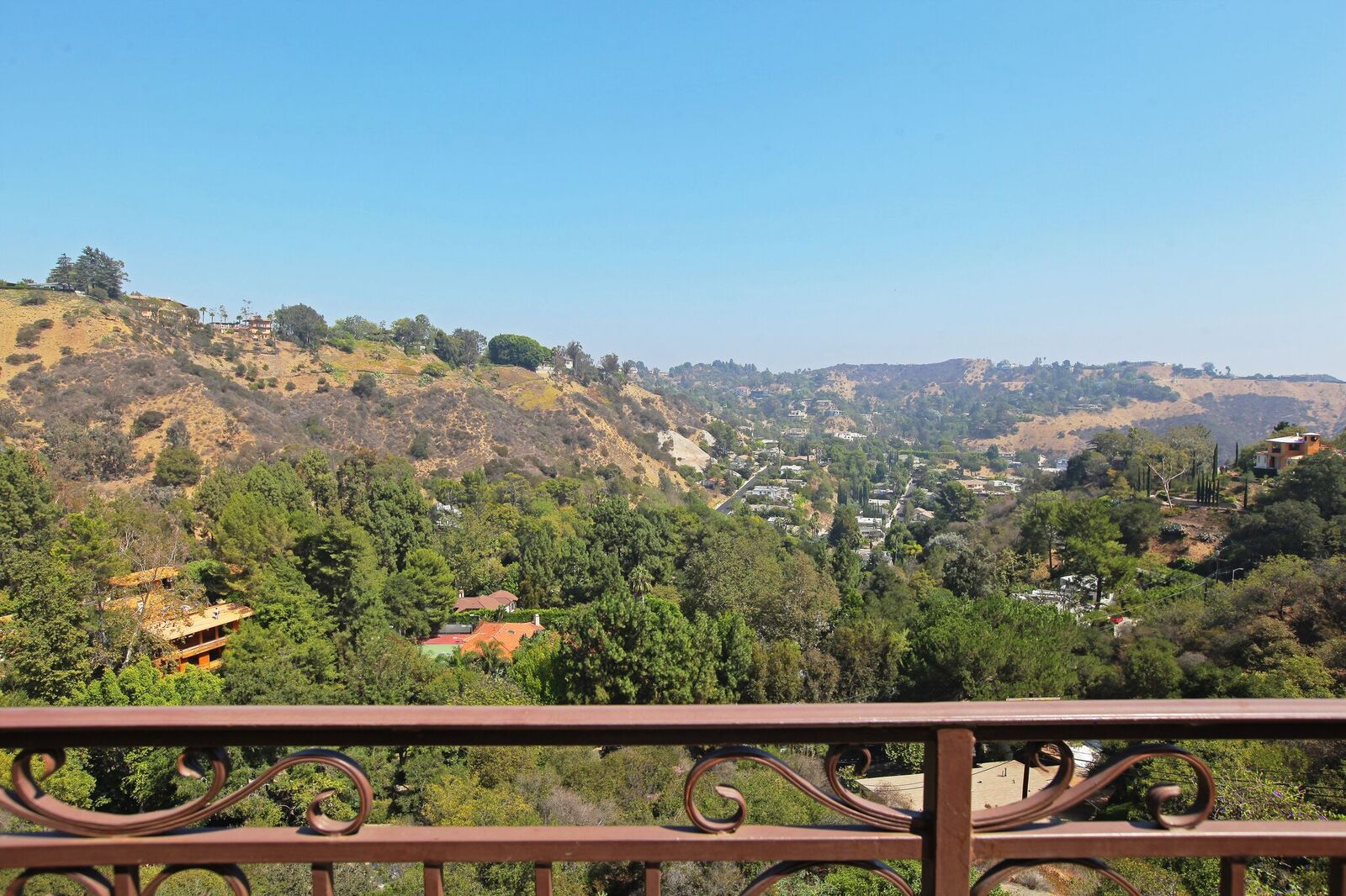 Newly built Spanish Mediterranean in the hills with sweeping canyon views from all rooms. Gated courtyard leads to inviting formal entry with travertine floors, custom wrought iron banisters, and railings. Light and bright floor plan boasting 3 bedrooms (one main floor bedroom), four bathrooms and office. Chef's kitchen with granite countertops, center island with breakfast bar, stainless steel appliances and wine cooler and opening to formal dining room and family room with fireplace. Expansive master with soaring ceilings, fireplace and beautiful hardwood floors leading out to balcony with tranquil canyon views. All rooms open to sprawling slate terrace with plenty of room for outdoor entertaining. Over 4,100 square feet with hardwood flooring and attached 2car garage. This elegant home located at the corner of Woodstock and Willow Glen offers panoramic views and privacy yet close enough to the center of all the action in Los Angeles.