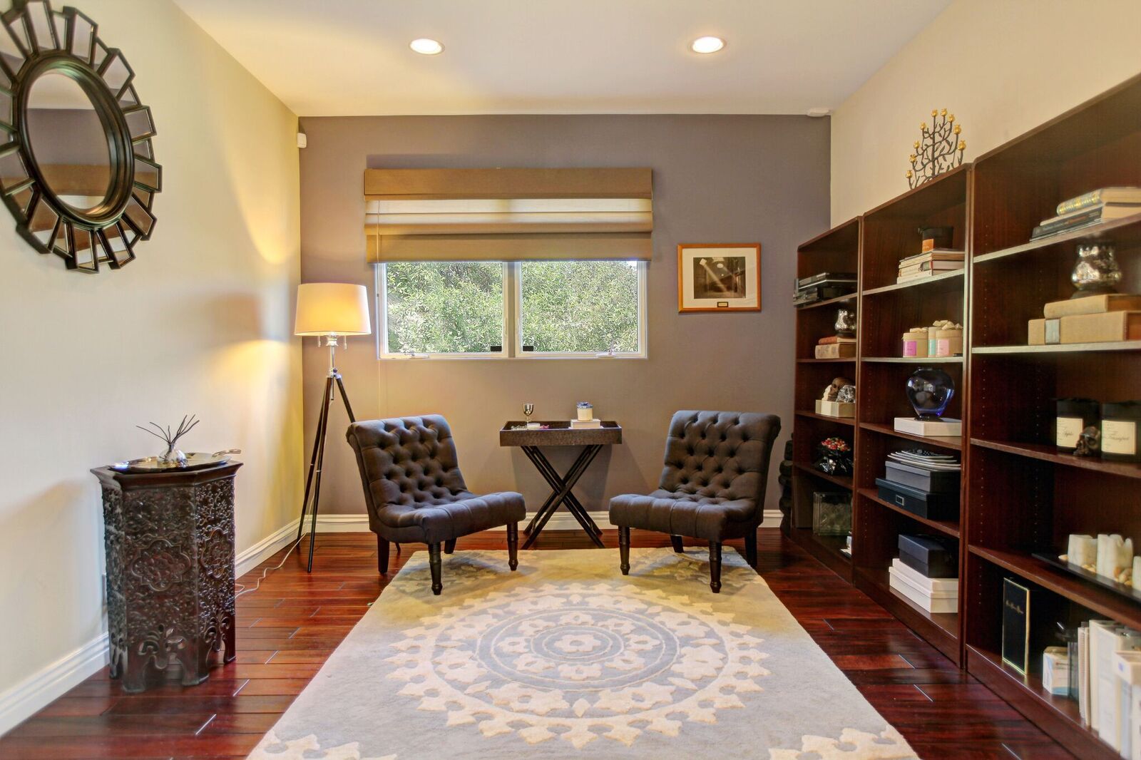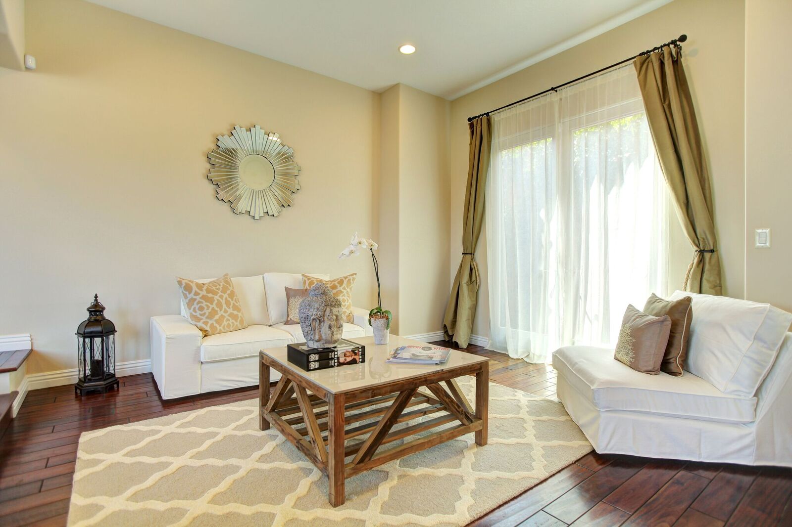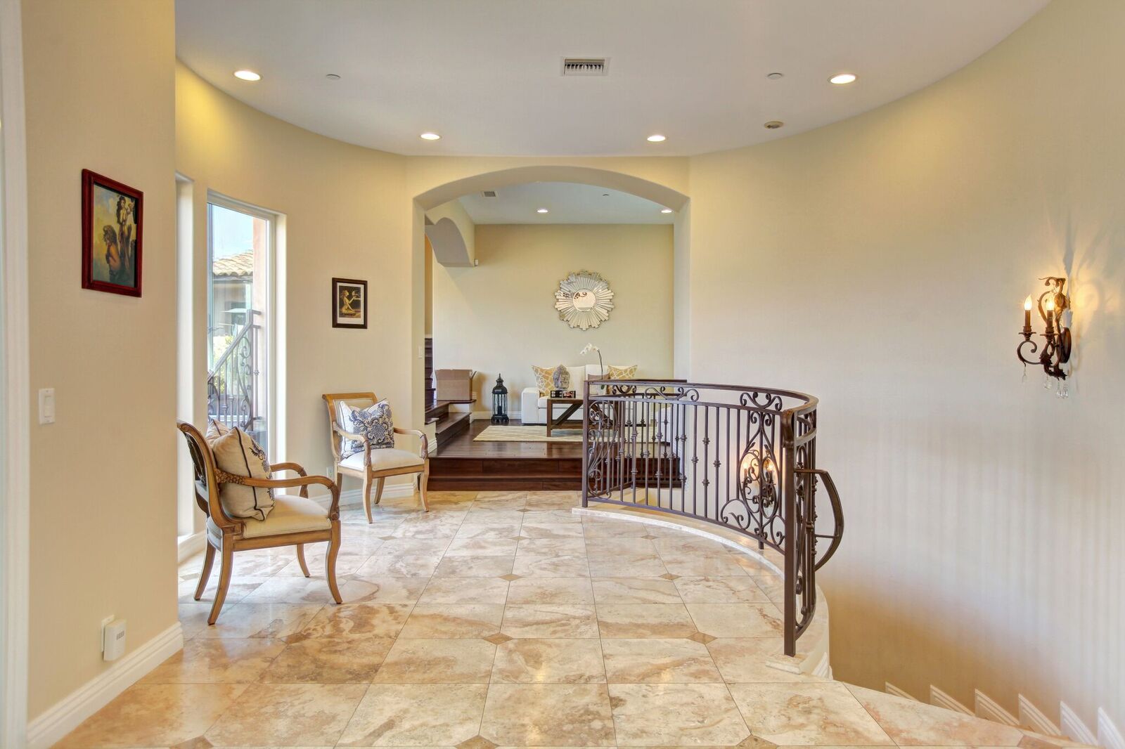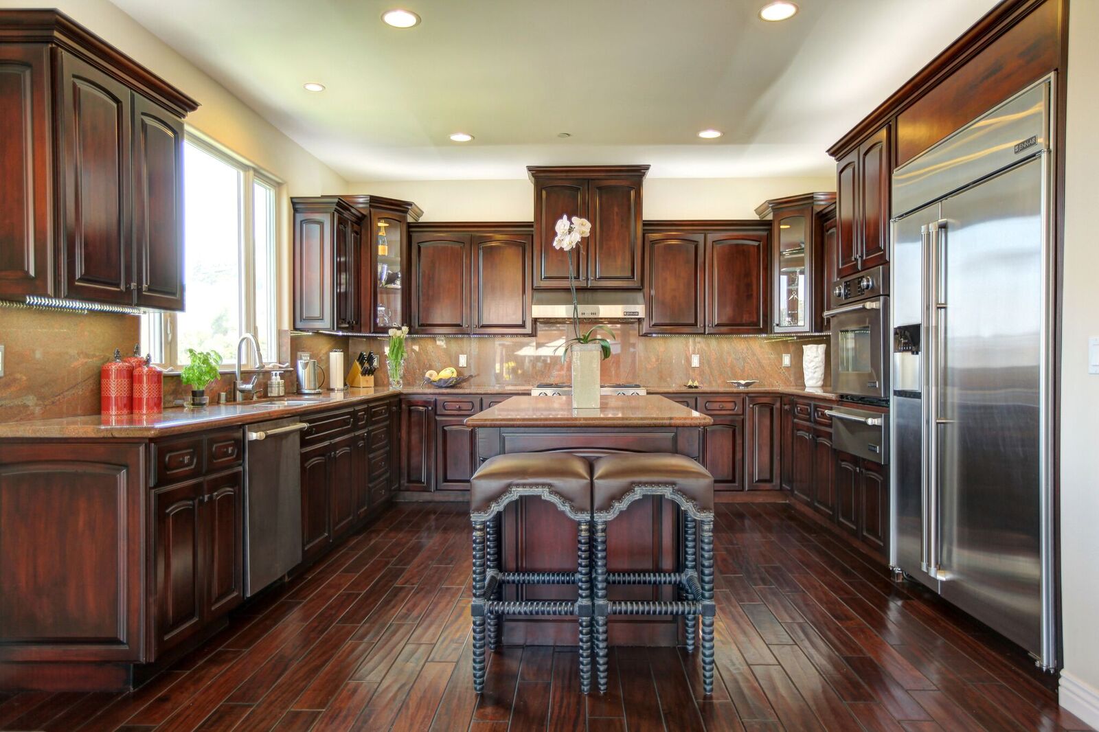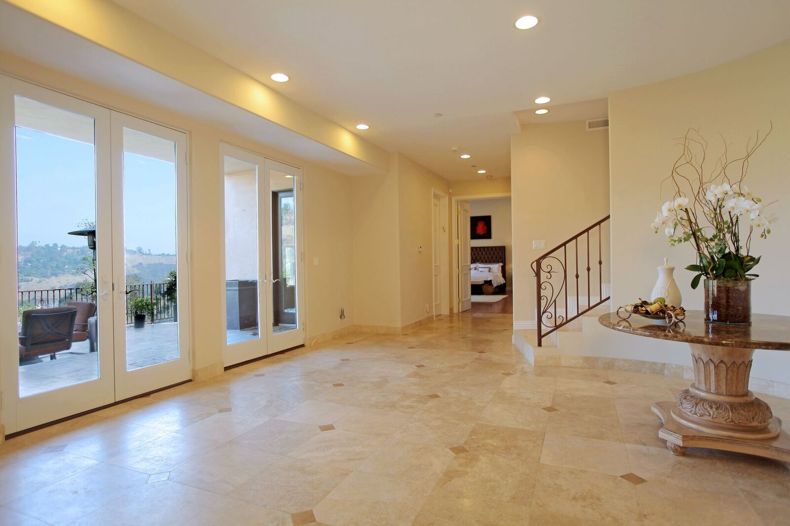 Newly built Spanish Mediterranean in the hills with sweeping canyon views from all rooms. Gated courtyard leads to inviting formal entry with travertine floors, custom wrought iron banisters, and railings. Light and bright floor plan boasting 3 bedrooms (one main floor bedroom), four bathrooms and office. Chef's kitchen with granite countertops, center island with breakfast bar, stainless steel appliances and wine cooler and opening to formal dining room and family room with fireplace. Expansive master with soaring ceilings, fireplace and beautiful hardwood floors leading out to balcony with tranquil canyon views. All rooms open to sprawling slate terrace with plenty of room for outdoor entertaining. Over 4,100 square feet with hardwood flooring and attached 2car garage. This elegant home located at the corner of Woodstock and Willow Glen offers panoramic views and privacy yet close enough to the center of all the action in Los Angeles.