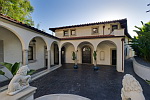 A modern-day castle replete with custom finishes and accouterments suitable for the most discriminating buyer. Encompassing over 7,800 sq. ft., this entertaining compound welcomes you with a dramatic entry rotunda. Multiple French doors open to spacious patios overlooking lush grounds and a beautiful Italian Renaissance garden that includes sculptures, fruit trees, a secret Roman garden, a grand Neptune fountain with a spectacular new pool. A Florentine-style bell tower is the crowning feature of this marvelous estate. Other notable features include a 2 story theater room and full gym. This is a fantastic entertaining estate compound nestled in the hills.