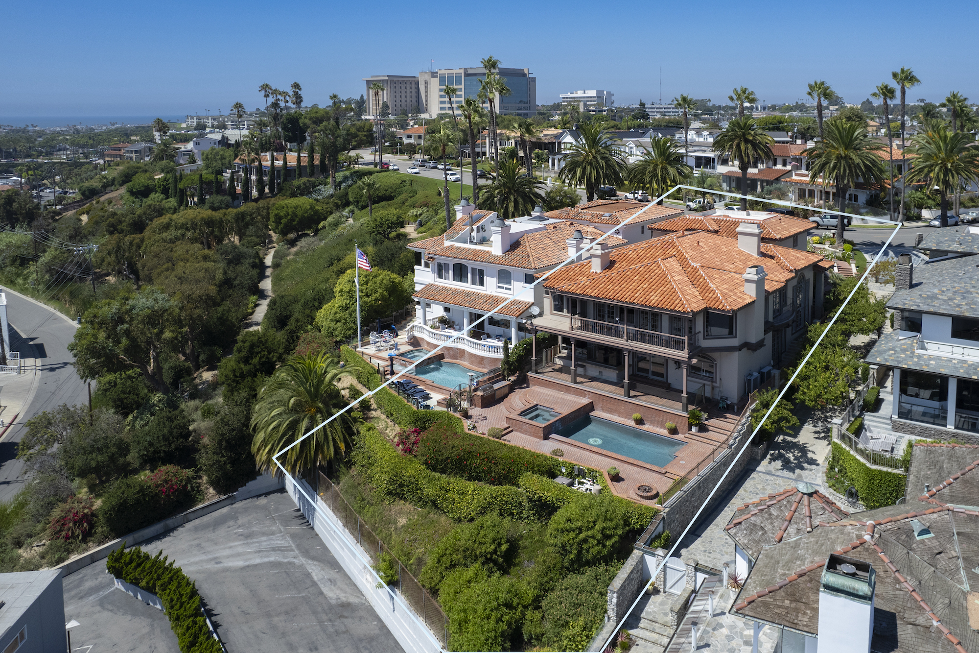 This is the one you've been waiting for. Looking to customize your dream home with views of the harbor, ocean and Catalina sunsets. Custom 4,900 sq ft view home on the bluff in Newport Heights. Resort like backyard with pool, large spa and built in BBQ. One bedroom with full bath on the main floor. Spacious master suit with big master bath with panoramic views from your bath tub and shower. All bedrooms are all en-suite. Additional office & exercise room with sauna .The open floor plan offers great flow from the kitchen to the family room and out to the backyard. Large kitchen with Island and breakfast counter. 2 parks with a playground next door to the property. Walking distance to world class dining, bakery and shopping.