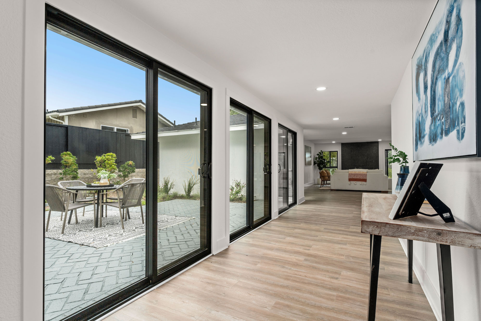 string(1850) "Welcome to 2966 Calle Grande Vista, a recently reimagined and luxurious coastal haven perched above the first hole of the prestigious Shorecliffs Golf Course. This stunning single-story residence redefines elegance and sophistication, offering a seamless blend of opulence and comfort in the heart of San Clemente. Upon arrival, a grand custom front door sets the tone for the extraordinary living experience that awaits. Bathed in natural light, the open-concept design effortlessly connects the family room, dining area, and kitchen, creating a spacious and inviting ambiance. No detail has been spared in this magnificent renovation. A gourmet chef's kitchen boasts new white custom cabinets, quartz counters, and a marble backsplash, complemented by state-of-the-art stainless steel appliances, including a Cosmo Range and hood. Recessed lights and brass fixtures illuminate the space, while waterproof laminate floors flow seamlessly throughout. The primary suite is a sanctuary of relaxation, featuring a walk-in closet and a lavish bath adorned with custom tile, a rain shower, and exquisite finishes. Two additional bedrooms with vaulted ceilings provide comfort and style, while the guest bath offers double sinks and modern amenities. Step outside to an enchanting backyard oasis, where sweeping ocean, mountain, and canyon views create an unforgettable backdrop for outdoor gatherings and tranquil moments. This 2,350 sqft residence resides on a single-loaded street and features a 2-car attached garage. With scraped ceilings, double pane windows, and a new fireplace with porcelain tile, no expense has been spared in making this home a true masterpiece. Live the best life in San Clemente, where coastal living meets modern luxury. Welcome home to 2966 Calle Grande Vista, your recently reimagined retreat of endless beauty and comfort."