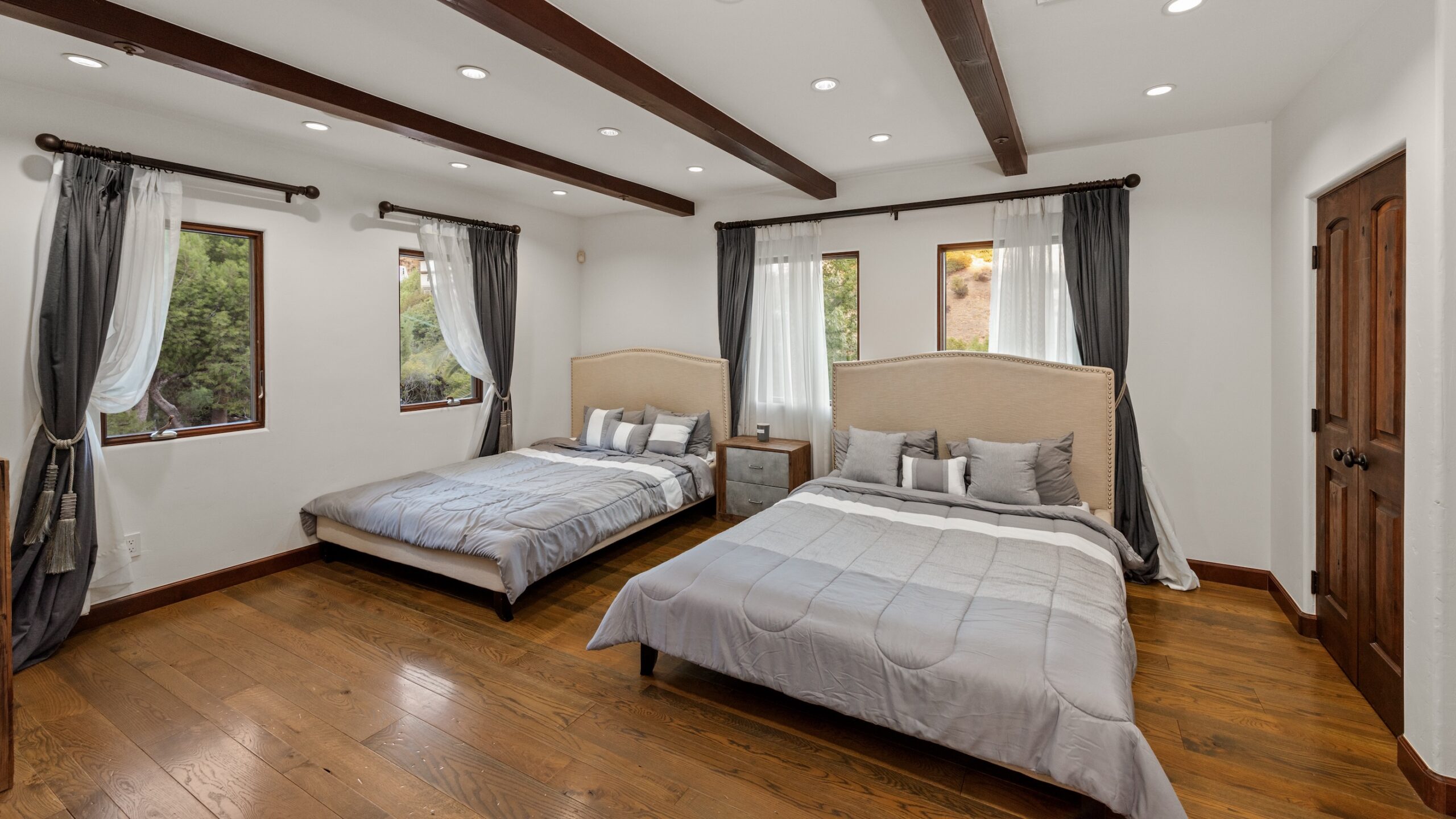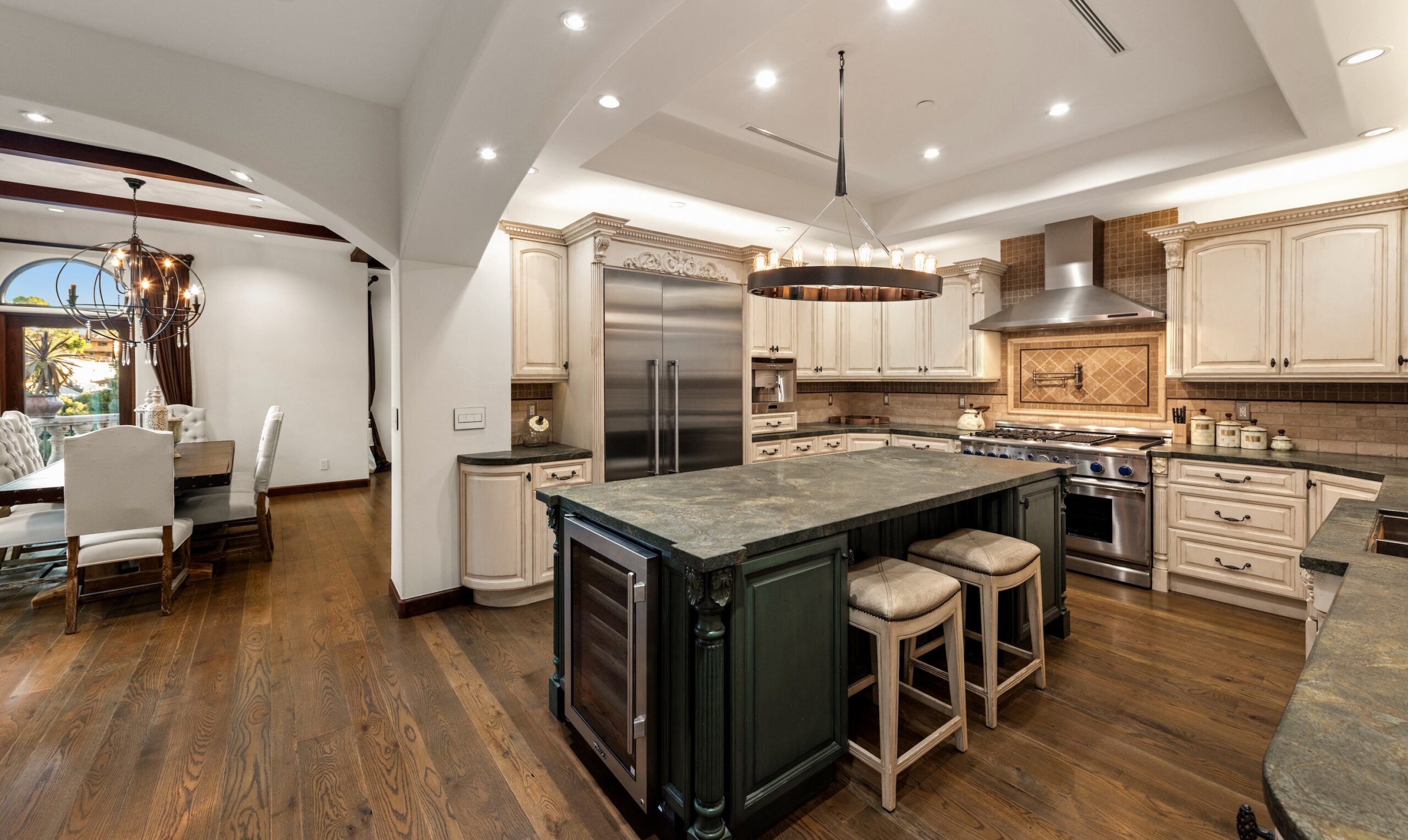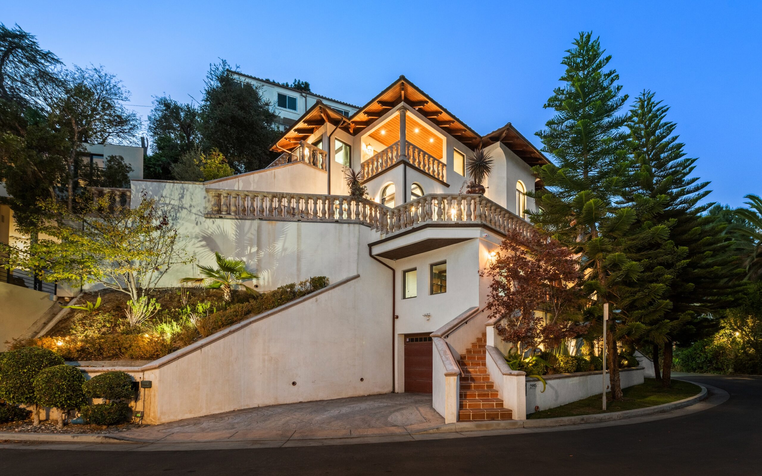string(1130) "Nestled beneath the iconic Hollywood sign, this elegant four-bedroom, three-and-a-half-bathroom home in Beachwood Canyon offers a timeless blend of charm and sophistication. Set on a sprawling hillside lot, the property spans four levels and showcases serene canyon views from nearly every room. The open main level flows effortlessly from the living room to the dining area and kitchen, creating a welcoming space ideal for both relaxing and entertaining. The luxurious primary suite features a private balcony, a large sitting area, and a walk-in closet, while the spa-inspired bathroom provides a tranquil retreat. Additional highlights include a junior suite, two spacious bedrooms, and a fully equipped screening room with a bar, perfect for intimate gatherings. Practical amenities include an elevator, a three-car garage with dual access, and outdoor spaces designed for entertaining, complete with a built-in barbecue and expansive deck offering panoramic views. Conveniently located near Beachwood Cafe, Griffith Park, and Lake Hollywood, this home is a serene oasis with vintage Hollywood allure and modern conveniences."