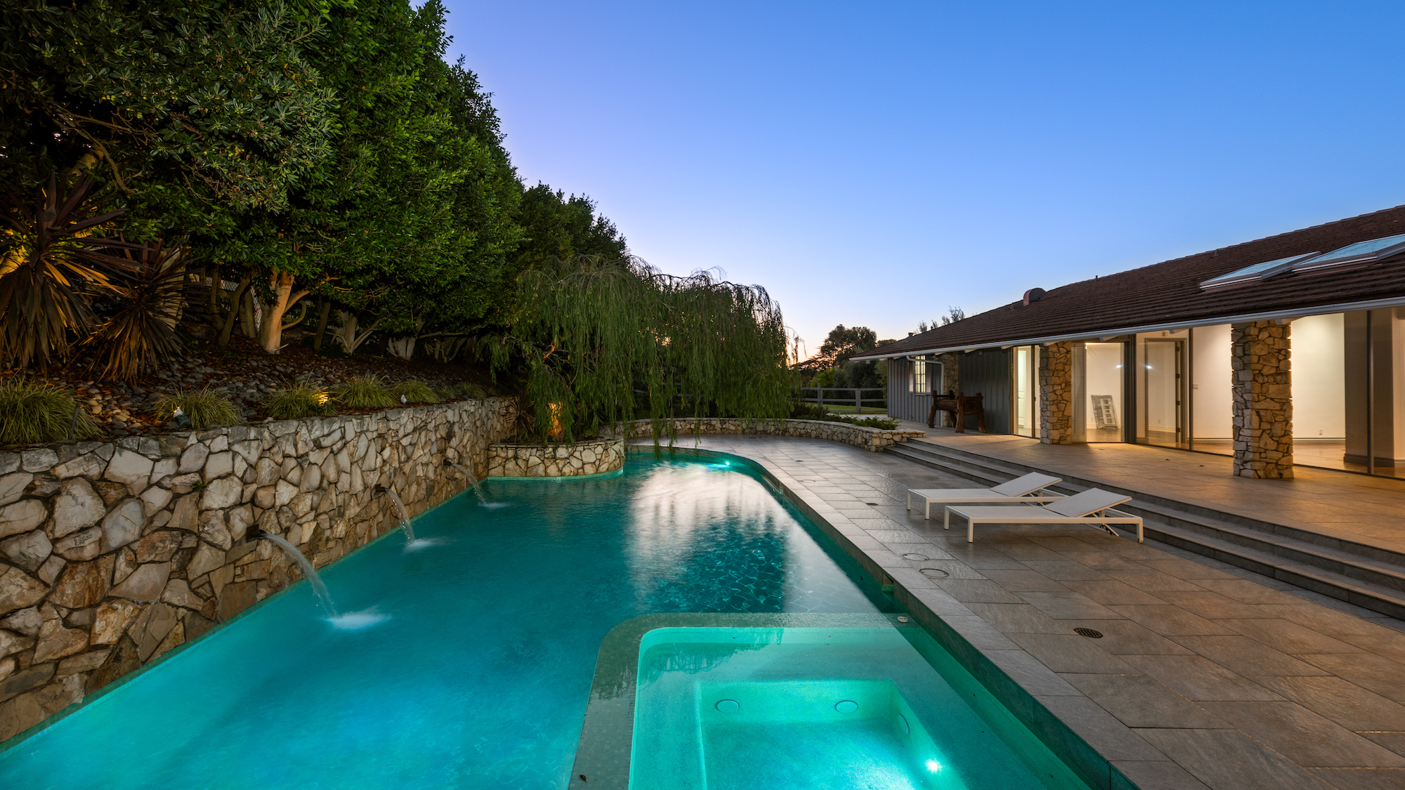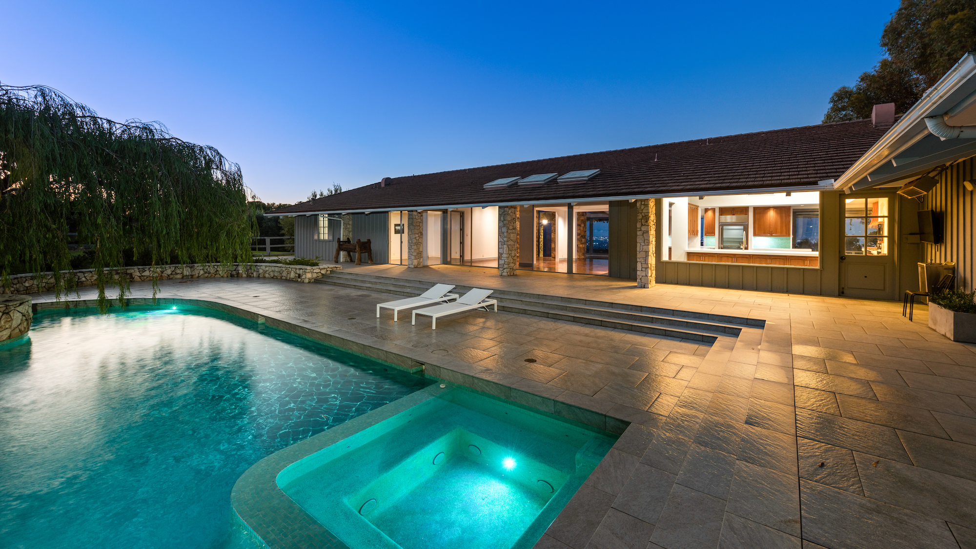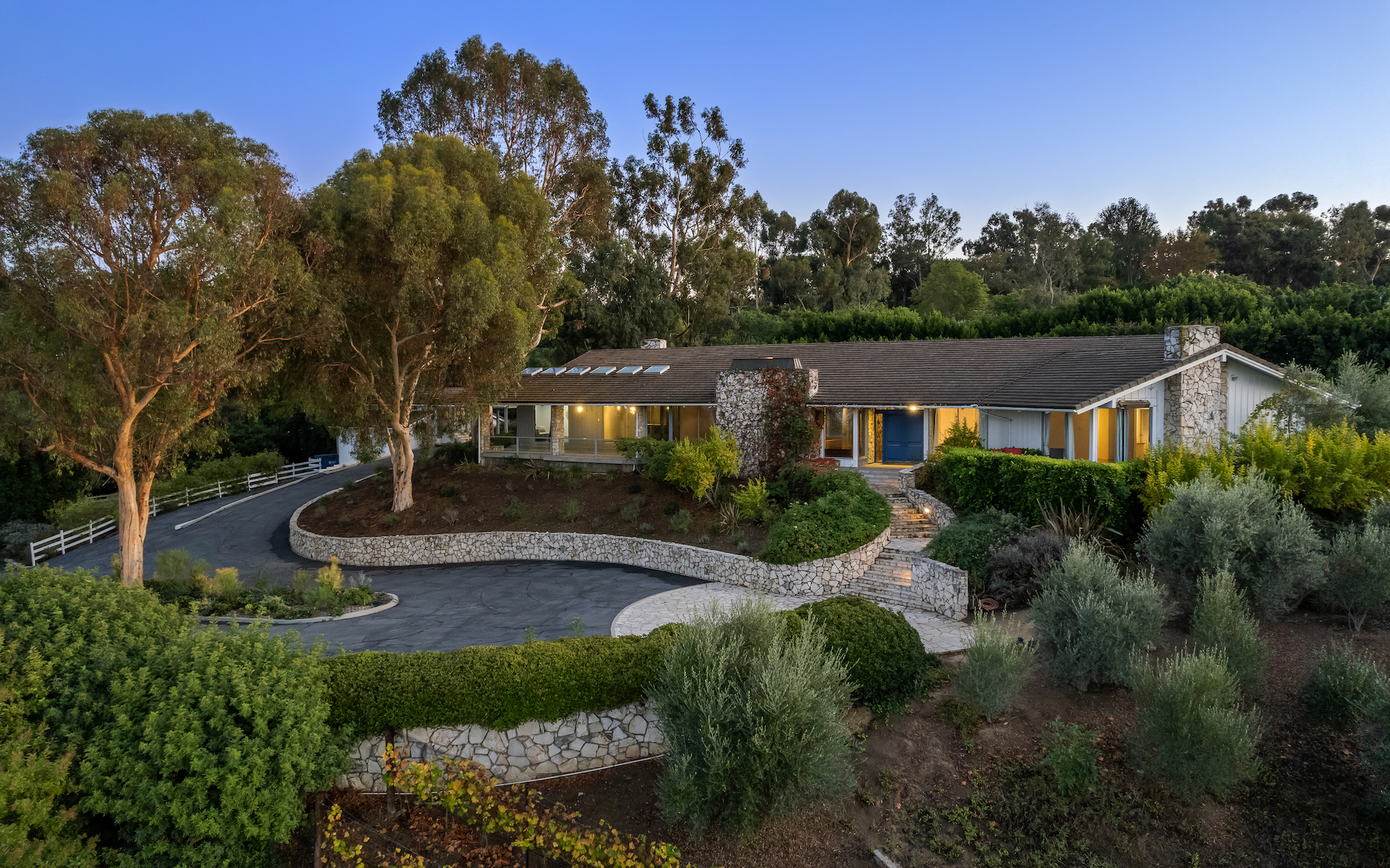 Situated on 5 sprawling acres in the heart of Rolling Hills, this expansive, private estate was built for renowned developer, Ernest Hahn as his personal residence. Featuring spectacular coastline and city lights views, the current owners planted approximately 2,500 Chardonnay and Pinot Noir vines, 85 olive trees as well as a formal herb garden and citrus orchard on the property. The grounds also include a swimming pool, spa, outdoor kitchen with pizza oven and fire pit. The main house includes 4 bedrooms plus an office, large living areas and a gourmet kitchen; walls of glass optimize the views. A spacious guest house, an oversized garage, a wine cellar and a private sports court are just a few of the other amenities. Continuously recognized as one of the safest cities in the US, the gated city of Rolling Hills has three entrances, miles of hiking and riding trails, as well as community tennis and pickleball courts. Located just minutes from South Bay beaches, downtown and Beverly Hills, Rolling Hills is located on the Palos Verdes Peninsula, which is known for its award winning schools, wonderful views and extensive horse trails.