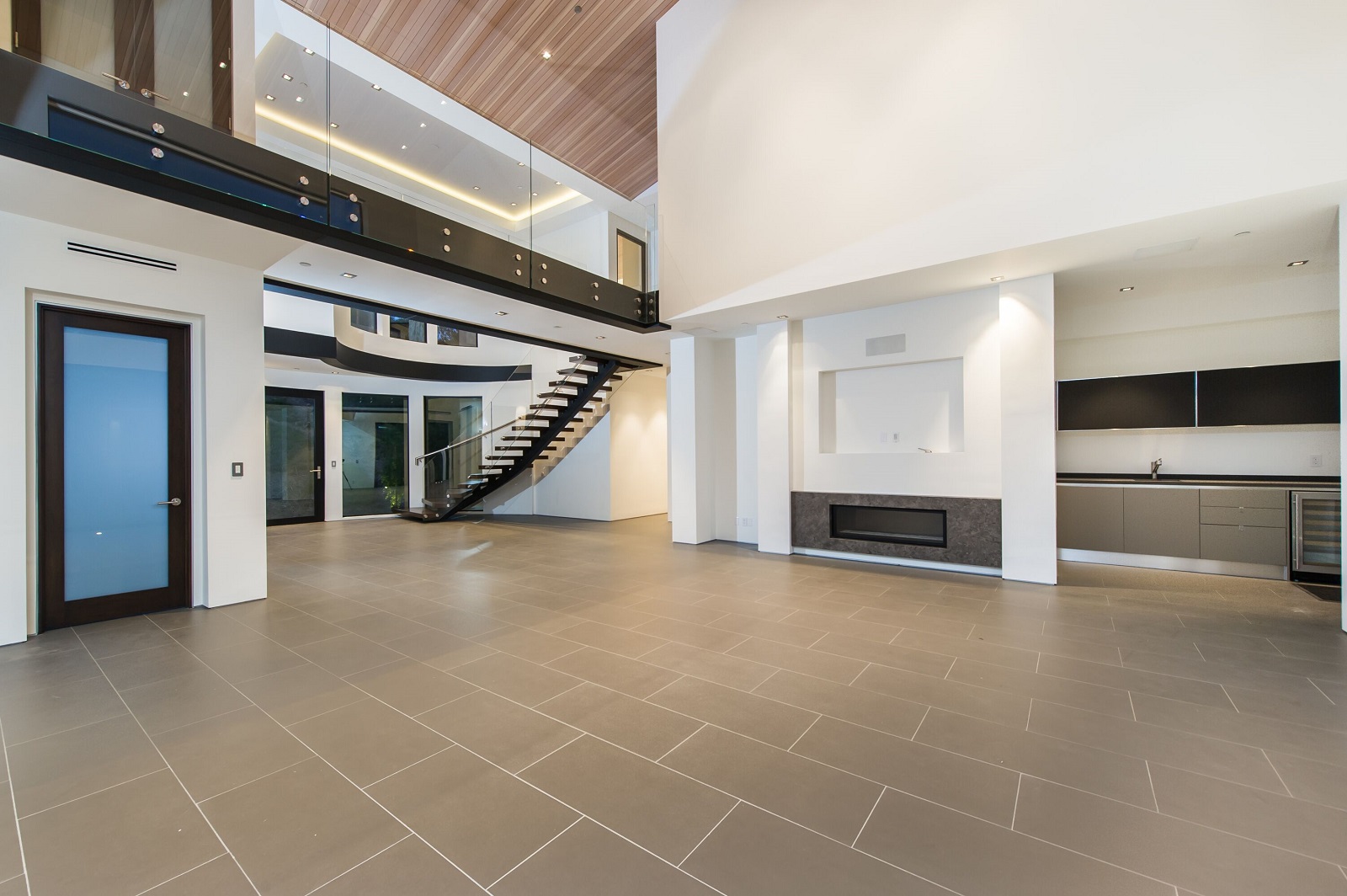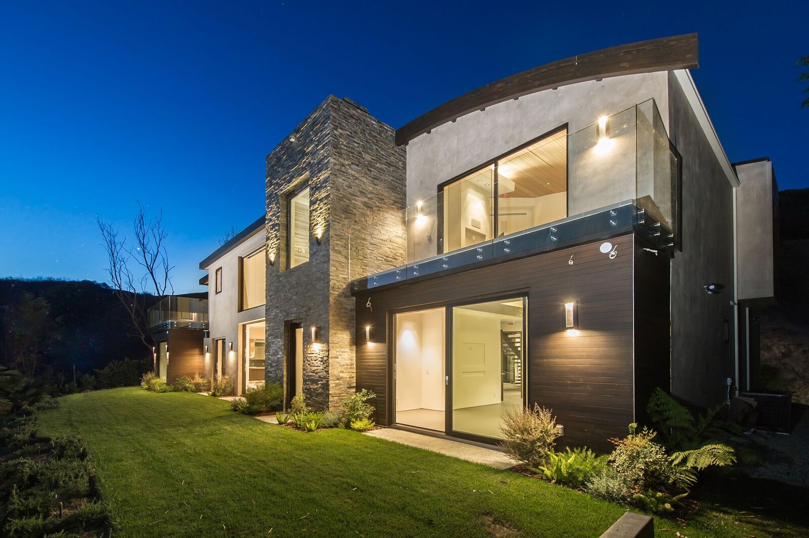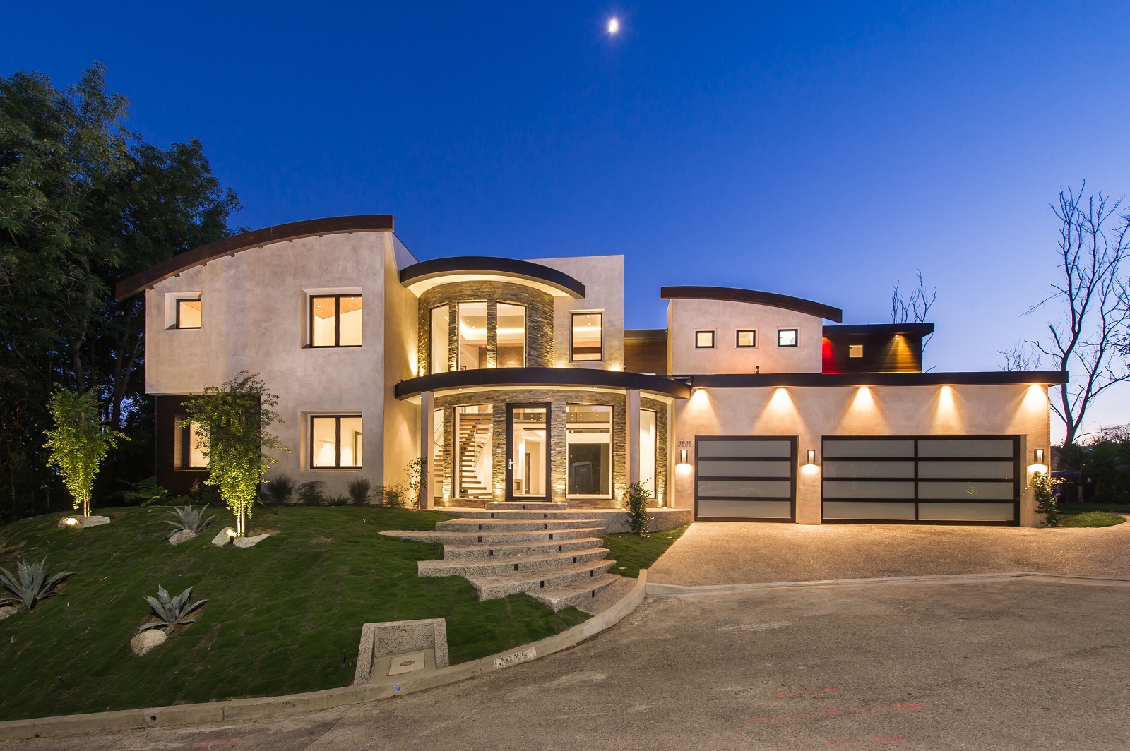 Stunning 2-story modern that was just completed this year. Upon entrance to the 5 bedrooms, 6 bathroom home, you are greeted by a commanding 20ft foyer with curved architectural staircase seamlessly flows into an expansive living room with hand-picked Douglas Fir wood vaulted ceilings, massive disappearing Fleetwood doors and wet bar accessible from the lushly landscaped backyard with canyon views. The sleek kitchen is equipped with top-of-the-line Miele appliances, Scavolini Scenery Italian cabinets and waterfall center island that opens to the dining room. The main floor is complete with a lower bedroom, master suite, and office. Upstairs features a master retreat and additional guest suite separated by an architectural walkway leading to a bonus entertainment room with full bar and powder room. The impressive home is pre-wired for smart-home Lutron lighting, high-end Definitive Technology speakers throughout and designer slabs and tiles by Ann Saks/Walker Zanger.