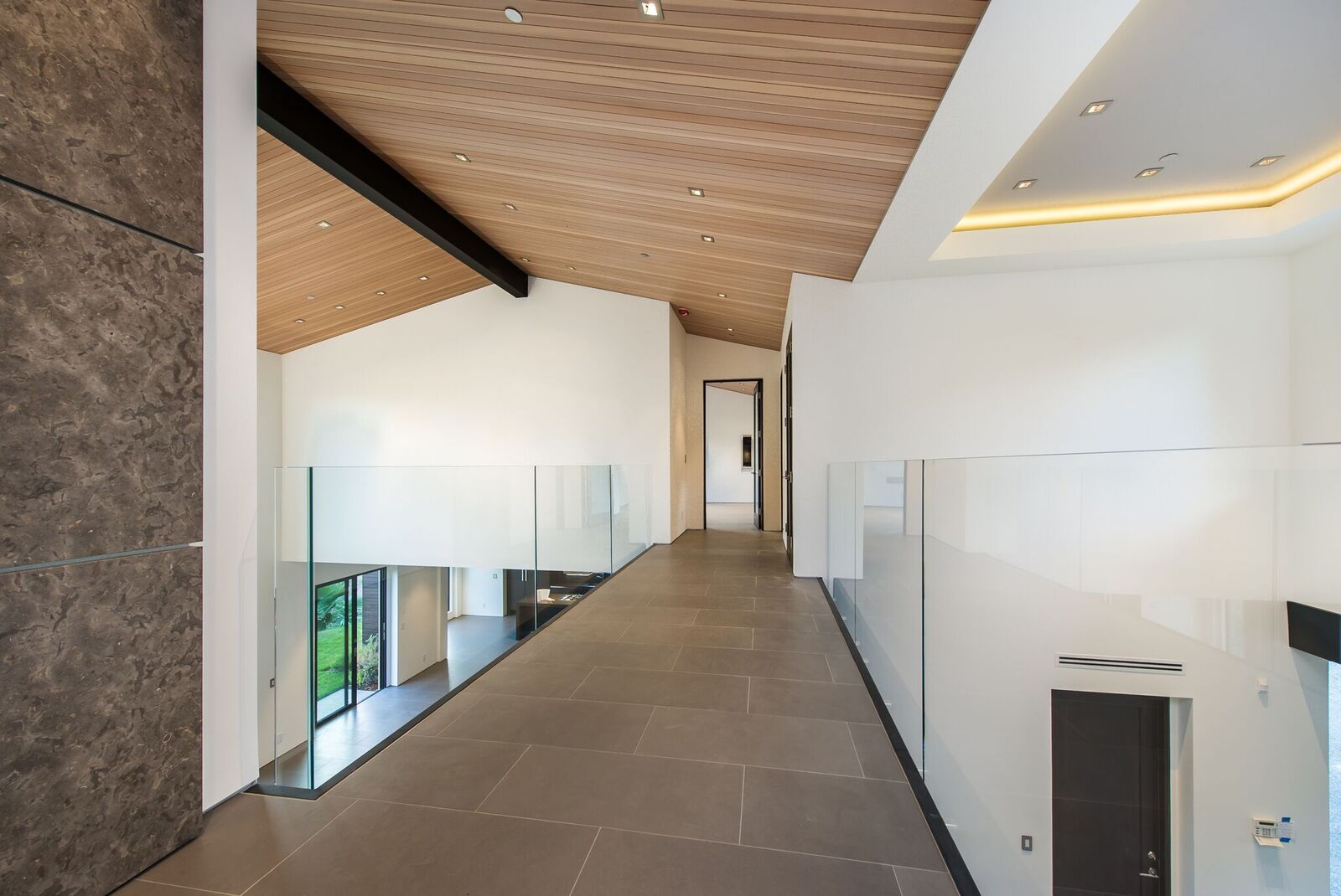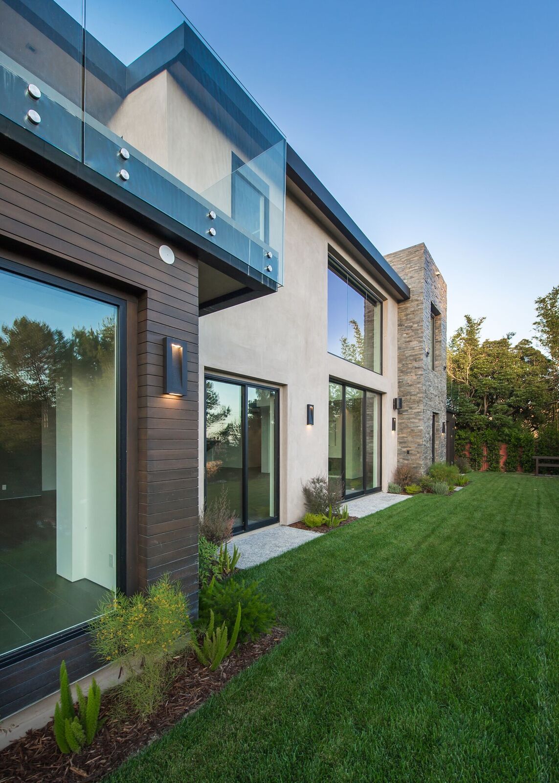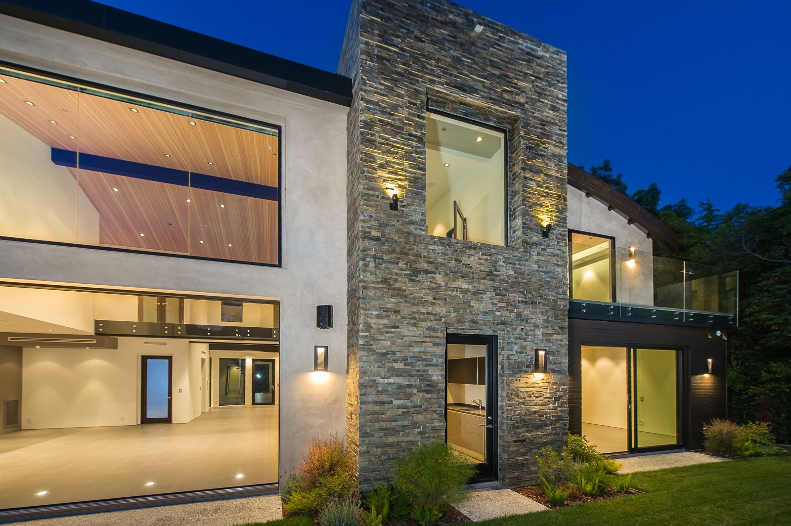 Stunning 2-story modern that was just completed this year. Upon entrance to the 5 bedrooms, 6 bathroom home, you are greeted by a commanding 20ft foyer with curved architectural staircase seamlessly flows into an expansive living room with hand-picked Douglas Fir wood vaulted ceilings, massive disappearing Fleetwood doors and wet bar accessible from the lushly landscaped backyard with canyon views. The sleek kitchen is equipped with top-of-the-line Miele appliances, Scavolini Scenery Italian cabinets and waterfall center island that opens to the dining room. The main floor is complete with a lower bedroom, master suite, and office. Upstairs features a master retreat and additional guest suite separated by an architectural walkway leading to a bonus entertainment room with full bar and powder room. The impressive home is pre-wired for smart-home Lutron lighting, high-end Definitive Technology speakers throughout and designer slabs and tiles by Ann Saks/Walker Zanger.