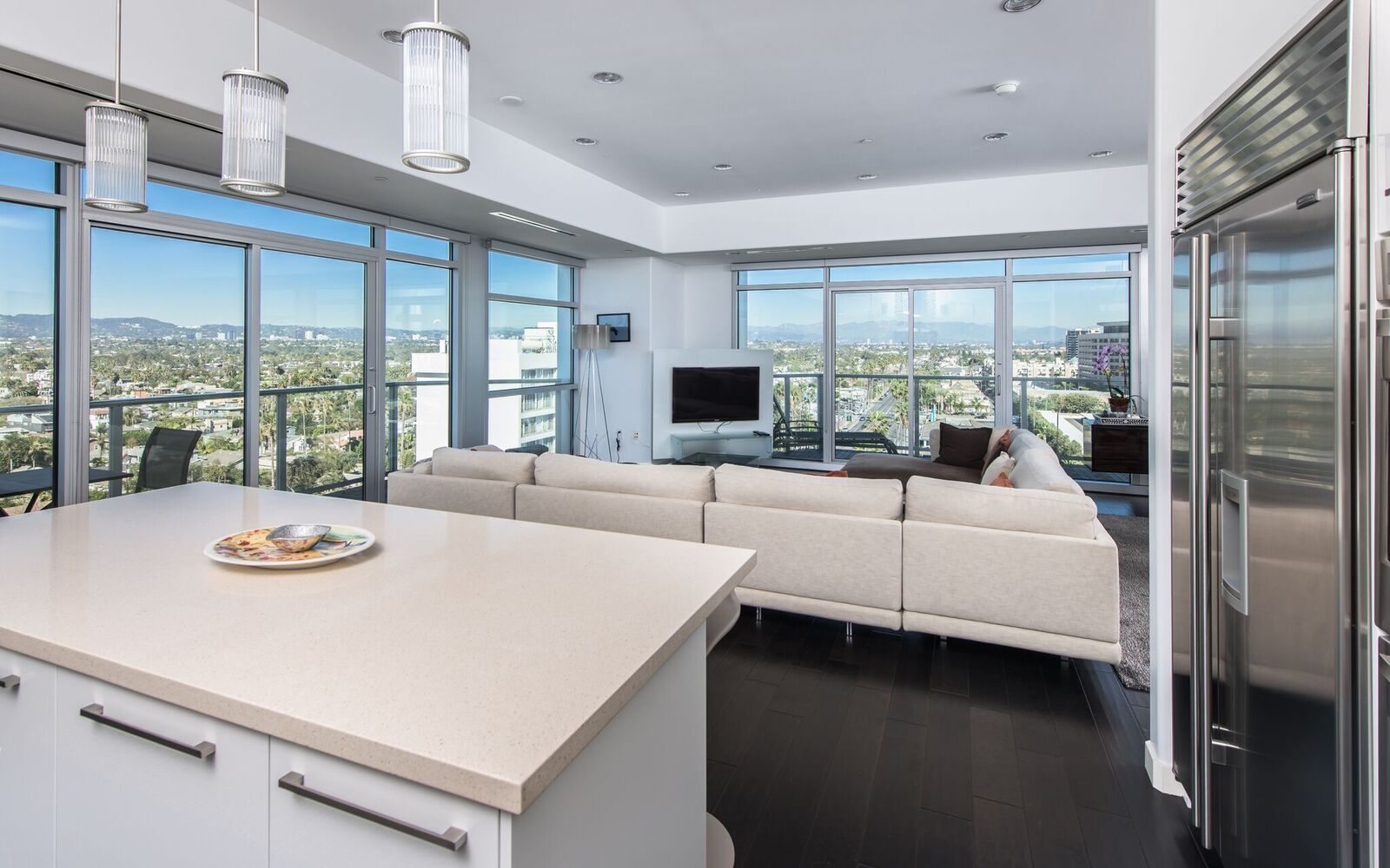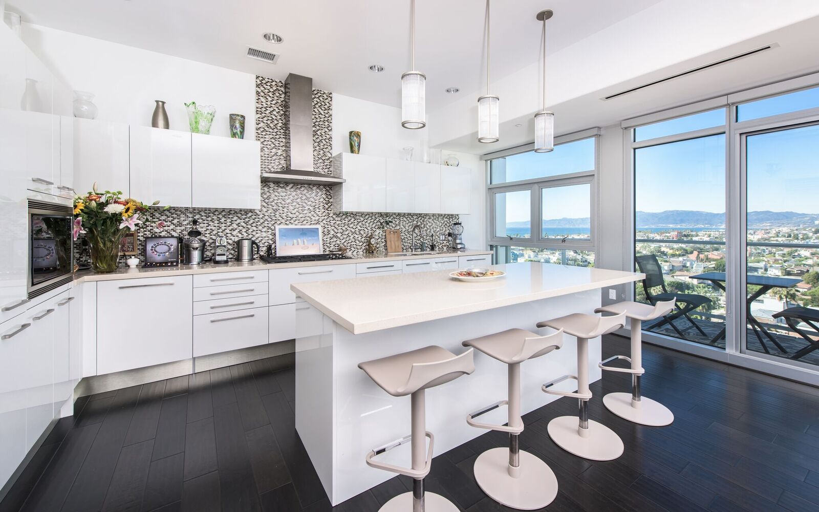 VIEWS, VIEWS, VIEWS! Very chic, modern Penthouse at Latitude 33 Sky. First Penthouse on the market since built/sold in 2010. Complete open floor plan, wrap around balconies (approx 270 sqft), and floor-to-ceiling windows with beautiful views of the sunset, ocean, marina, and the city throughout. Amazing master bedroom with spa bathroom and walk-in closet and 2 additional spacious bedrooms/bathrooms. Kitchen features marble countertops, kitchen island and top-of-the-line stainless steel appliances, including SubZero refrigerator/freezer and wine cooler, Wolf gas top range, 2 ovens, microwave, and Bosch dishwasher. Amenities include concierge service and a fitness center. Phenomenal location, walking distance to ocean and trendy restaurants.