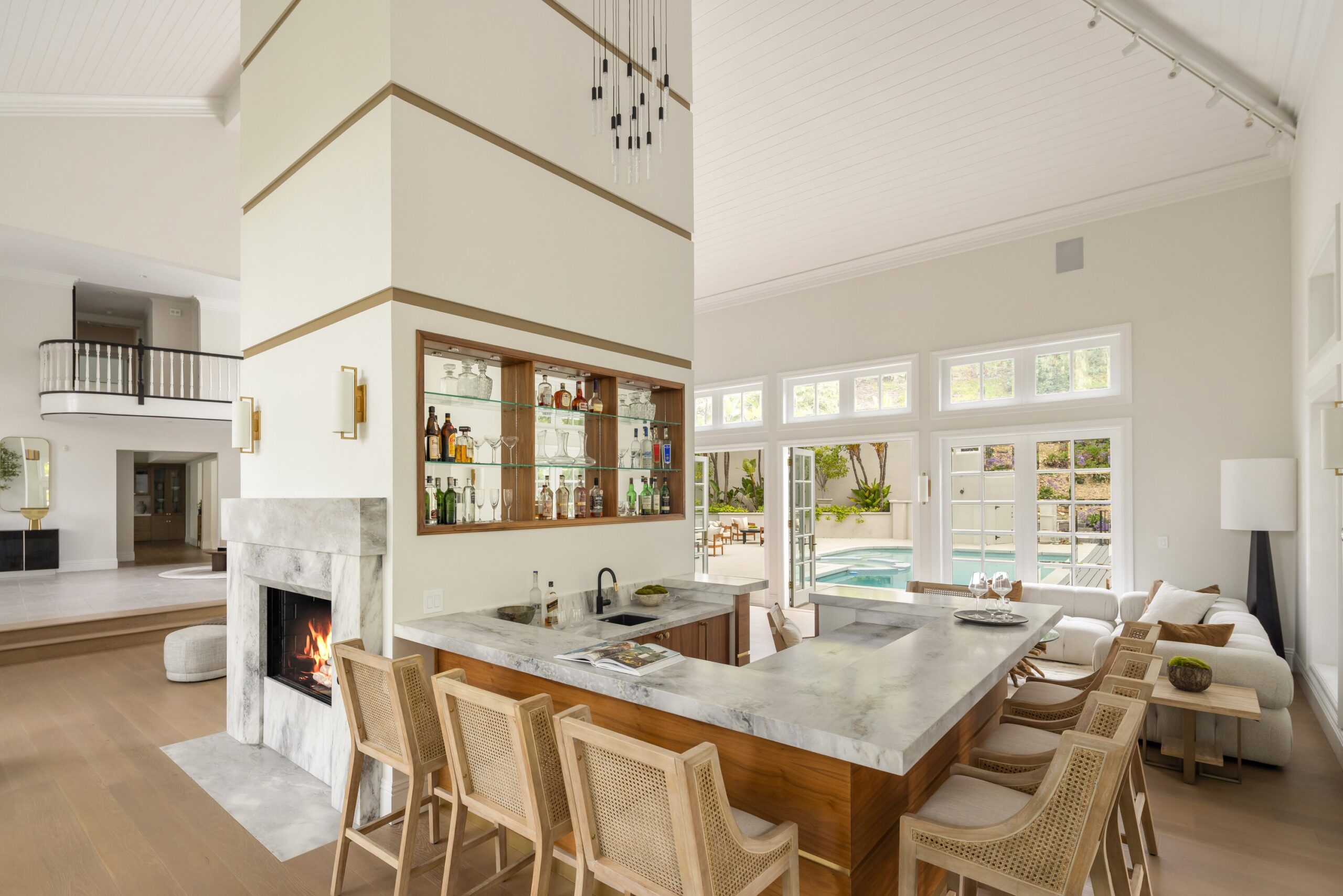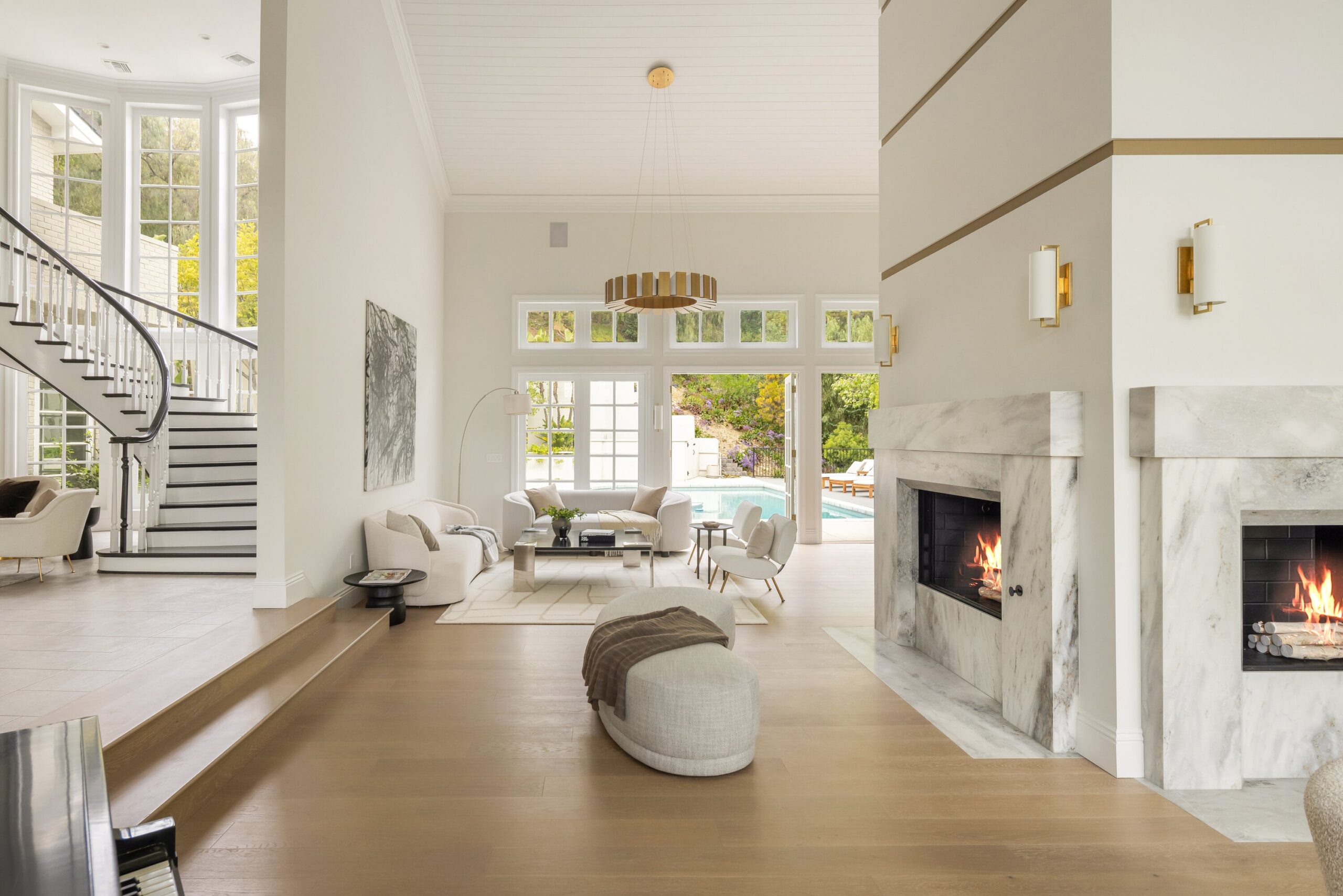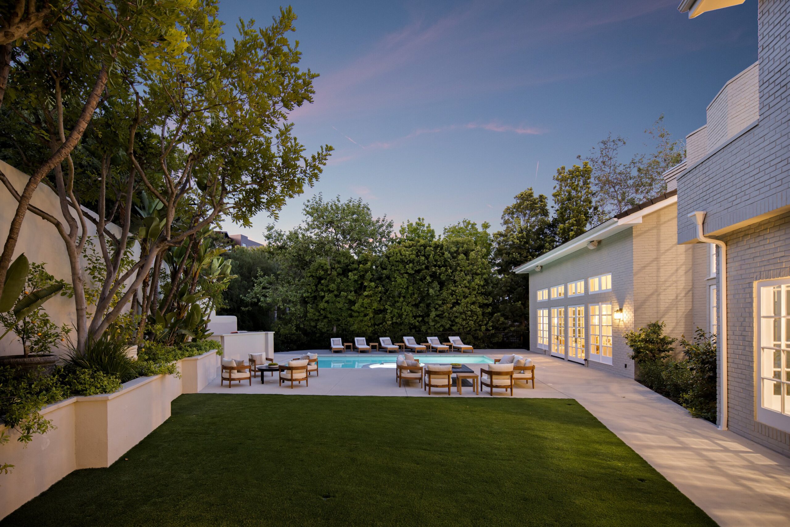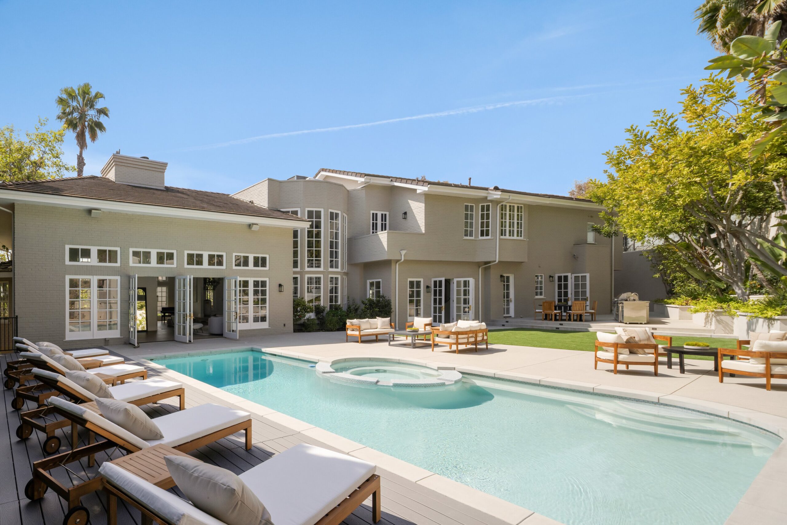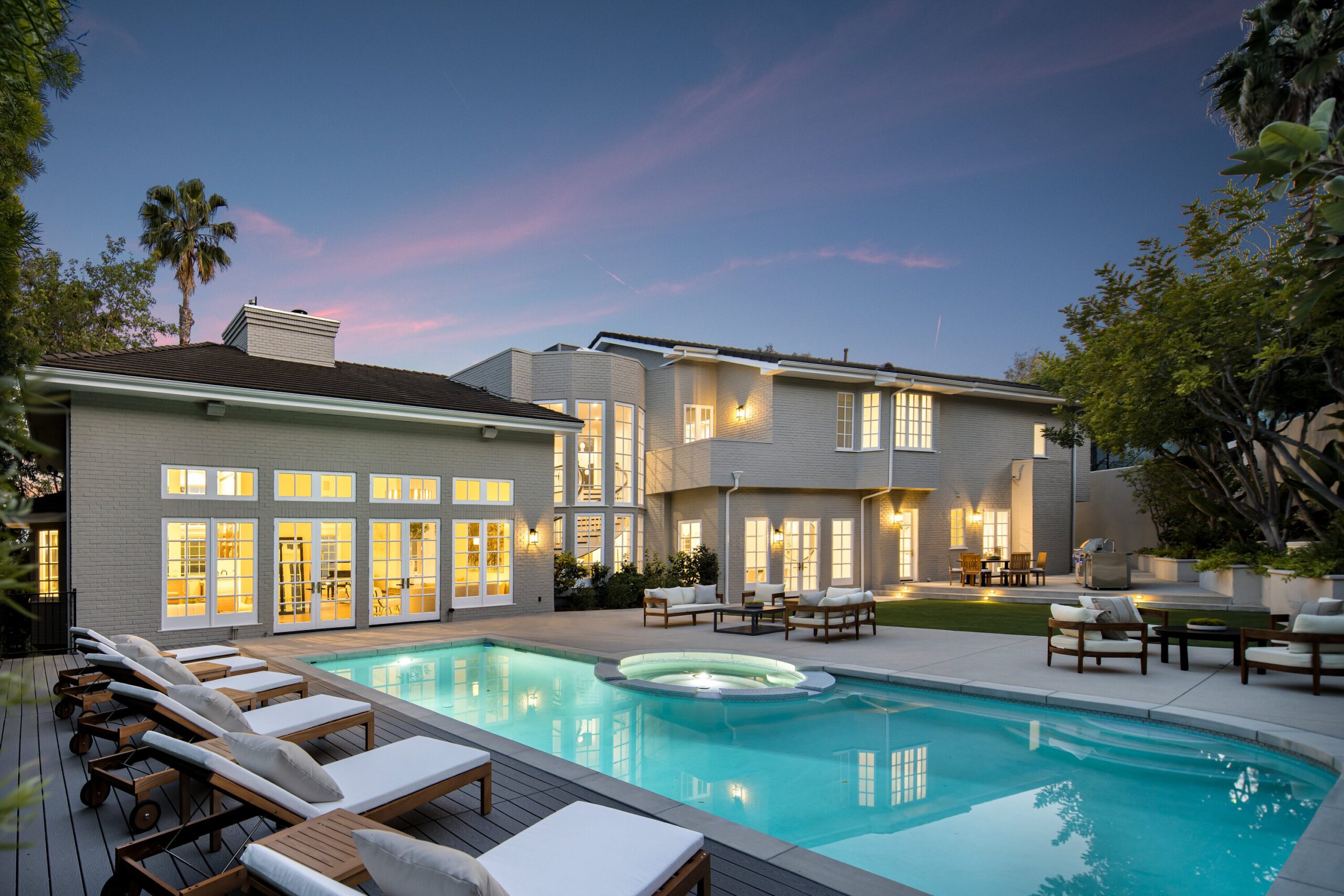 One of the finest homes in the Deep Canyon area: Totally reimagined using the highest end materials, not built for resale. Carefully chosen for its proximity to the best the city (and valley) has to offer, including some of the highest ranking private schools and public educational institutions in the entire United States. Beyond the stately brick facade and the dramatic 10-foot custom front door, you're greeted by a soaring two-story foyer and a sweeping staircase that sets the tone for the home's refined elegance. The show stopping living room is reminiscent of the lobby bar of the finest newly built hotel featuring 23-foot ceilings! Floor-to-ceiling windows flood the space with natural light, a sleek wraparound fireplace, and designer lighting all anchored by a stylish wet bar that's perfect for entertaining. The indoor entertainment space flows to the outdoors with enough space for a 300+ person party or gala. Large swimmers pool, massive turf lawn, and BBQ setup fit for a top chef. Outdoor dining flows seamlessly back into a chef's dream kitchen, outfitted with premium Wolf and Sub-Zero appliances, a spacious Butler's pantry, and sophisticated finishes - with a large formal dining room. The main level offers a well-appointed guest suite with a private en-suite bath, a wine closet, and a convenient laundry room. Upstairs, you'll find 5 large bedrooms, including one with a private balcony. The lavish primary suite is your personal sanctuary, featuring dual walk-in closets, and water closets, a steam shower, and a dry sauna for spa-like indulgence. Enjoy peace of mind and cutting-edge convenience with integrated smart home technology, and state of the art security and camera system. 3 car garage with ample gated off street parking.