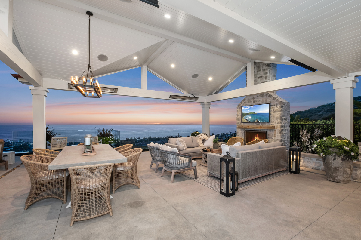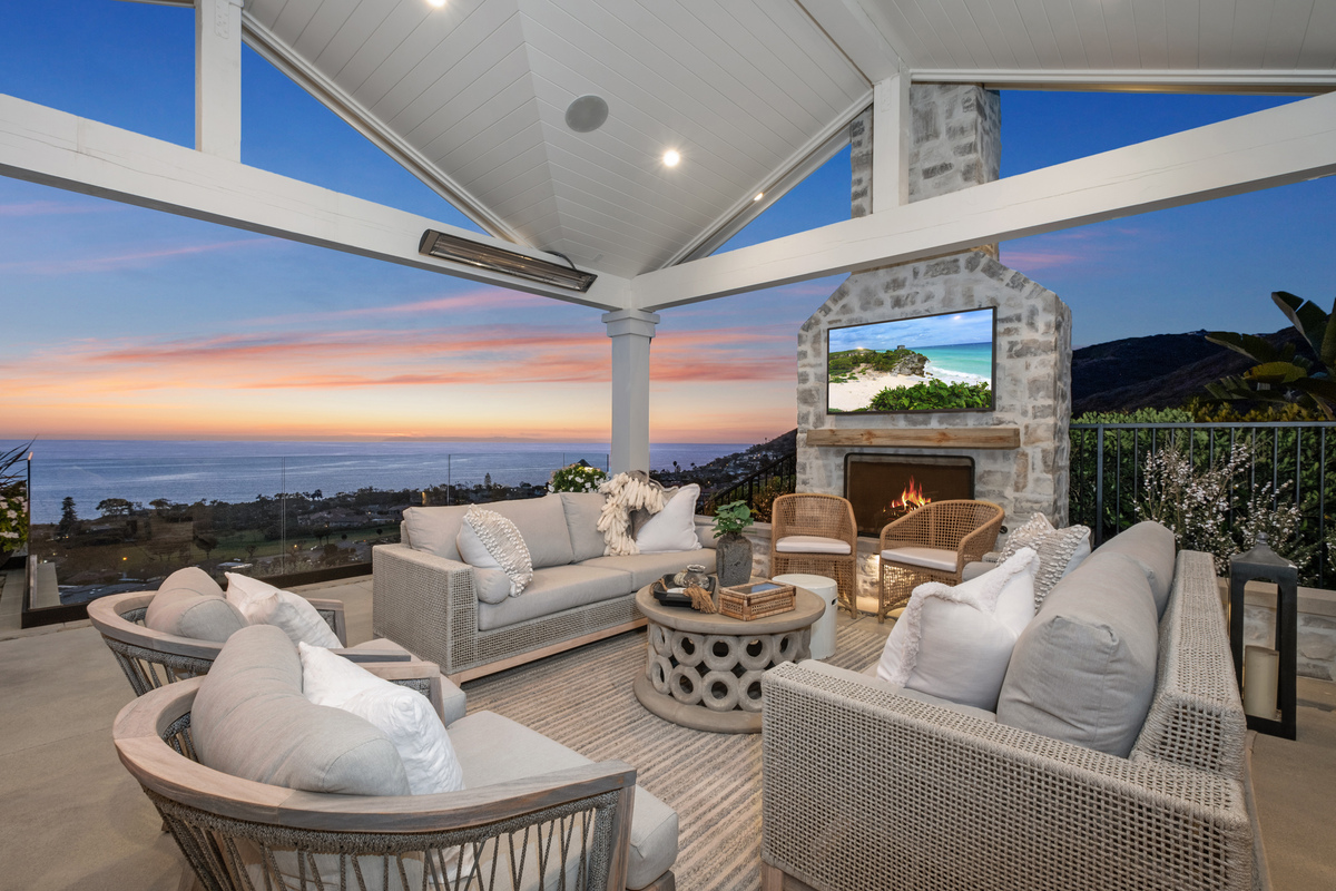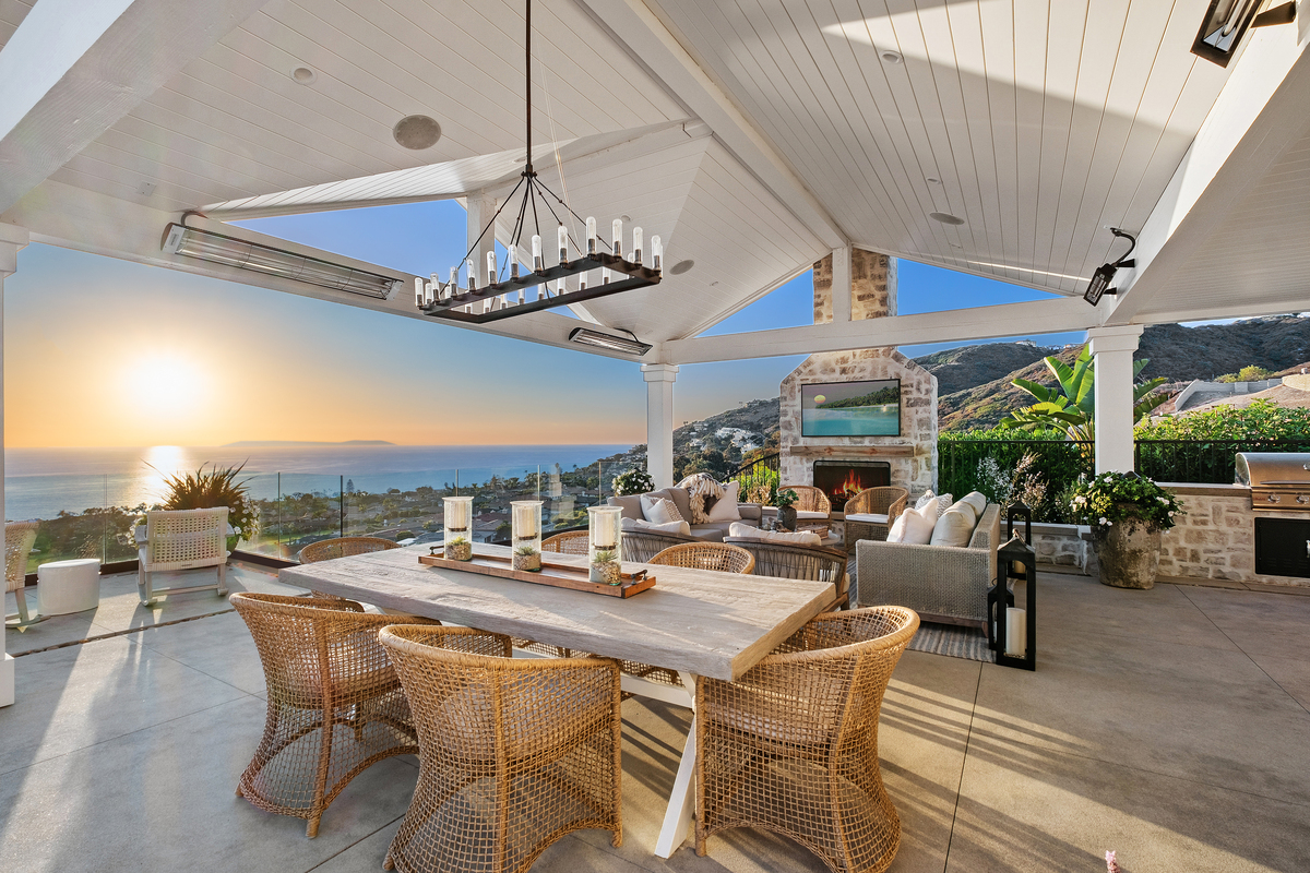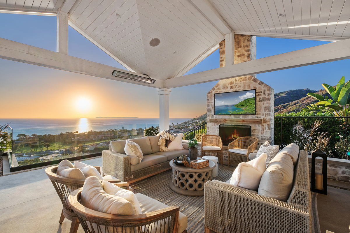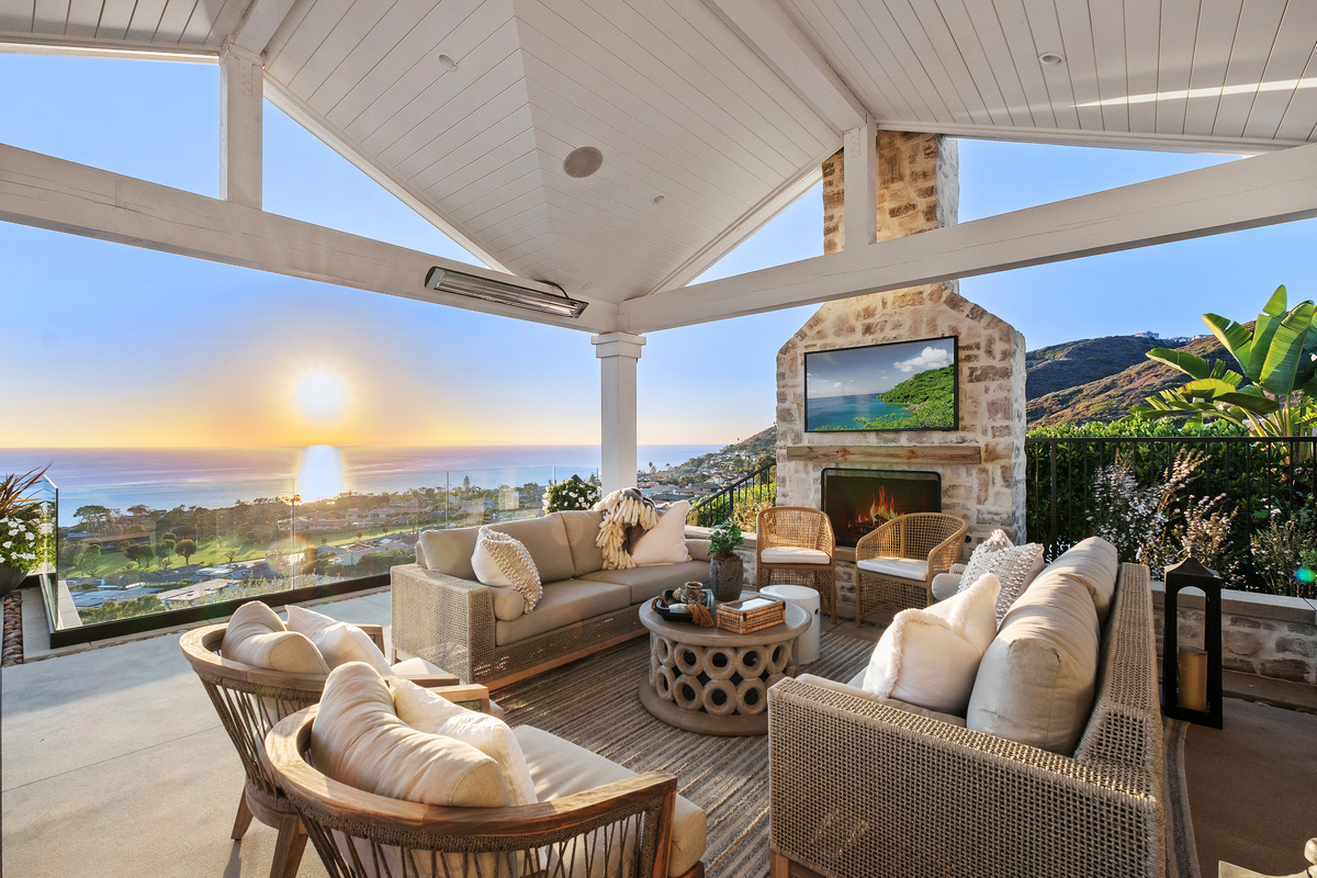 Luxury Coastal Living. Discover unparalleled coastal elegance at this newly built, single-story masterpiece in the prestigious Monarch Bay Terrace. This contemporary home offers breathtaking panoramic ocean views, stretching from Catalina Island to San Clemente Island. Step inside to a thoughtfully designed open floor plan, featuring three spacious bedrooms, three and a half baths, plus a dedicated home office. The primary suite boasts a king-sized bed, an en suite spa-like bathroom, and a walk-in closet, while two additional bedrooms - one with a queen and the other with an oversized twin - each have their own private en suite bathrooms. Designed for both comfort and entertainment, the gourmet kitchen is equipped with dual walk-in pantries, wine storage, and high-end appliances. The living room, centered around a cozy fireplace and a 75-inch TV, flows seamlessly into the outdoor oasis. The exterior is an entertainer’s dream, showcasing a stunning infinity pool with swim jets and spa, a covered patio with heaters and TV and sauna and cold plunge. An outdoor BBQ, fire pit, and lush lemon and lime trees enhance the resort-style ambiance, while security lights and cameras provide peace of mind. Additional highlights include a fully furnished interior (including kitchenware), a laundry room with pet-friendly outdoor access, and a two-car garage. This exquisite coastal retreat offers the perfect blend of luxury, privacy, and modern convenience—an exceptional opportunity to experience the best of Coastal living.