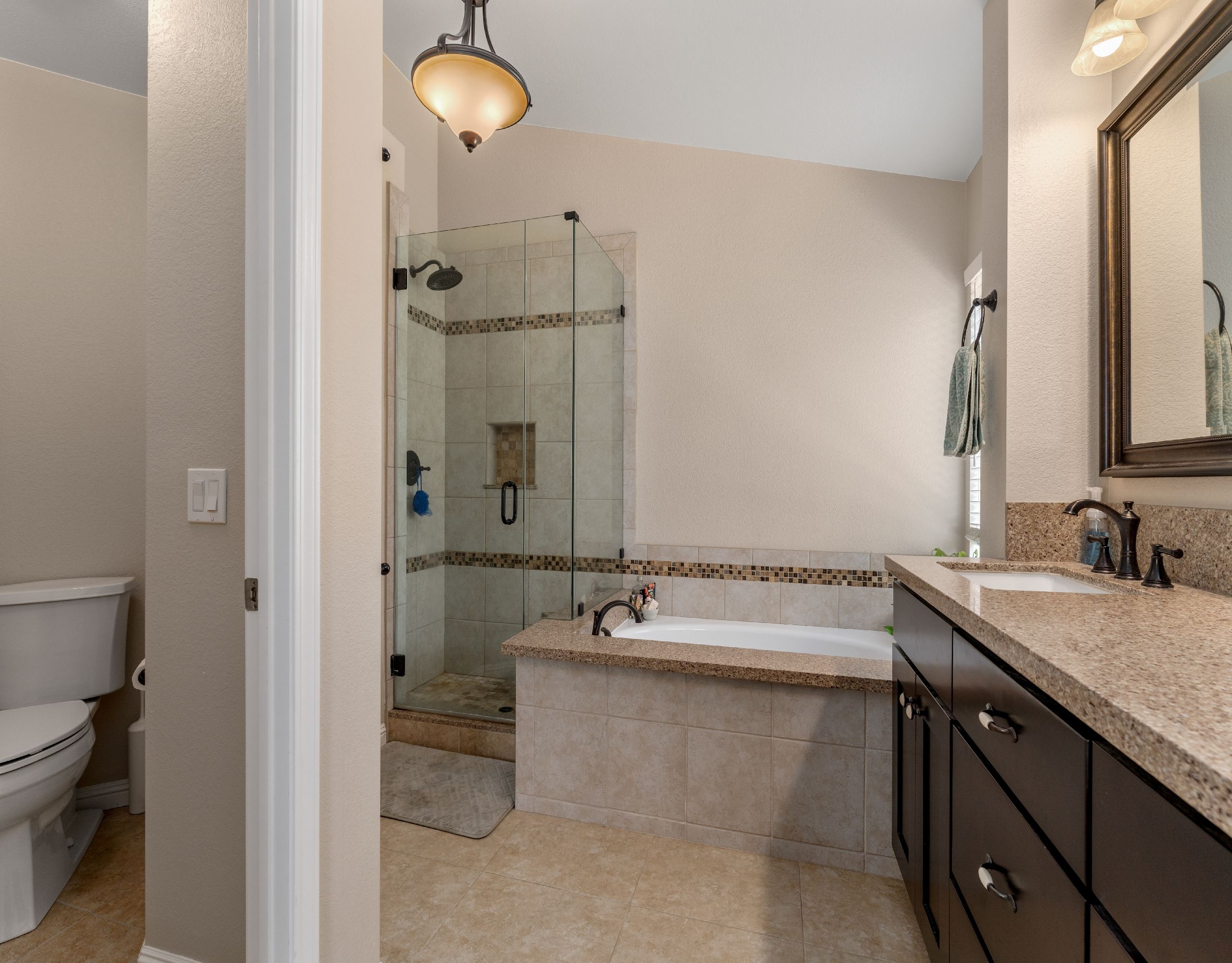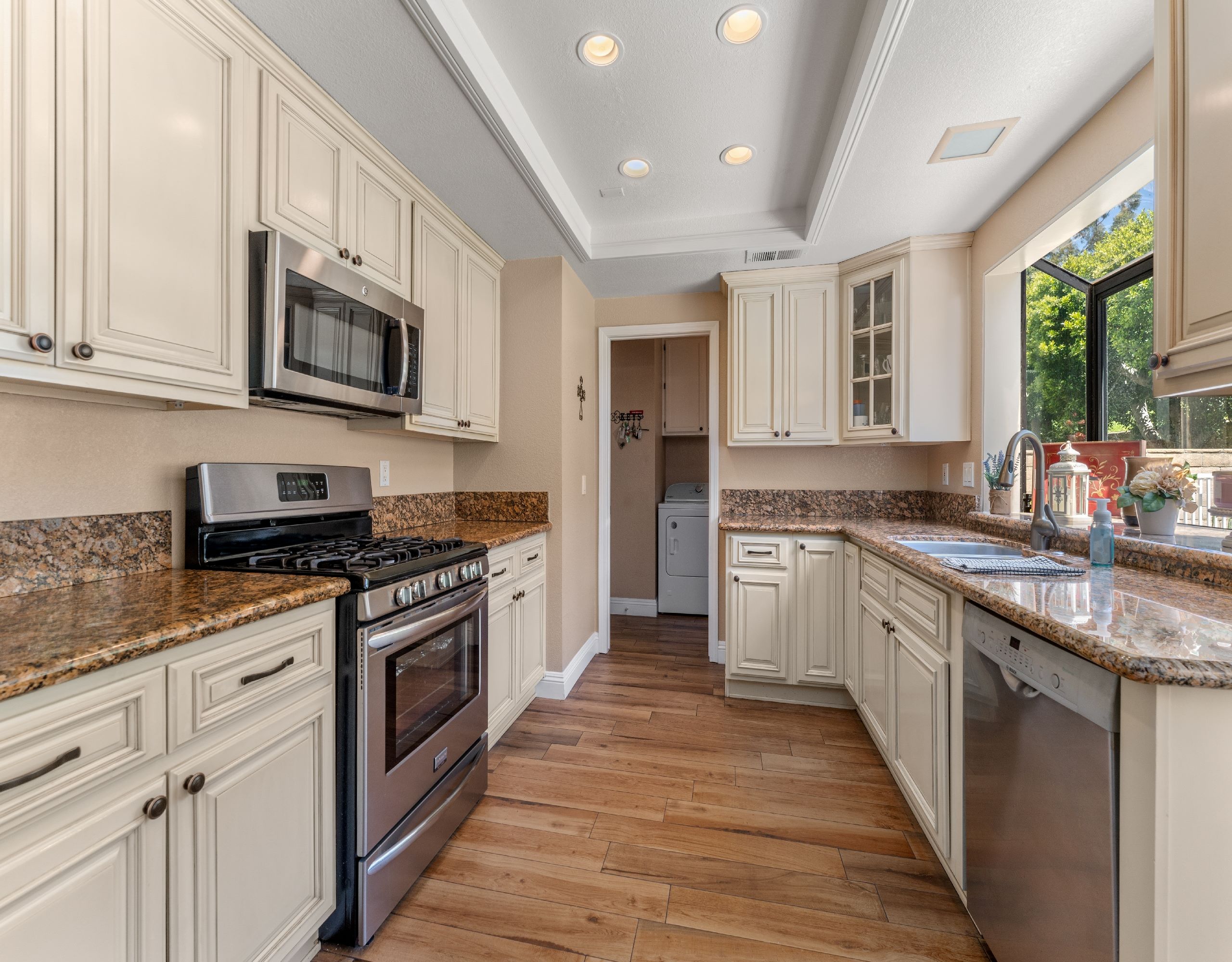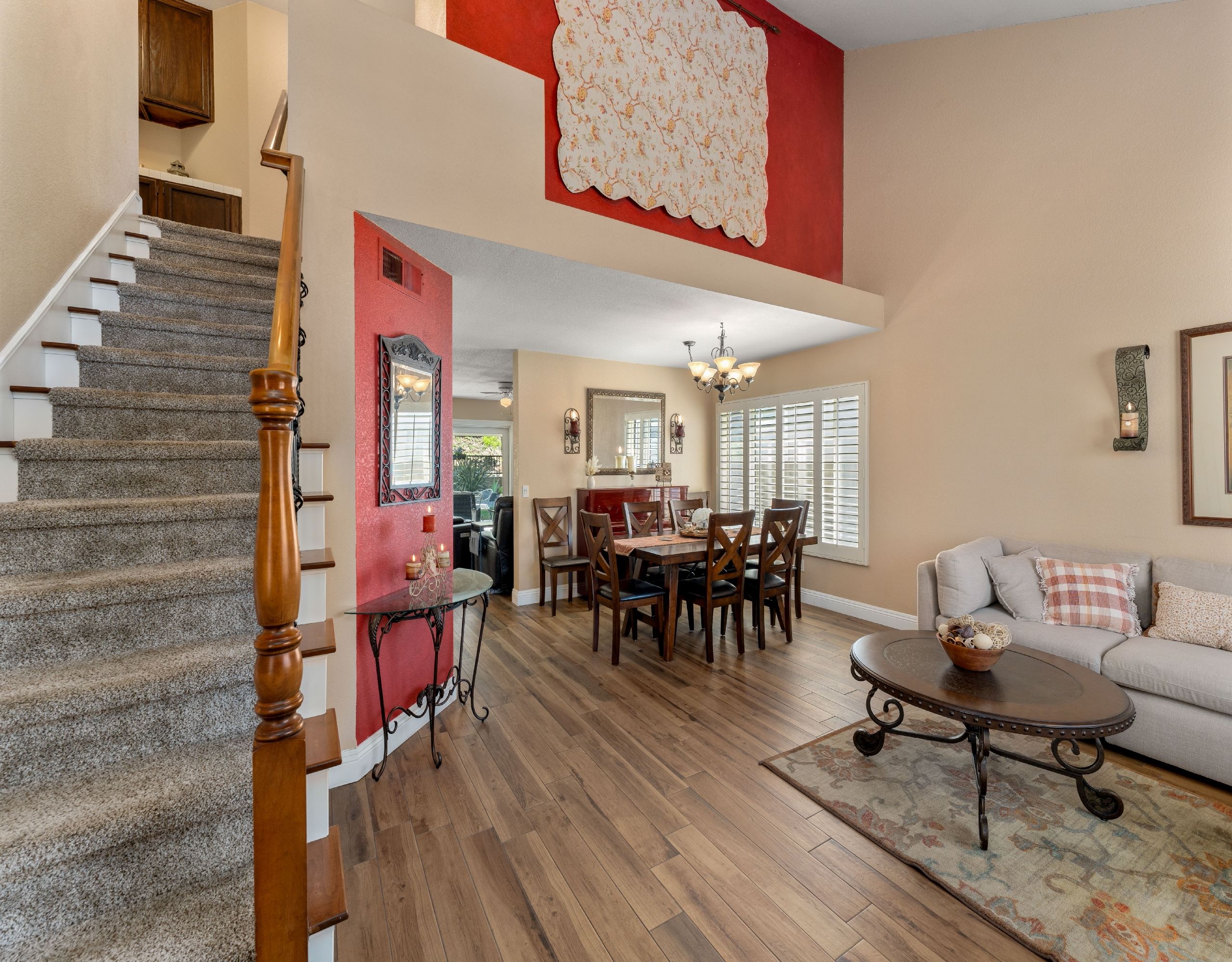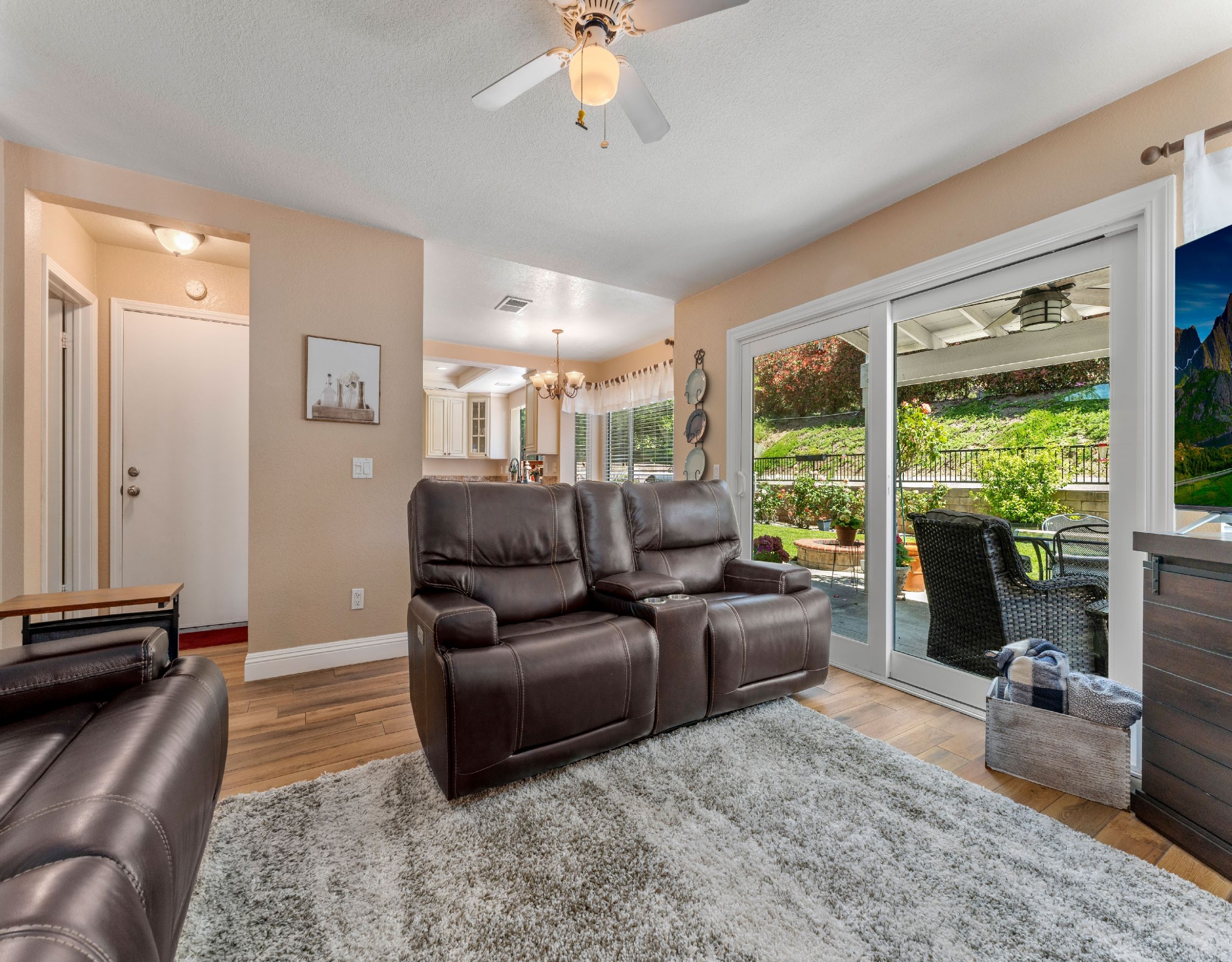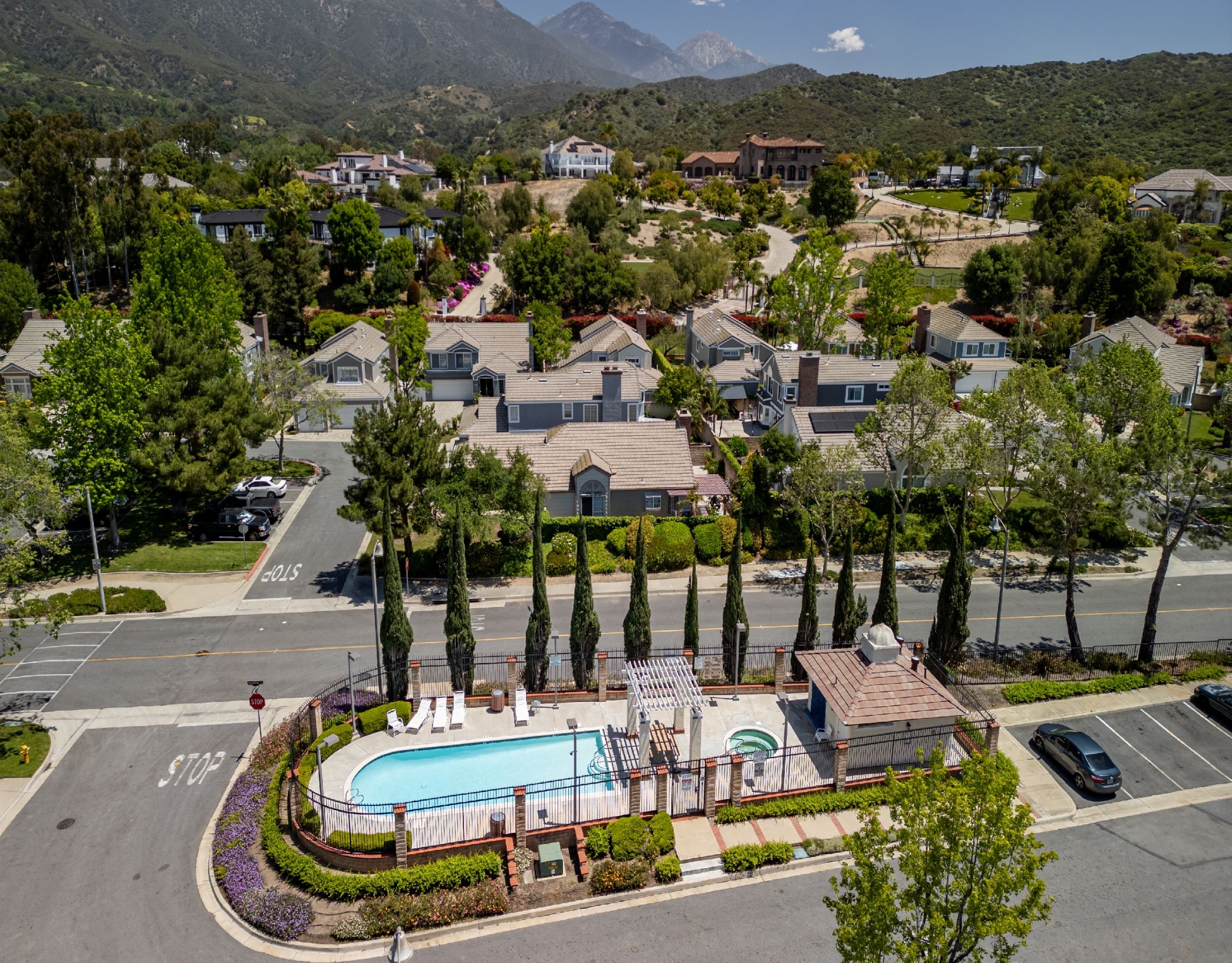 Nestled in the gated Live Oak at Emerald Ridge community in North La Verne, this well-maintained home offers comfort and convenience. Located on a quiet cul-de-sac, this home has been lovingly cared for over the past 35 years. The double-door entry leads to an open floor plan with vaulted ceilings and a beautiful staircase. The bright living room features multiple windows, filling the space with natural light. The family room connects to the updated kitchen, complete with granite countertops and custom cabinetry, making it perfect for entertaining. The upstairs primary suite offers stunning mountain views, a large closet, and a newly renovated bathroom. Three additional bedrooms and another updated bathroom complete the upper level. The private backyard includes a spacious lawn, built-in BBQ, fire pit, and lovely mountain views, ideal for gatherings. A two-car attached garage provides direct access to the home. Community amenities include a swimming pool and RV/boat parking available through the HOA. This home features numerous upgrades, such as custom wrought iron stair railing, new carpet upstairs, modern tile floors downstairs, and enhanced lighting throughout. Outdoor enthusiasts will appreciate the close proximity to Marshal Canyon, perfect for hiking and mountain biking. Located in the award-winning Bonita Unified School District, this home combines luxury and comfort in a prime location. Don't miss this incredible opportunity!