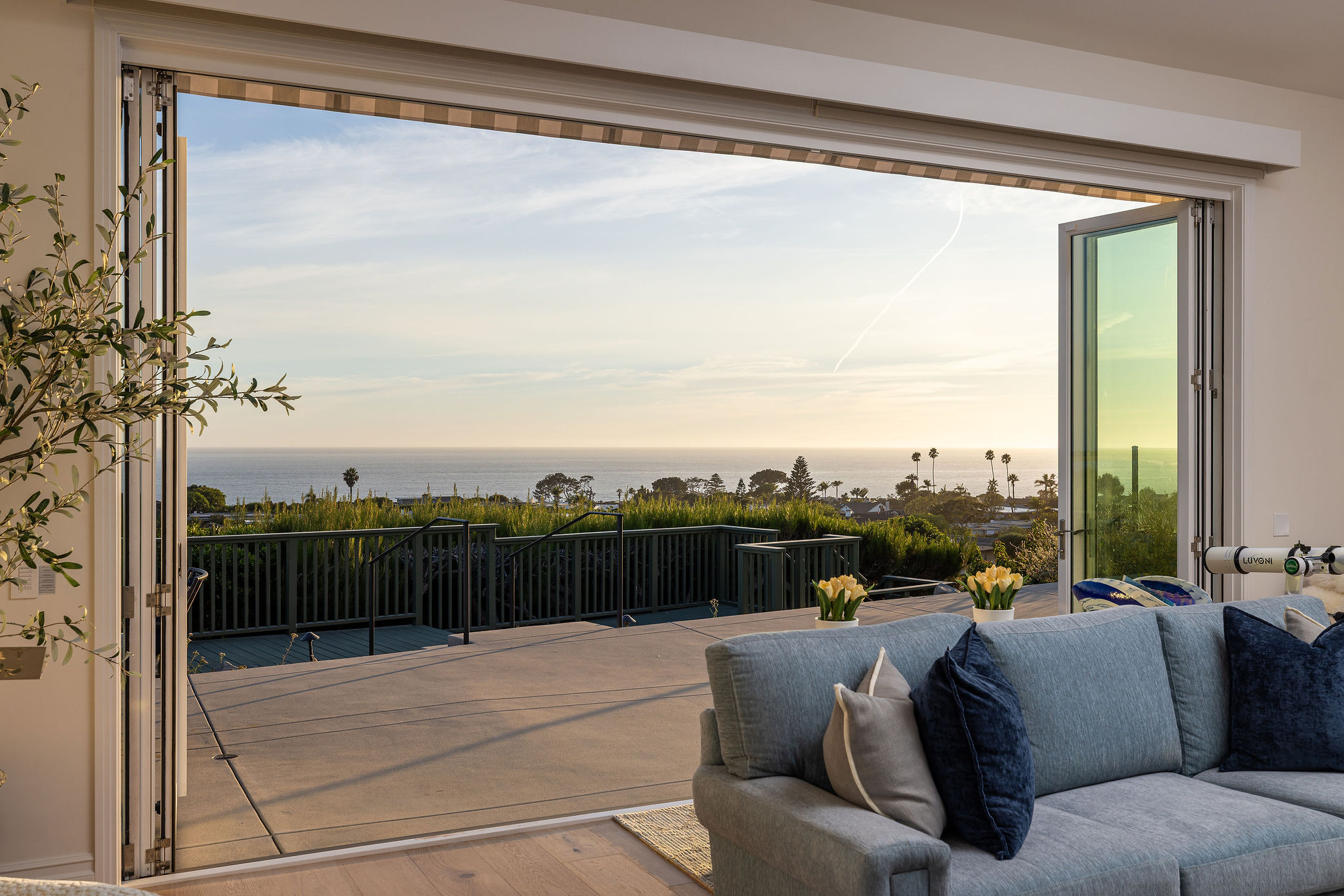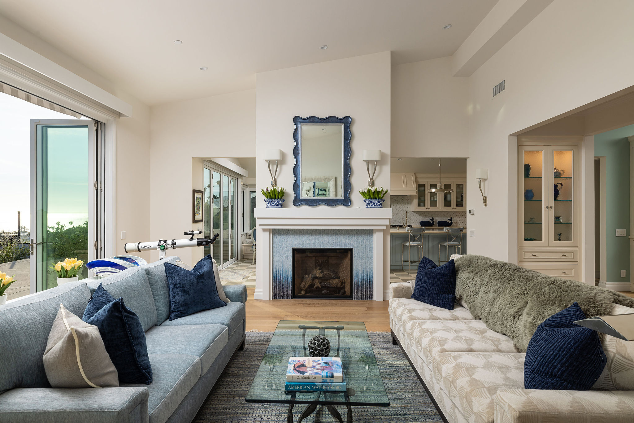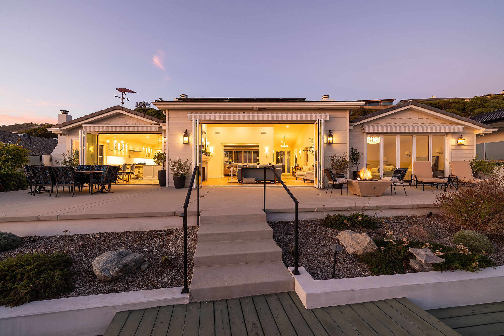 Completed in 2024, this single-level Cape Cod inspired residence is a celebration of biophilic design bringing light, nature, and tranquility into every space. With 3 bedrooms and 3 baths, the home seamlessly connects indoor luxury with the restorative power of the outdoors. Natural materials and organic textures ground the interiors. White oak flooring, limestone, and marble finishes are complemented by vaulted ceilings and expansive French doors. Accordion glass doors dissolve the boundary between inside and out, opening to a panoramic ocean-view patio where sun, sky, and sea become part of daily living. The chef s kitchen anchored by a La Cornue range, Sub-Zero refrigeration, walk-in prep pantry, and custom cabinetry flows effortlessly to the entertaining island, designed to gather and connect. The primary suite is a private sanctuary with sit-down ocean views, fireplace, his-and-hers closets, and a spa bath with soaking tub and rain shower head. A guest suite opens to a serene courtyard featuring a water element and lush landscaping, creating its own moment of retreat. Designed for entertaining, the outdoor space features a panoramic ocean-view patio complete with a pizza oven perfect for alfresco dining under the stars. Sustainable landscaping with native plants was carefully chosen for year-round color, while also attracting hummingbirds and butterflies, creating a vibrant and ever-changing natural setting. Additional highlights include a French Art Deco chandelier, biophilic architectural details throughout, smart electric shades, epoxy-finished garage, and a tankless water heating system. Set on a private, single-loaded street in Monarch Terrace, this home embodies elevated coastal living where modern design and nature exist in perfect harmony.