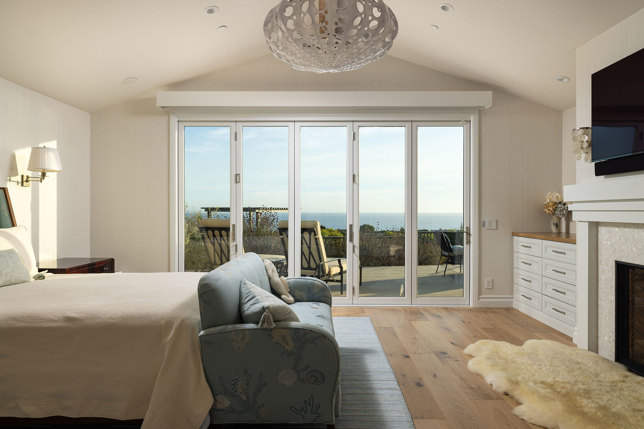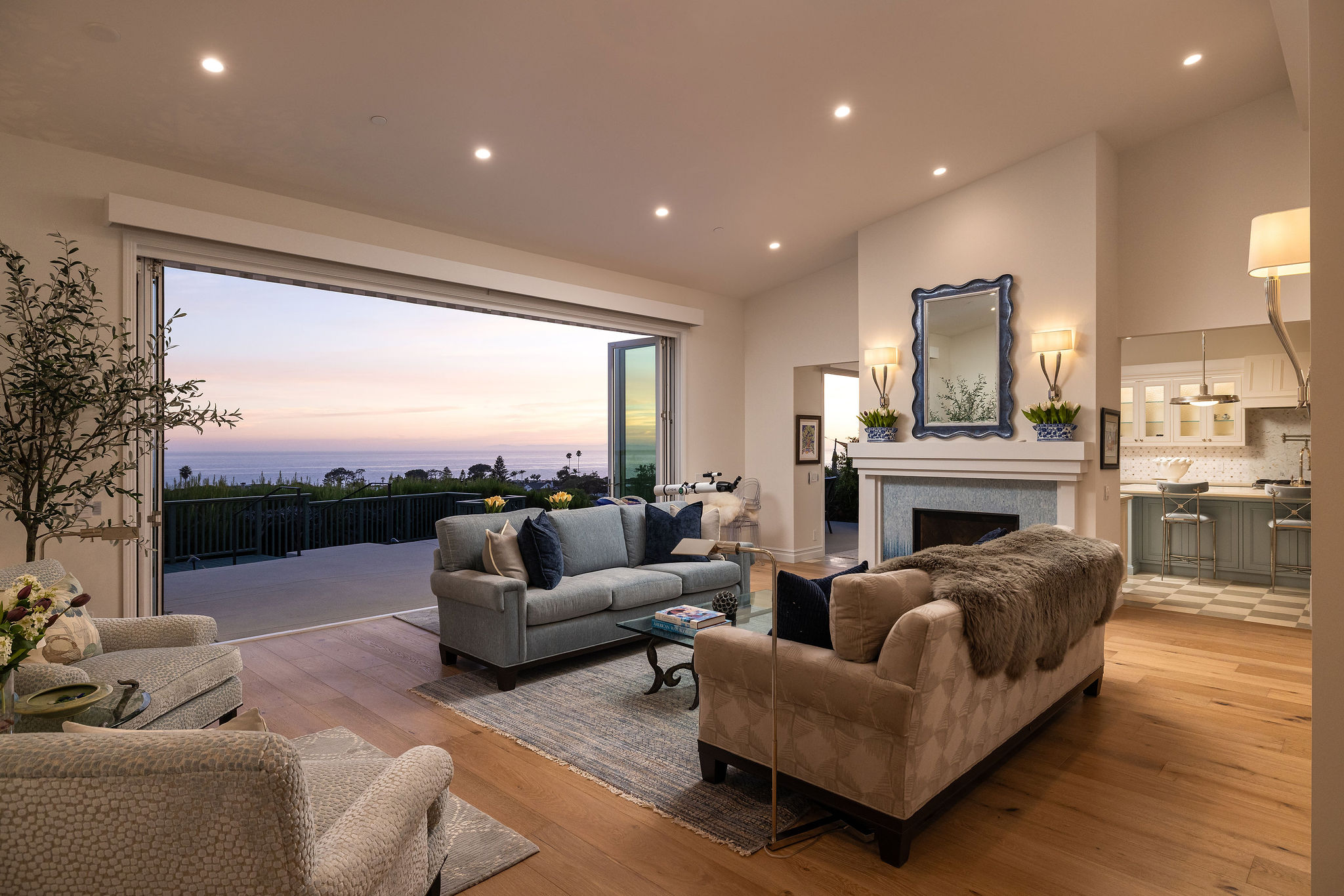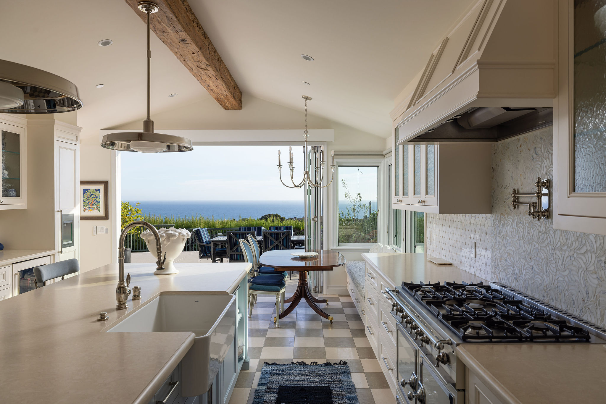 Completed in 2024, this single-level Cape Cod inspired residence is a celebration of biophilic design bringing light, nature, and tranquility into every space. With 3 bedrooms and 3 baths, the home seamlessly connects indoor luxury with the restorative power of the outdoors. Natural materials and organic textures ground the interiors. White oak flooring, limestone, and marble finishes are complemented by vaulted ceilings and expansive French doors. Accordion glass doors dissolve the boundary between inside and out, opening to a panoramic ocean-view patio where sun, sky, and sea become part of daily living. The chef s kitchen anchored by a La Cornue range, Sub-Zero refrigeration, walk-in prep pantry, and custom cabinetry flows effortlessly to the entertaining island, designed to gather and connect. The primary suite is a private sanctuary with sit-down ocean views, fireplace, his-and-hers closets, and a spa bath with soaking tub and rain shower head. A guest suite opens to a serene courtyard featuring a water element and lush landscaping, creating its own moment of retreat. Designed for entertaining, the outdoor space features a panoramic ocean-view patio complete with a pizza oven perfect for alfresco dining under the stars. Sustainable landscaping with native plants was carefully chosen for year-round color, while also attracting hummingbirds and butterflies, creating a vibrant and ever-changing natural setting. Additional highlights include a French Art Deco chandelier, biophilic architectural details throughout, smart electric shades, epoxy-finished garage, and a tankless water heating system. Set on a private, single-loaded street in Monarch Terrace, this home embodies elevated coastal living where modern design and nature exist in perfect harmony.