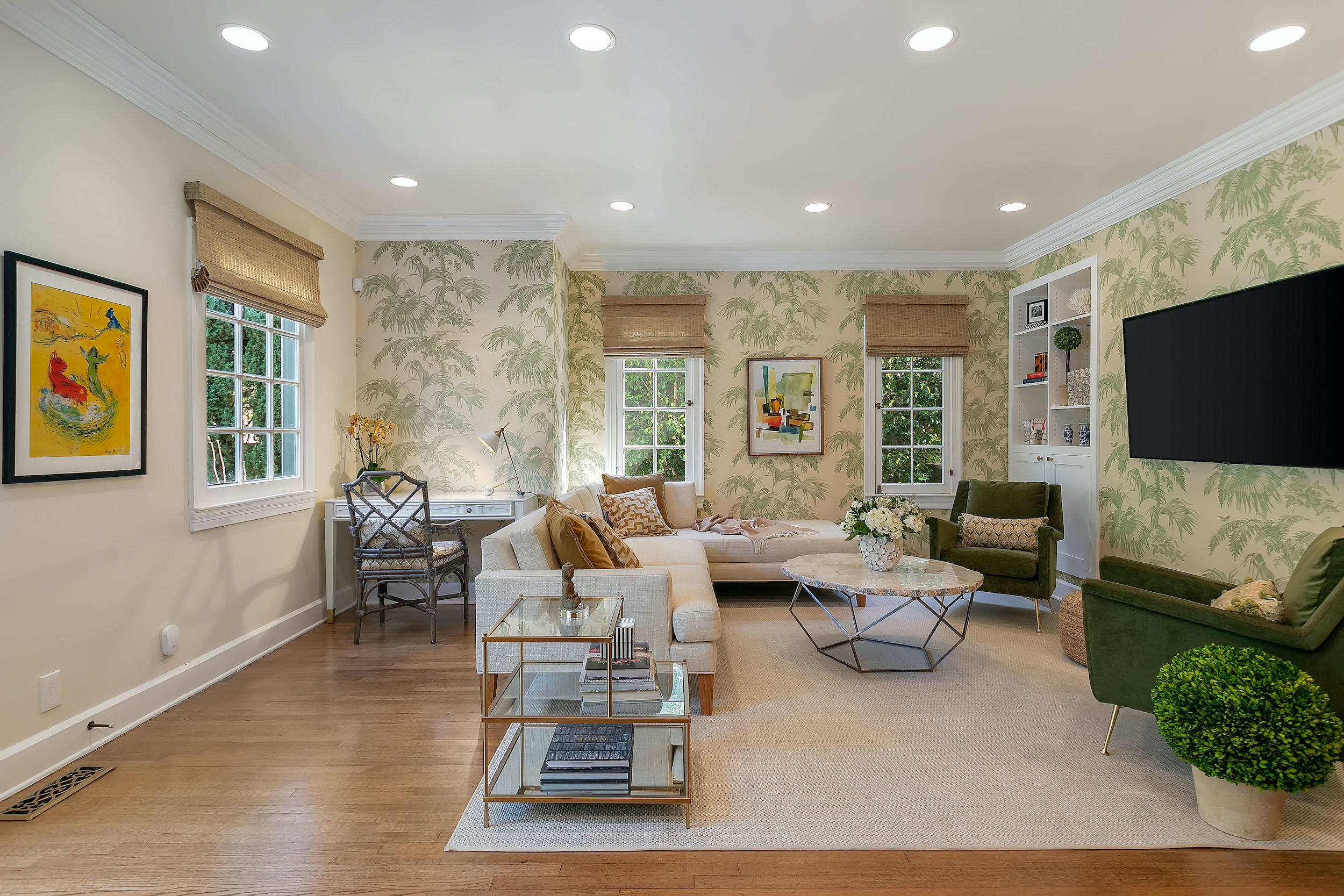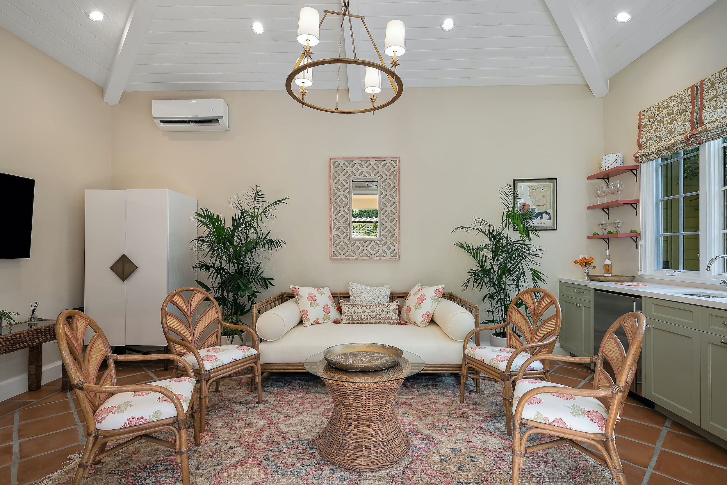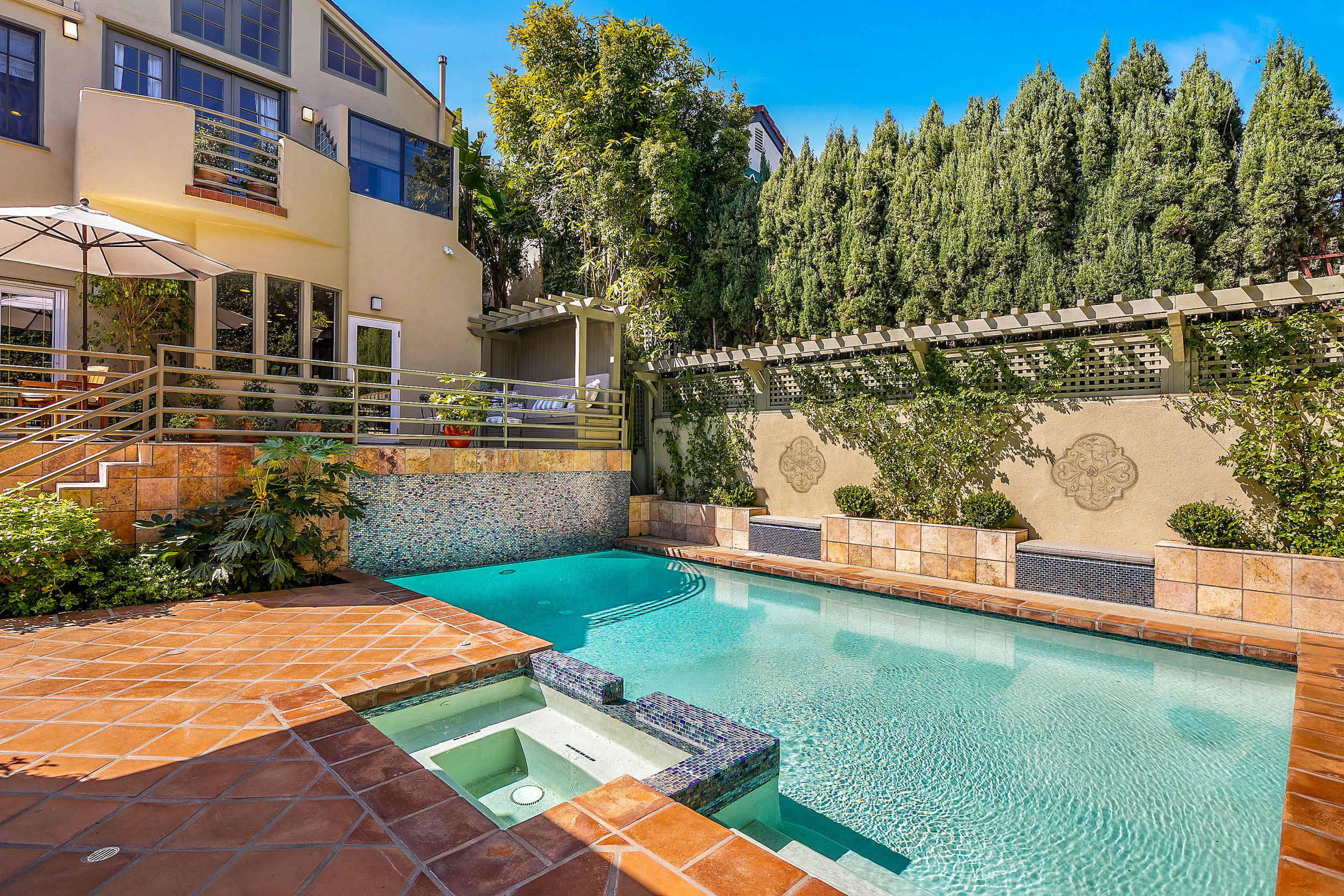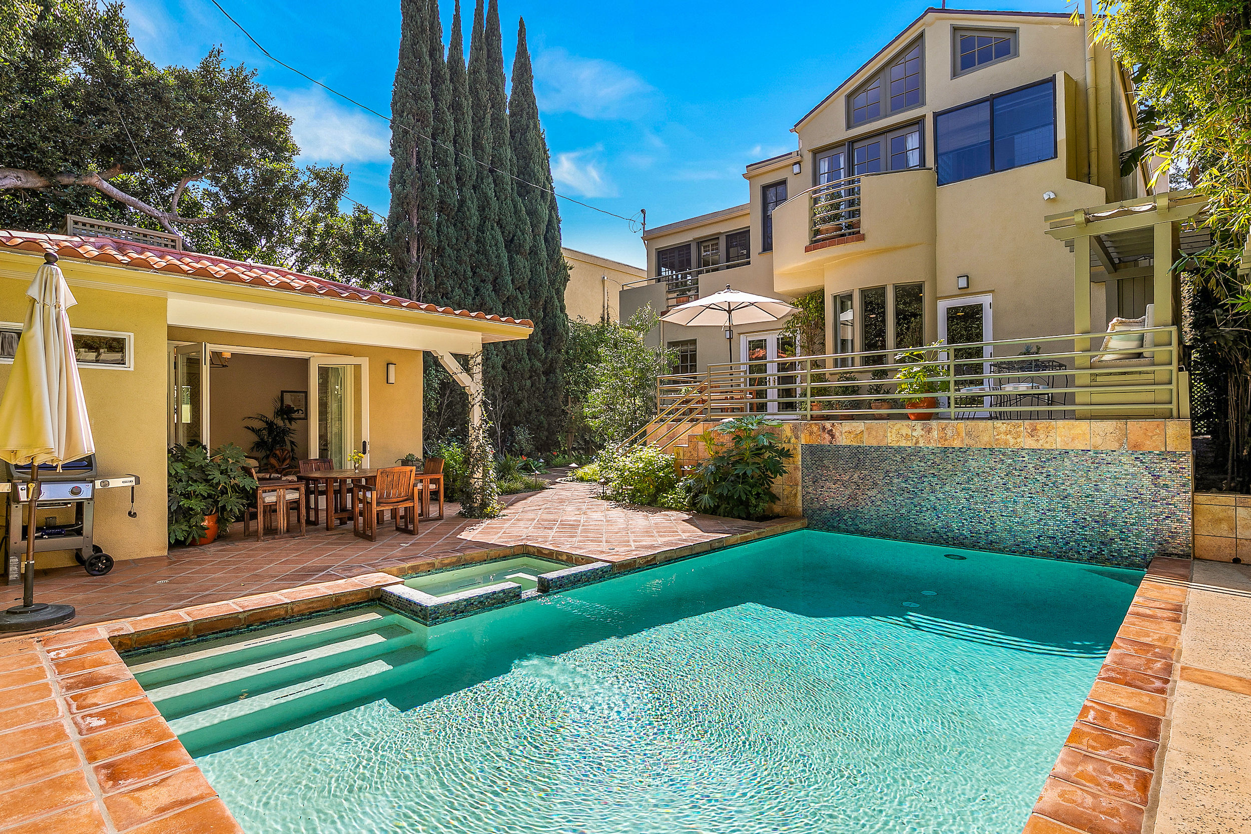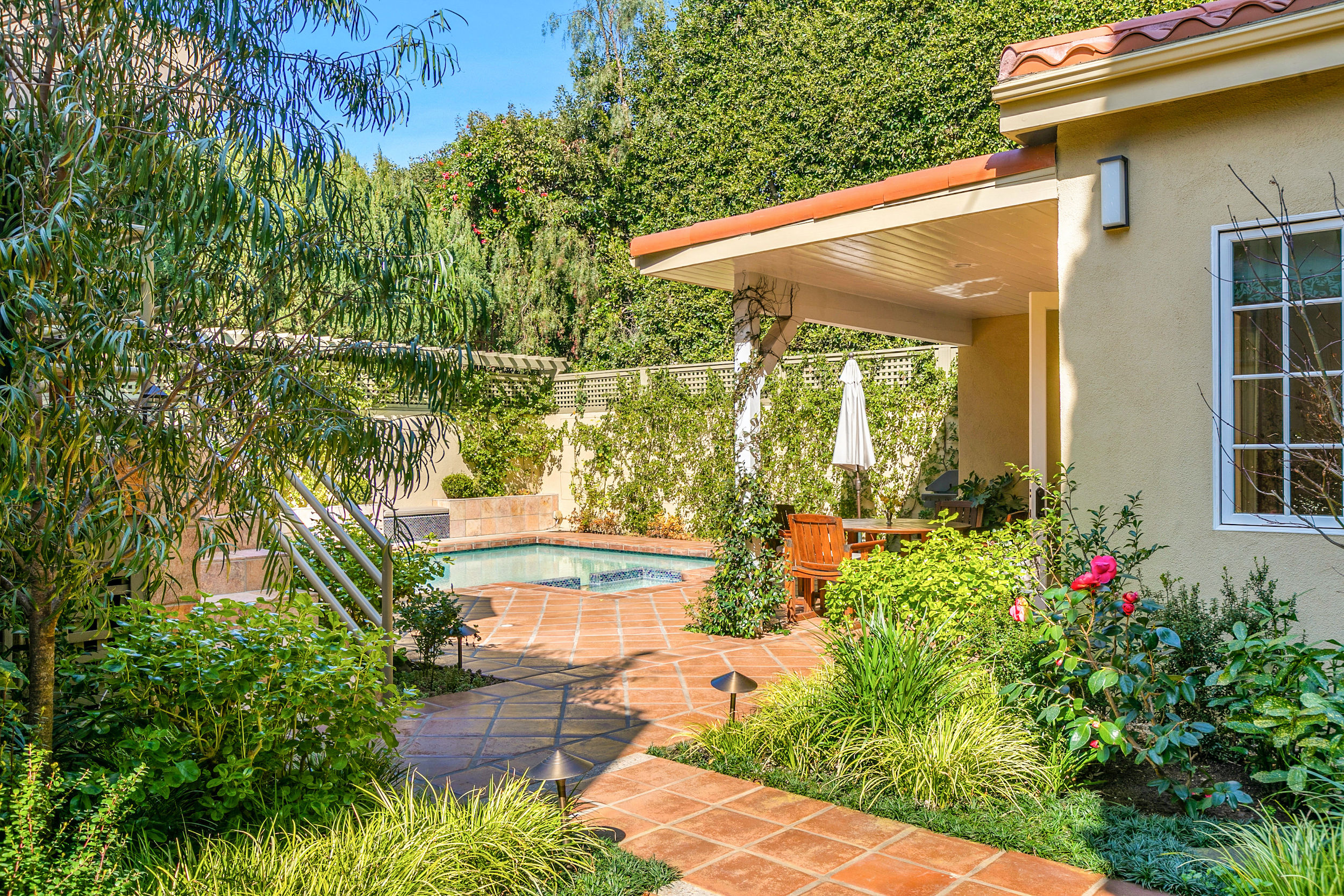 Pride of ownership in the Classic Brentwood Flats. Impeccably designed European-inspired move-in ready fully furnished home a short distance to Brentwood Country Mart, Brentwood Country Club, Sunday Farmer's Market, Caruso's Palisades Village, Santa Monica and the Ocean. Gated for security w/ parking for 3 and EV charger, enter to an expansive lush garden with peaceful sitting areas for spiritual reflection or large-scale entertaining. Enter to a flood of natural light and formal living room w/ designer interiors that invite a warm and embracing ambiance. Host w/ ease in a dining room for fourteen and fully equipped kitchen for the most discerning host or hostess. Rest easy in an oversized Master Suite w/ a lounge area, outdoor decks, oversized bath, walk-in closet and dedicated fitness area. Additionally enjoy a heated pool, spa & detached guest home with a full bath. Simply put, this special oasis "checks all the boxes". Long-term preferred. Call for short term rates. A must see!