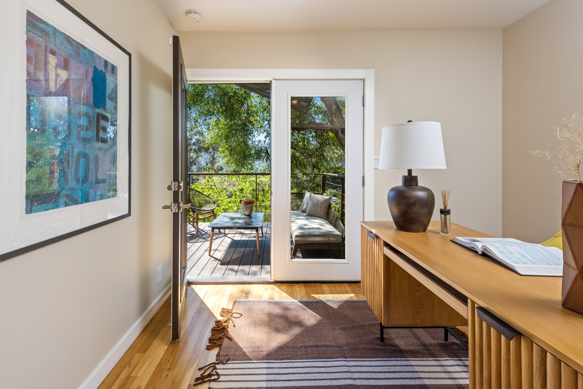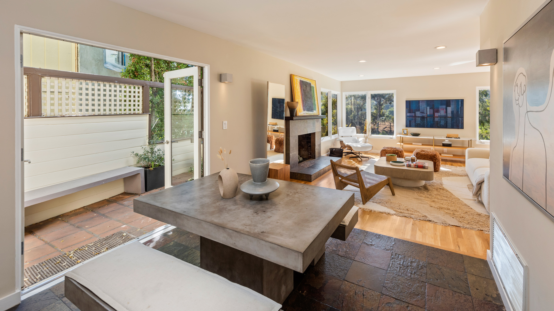 string(1473) "Stunning views! This turnkey Mid-Century home nestled in the Hollywood Hills spans 1,510 square feet, combining modern upgrades with timeless charm, creating a tranquil and stylish haven. The open-concept design seamlessly transitions from a welcoming living area, framed by large windows and centered around a cozy fireplace, creating an ideal setting for both relaxation and entertaining. The kitchen boasts elegant wood cabinetry and opens directly to a spacious outdoor area, perfect for any chef or grill enthusiast. Adjacent to the living room and office, a spacious outdoor area features a private deck with breathtaking views of the canyon and city, creating an idyllic setting for savoring morning coffee or hosting evening gatherings. The primary bedroom is spacious, while two additional bedrooms offer flexibility for an office, guest room, or creative space. The home's two full bathrooms are well-appointed and easily accessible from each room. Featuring a 2-car garage along with a separate workshop/storage room, this home offers practicality and versatility that you won't want to miss. Located just minutes from Griffith Park, major studios, hiking trails, and local shops and eateries, this home offers peaceful seclusion with convenient access to LA's vibrant scene. 3326 Charleston Way is an extremely rare find in a coveted neighborhood, an excellent opportunity for those seeking a retreat with mid-century charm, sweeping views, and modern comforts."