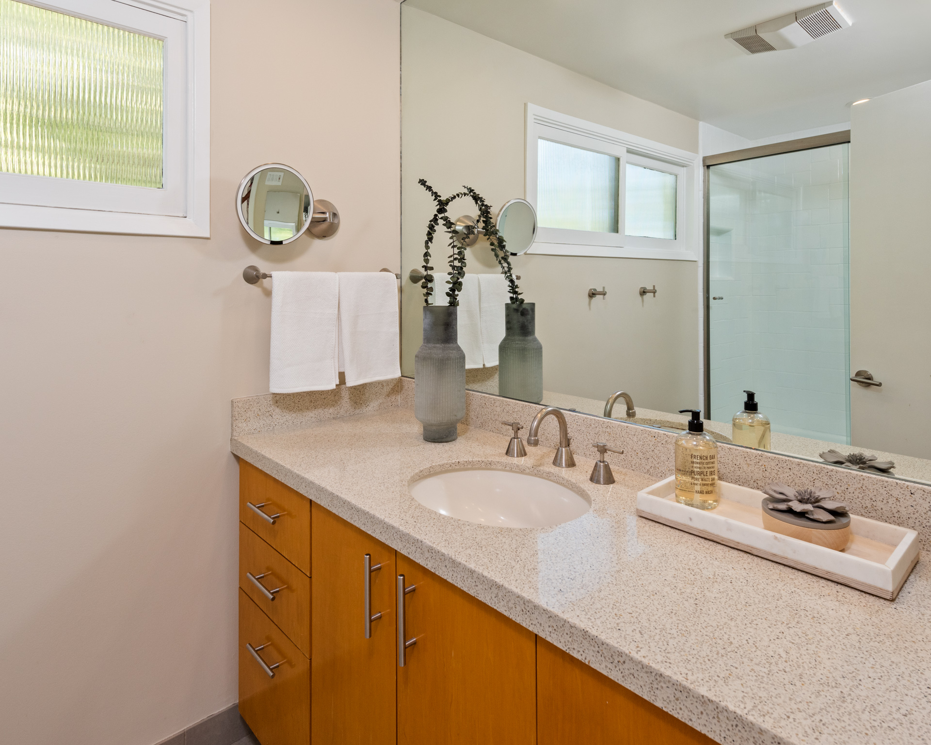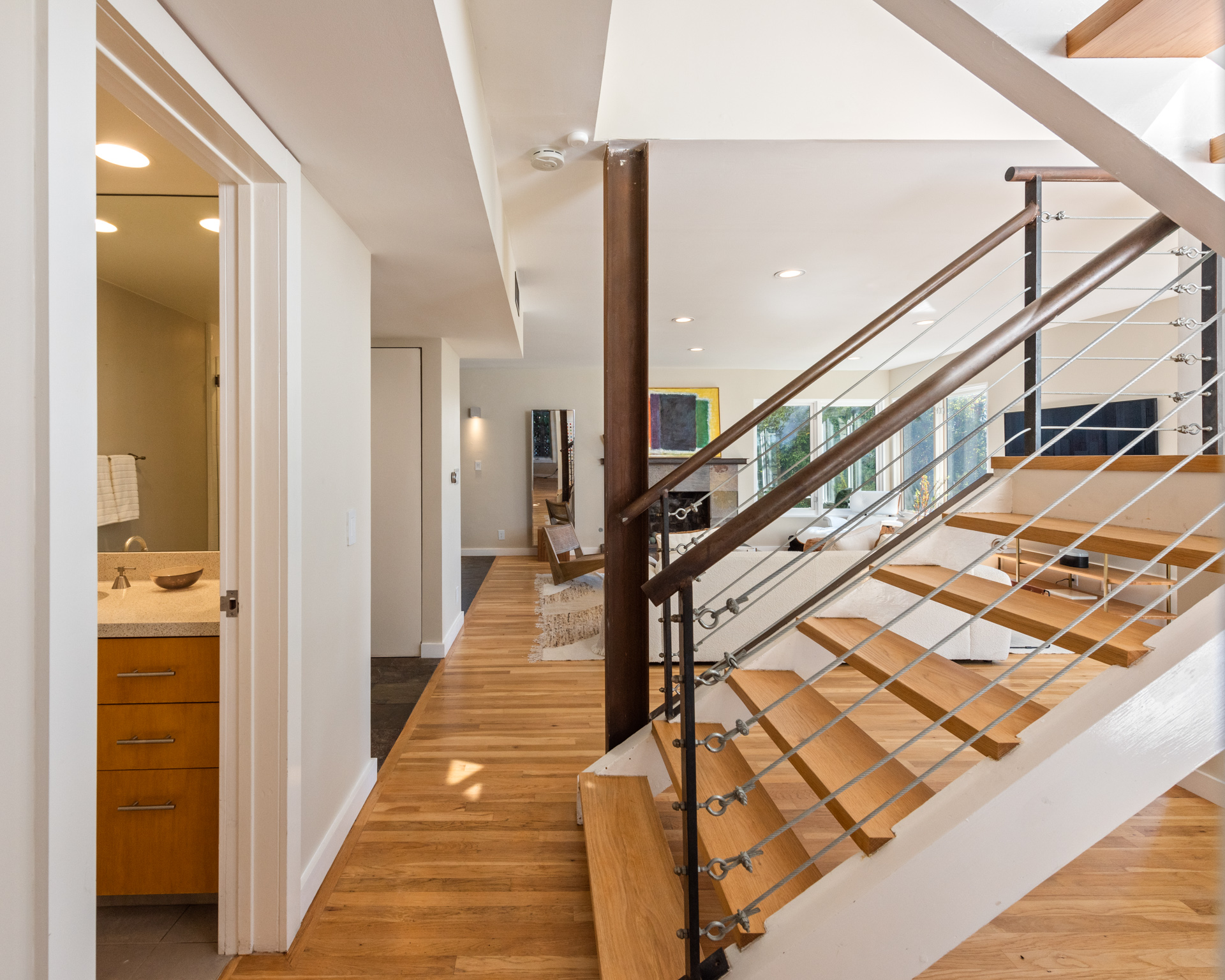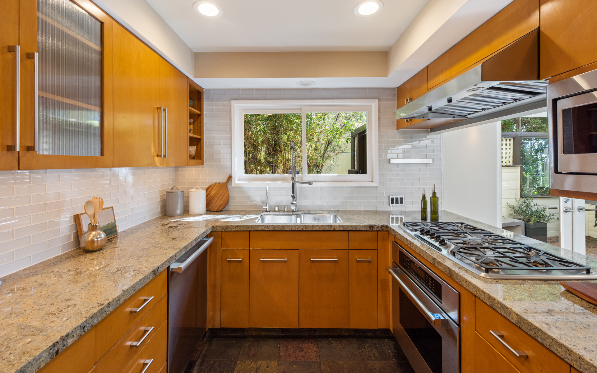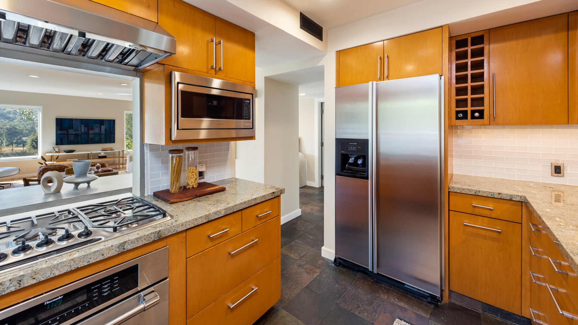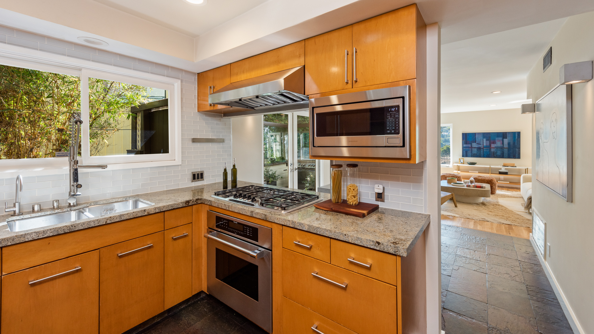 Stunning views! This turnkey Mid-Century home nestled in the Hollywood Hills spans 1,510 square feet, combining modern upgrades with timeless charm, creating a tranquil and stylish haven. The open-concept design seamlessly transitions from a welcoming living area, framed by large windows and centered around a cozy fireplace, creating an ideal setting for both relaxation and entertaining. The kitchen boasts elegant wood cabinetry and opens directly to a spacious outdoor area, perfect for any chef or grill enthusiast. Adjacent to the living room and office, a spacious outdoor area features a private deck with breathtaking views of the canyon and city, creating an idyllic setting for savoring morning coffee or hosting evening gatherings. The primary bedroom is spacious, while two additional bedrooms offer flexibility for an office, guest room, or creative space. The home's two full bathrooms are well-appointed and easily accessible from each room. Featuring a 2-car garage along with a separate workshop/storage room, this home offers practicality and versatility that you won't want to miss. Located just minutes from Griffith Park, major studios, hiking trails, and local shops and eateries, this home offers peaceful seclusion with convenient access to LA's vibrant scene. 3326 Charleston Way is an extremely rare find in a coveted neighborhood, an excellent opportunity for those seeking a retreat with mid-century charm, sweeping views, and modern comforts.