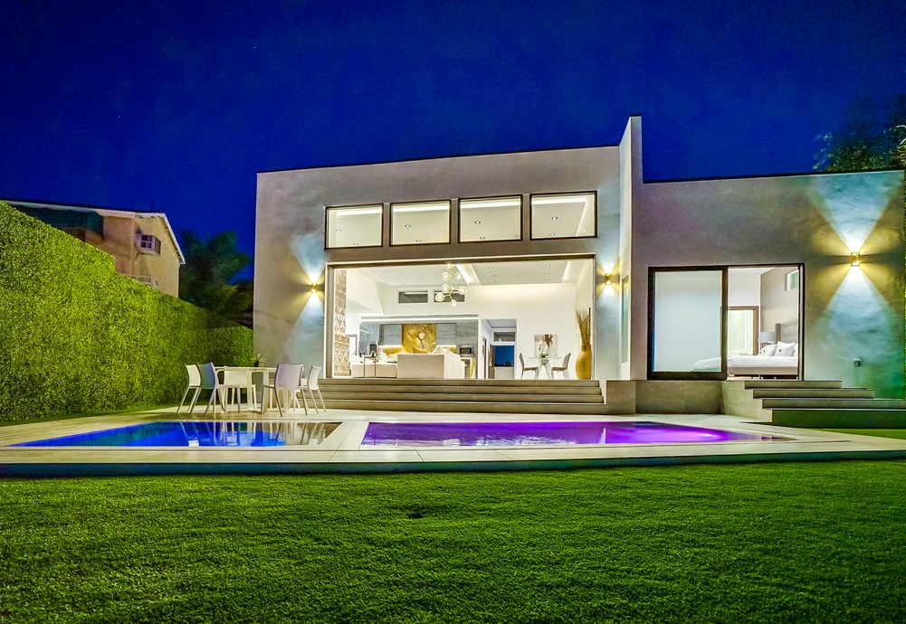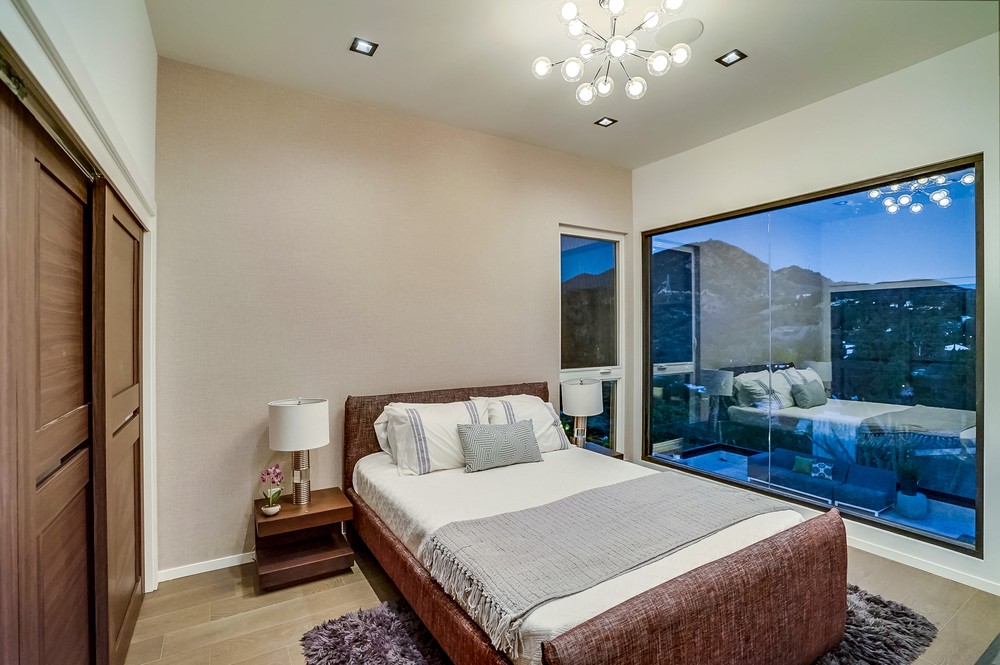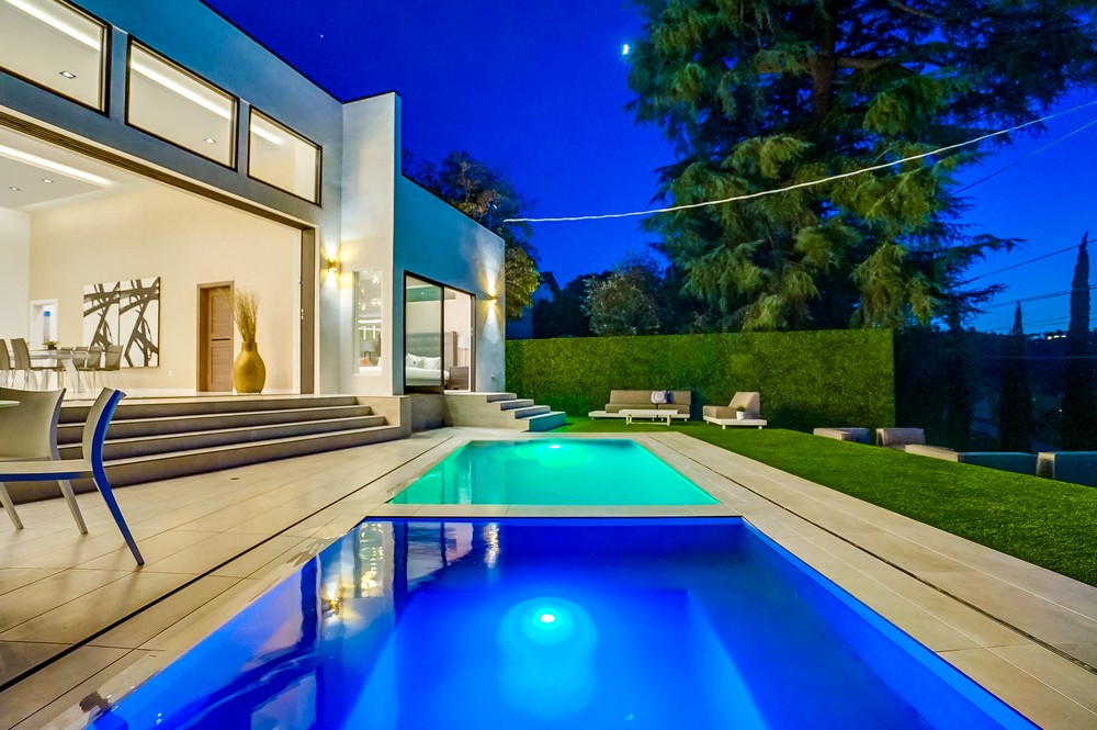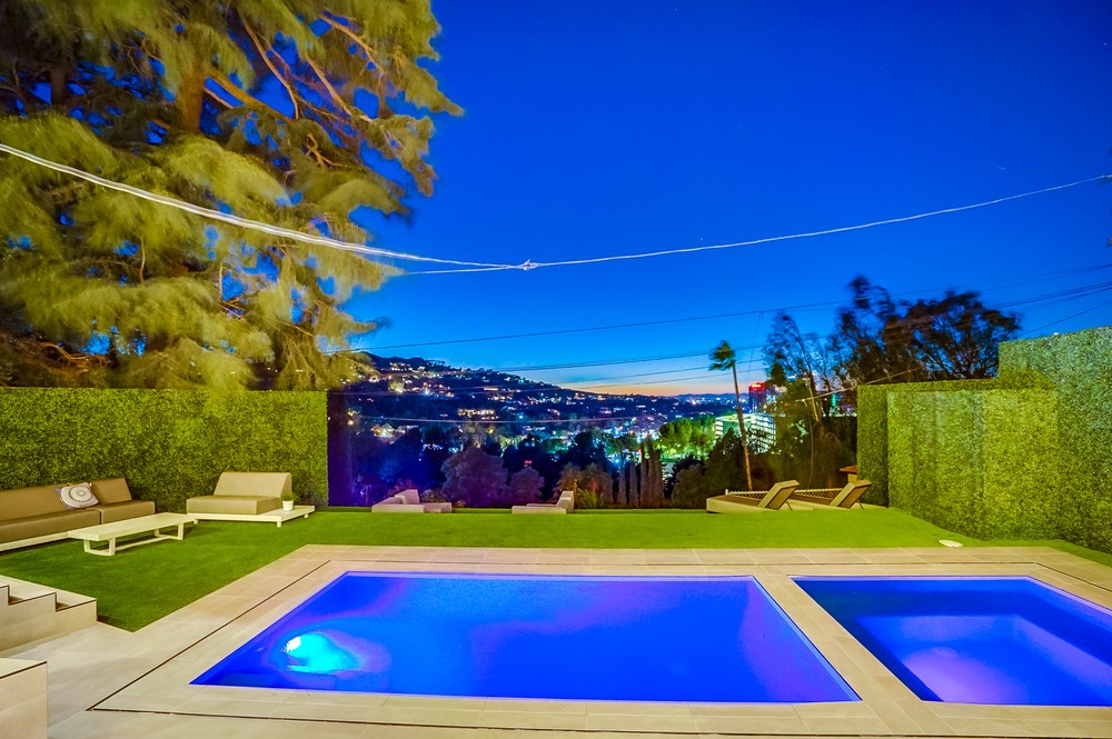 string(989) "Exquisitely & fully re-envisioned, a gated entry with 360 degree views welcomes you into this warm, modern, open concept home that immediately flows into quintessential LA indoor/outdoor living through 14 foot full height ceilings and oversized 20 ft sliding glass pocket doors - all leading to a large zero-edge pool, heated jacuzzi and green backyard oasis to take in over a glass of champagne! Absorb the elegant & romantic mood lighting and ambiance the property exudes at sunset while entertaining in your designer kitchen boasting a 19 foot bi-level marble island, stunning European lacquer cabinetry with inset LED lighting. Offering a convenient one-story floor plan, a master bedroom with views, grand walk-in closet, sumptuous soaking tub and large shower. Tile & hardwood floors, backlit mirrors, chandeliers, built-in surround sound, 2-car garage, all bedrooms with views - this property boasts breathtaking views perfect for romantic, evening relaxation with family & friends!"