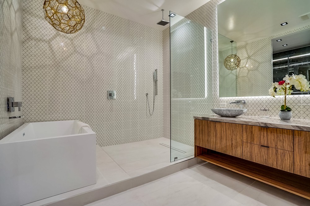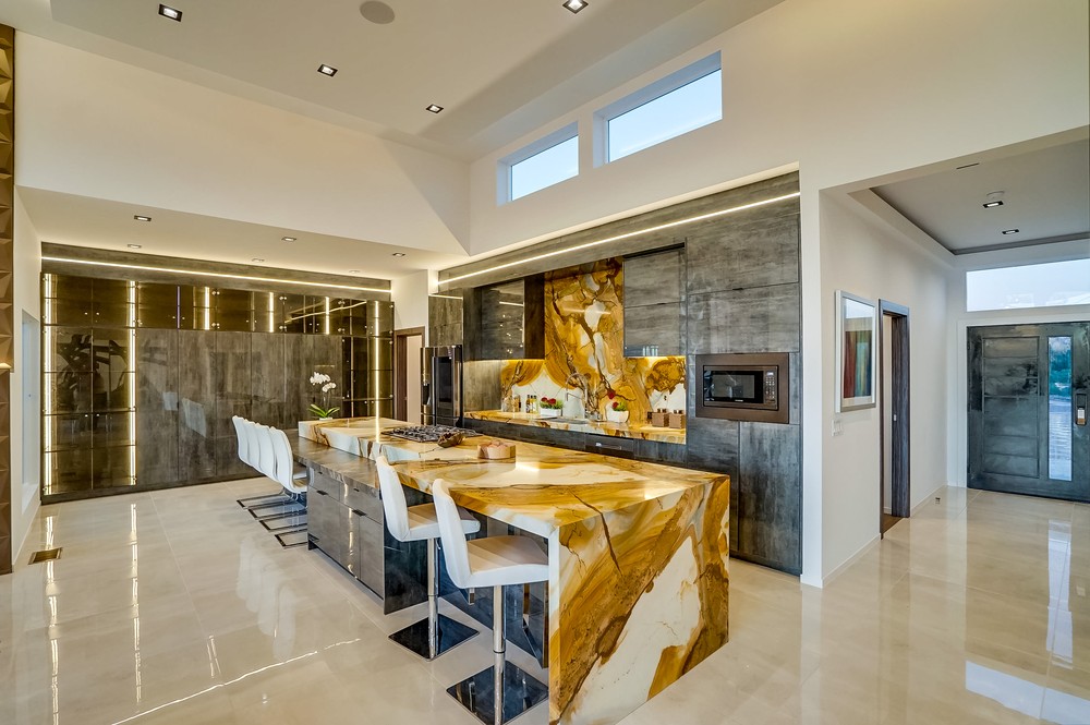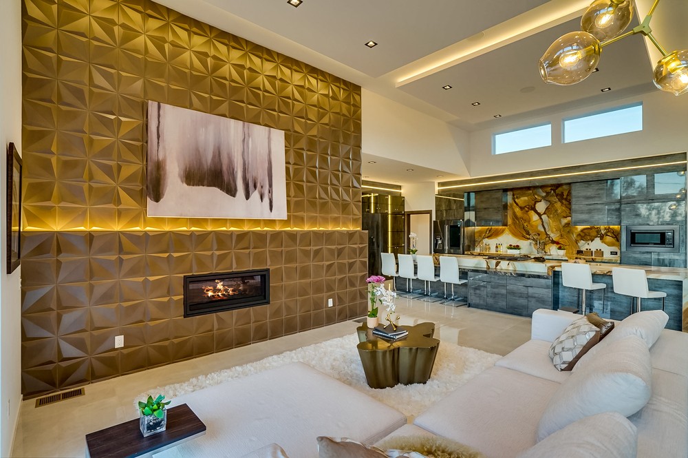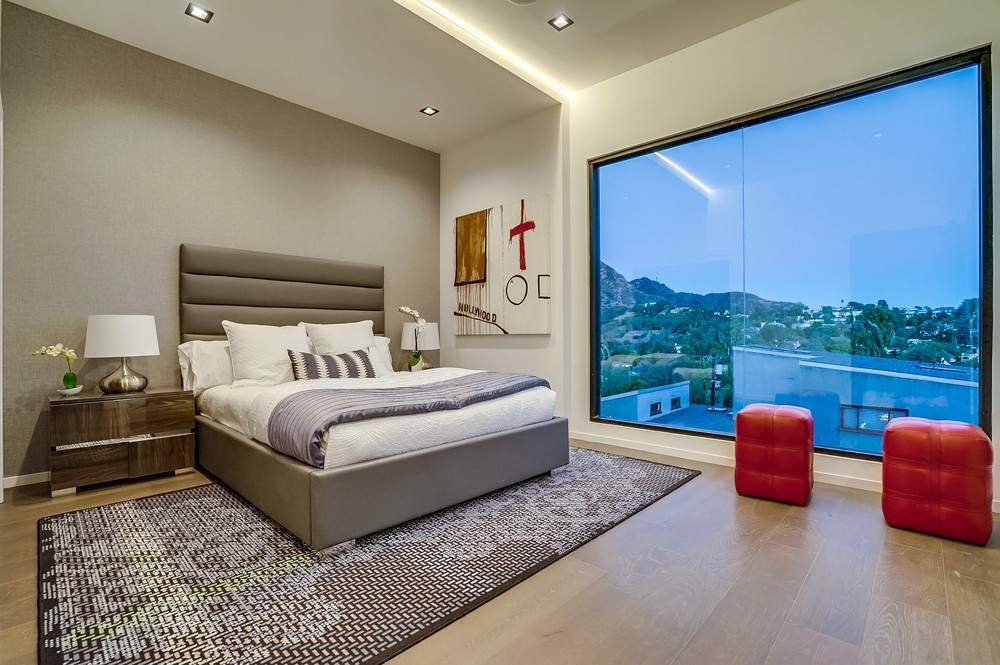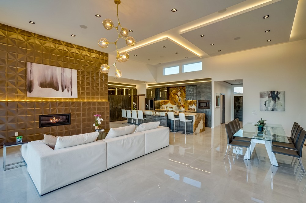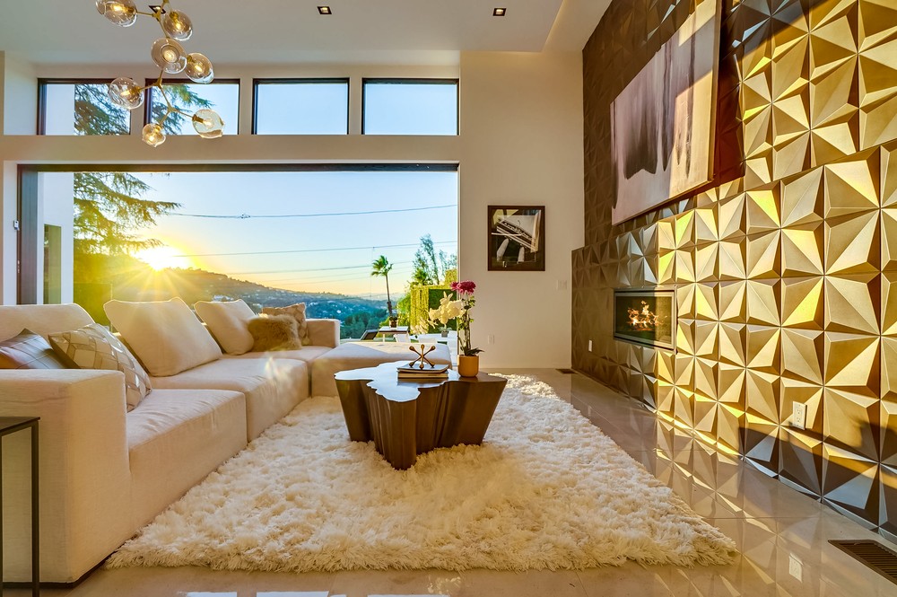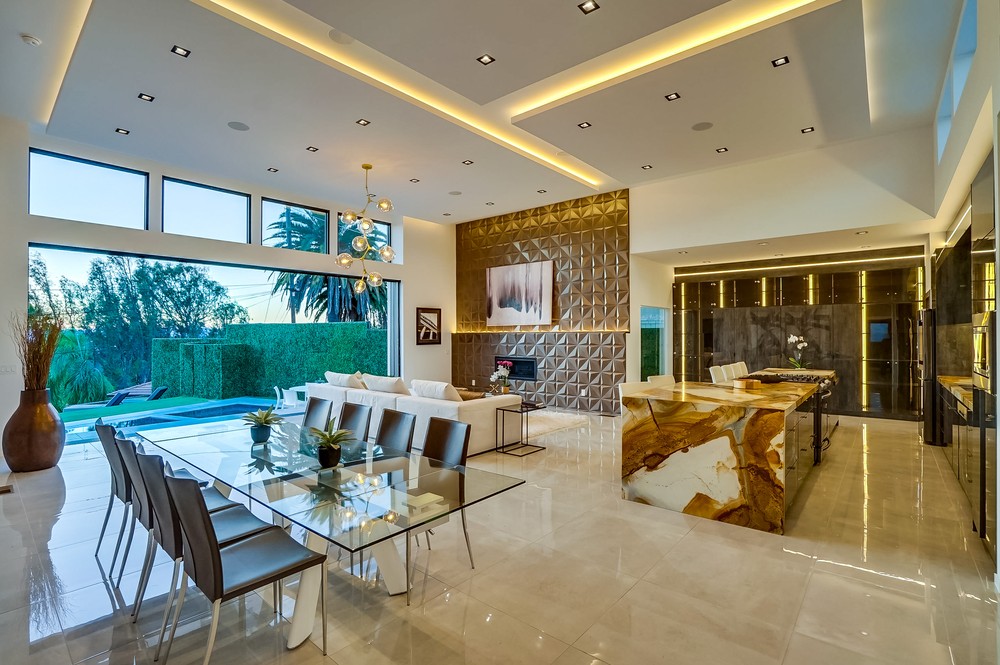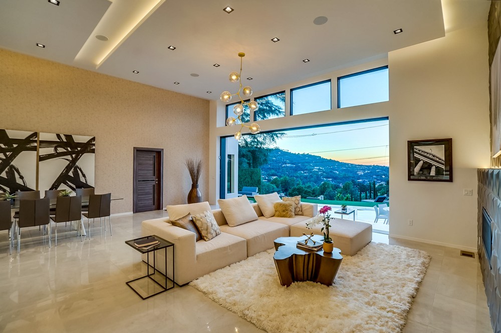 Exquisitely & fully re-envisioned, a gated entry with 360 degree views welcomes you into this warm, modern, open concept home that immediately flows into quintessential LA indoor/outdoor living through 14 foot full height ceilings and oversized 20 ft sliding glass pocket doors - all leading to a large zero-edge pool, heated jacuzzi and green backyard oasis to take in over a glass of champagne! Absorb the elegant & romantic mood lighting and ambiance the property exudes at sunset while entertaining in your designer kitchen boasting a 19 foot bi-level marble island, stunning European lacquer cabinetry with inset LED lighting. Offering a convenient one-story floor plan, a master bedroom with views, grand walk-in closet, sumptuous soaking tub and large shower. Tile & hardwood floors, backlit mirrors, chandeliers, built-in surround sound, 2-car garage, all bedrooms with views - this property boasts breathtaking views perfect for romantic, evening relaxation with family & friends!