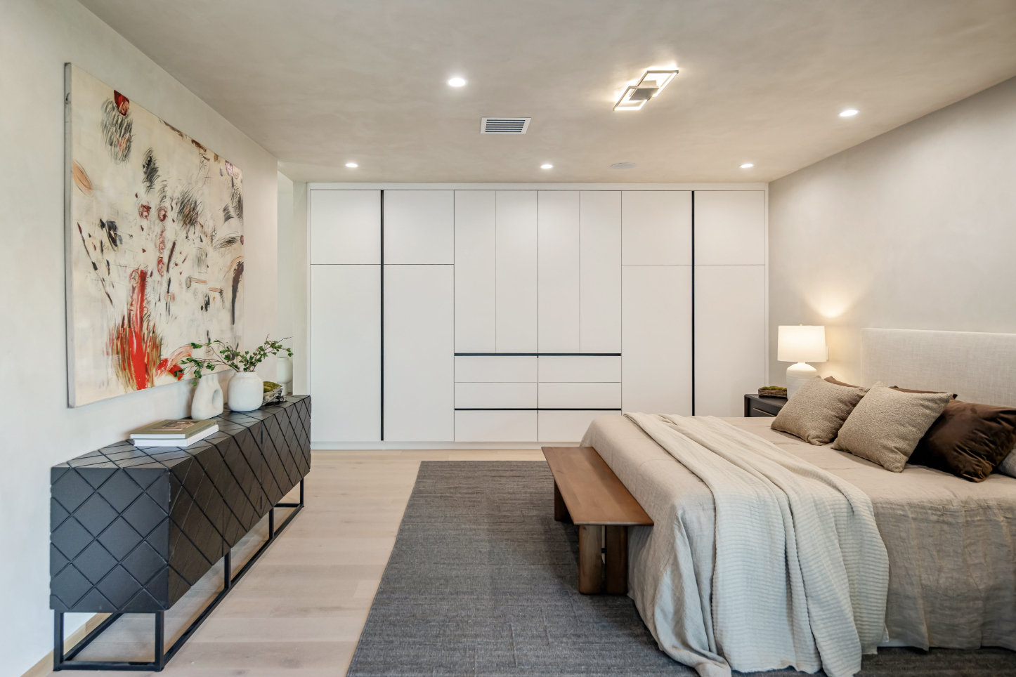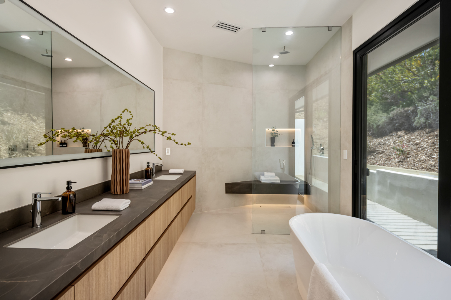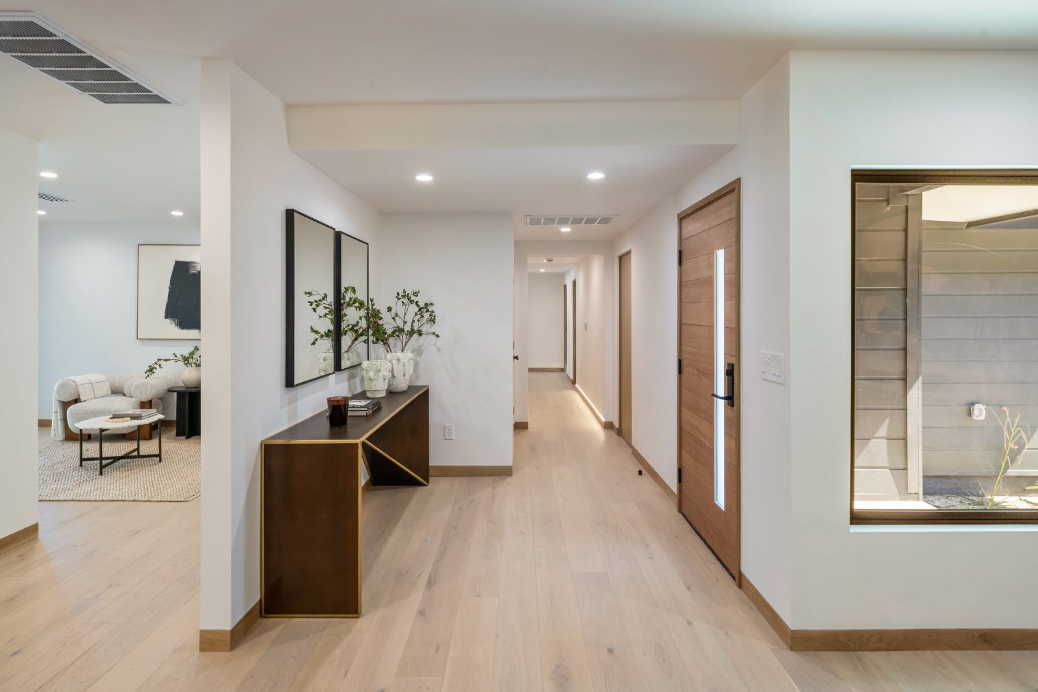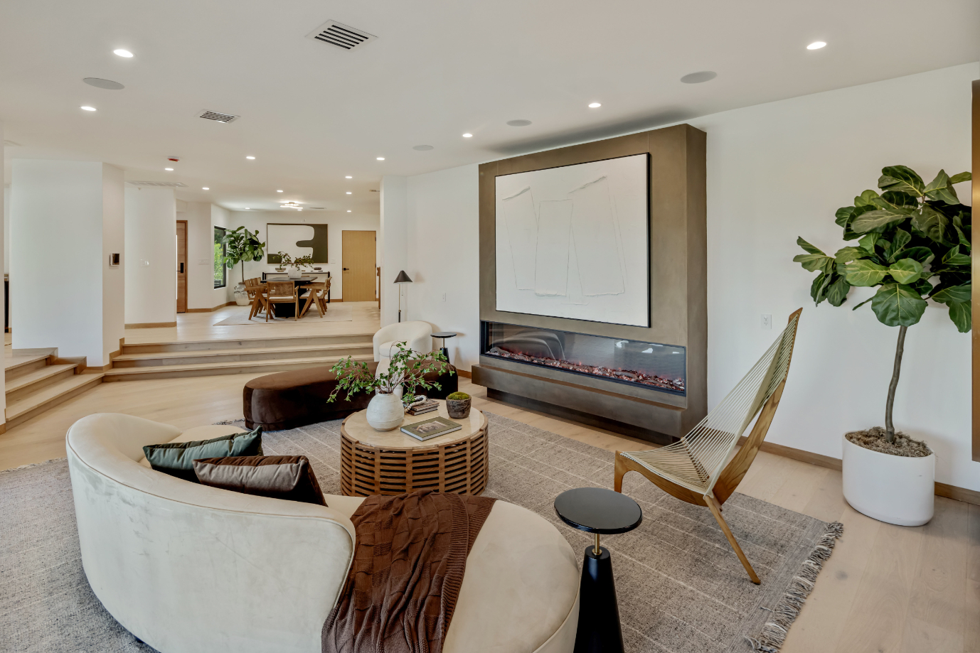 Experience an exceptionally remodeled 4-bedroom, 4-bathroom home in the coveted Sherman Oaks Hills a contemporary oasis that feels organic, bright, and effortlessly sophisticated. Thoughtfully redesigned down to the studs, the open-concept floor plan features wide-plank wood floors, custom finishes, and a seamless indoor/outdoor flow, highlighting the desired California lifestyle. At the heart of the home, a spacious chef's kitchen with oversized center island, custom cabinetry, and professional-grade appliances opens effortlessly to the dining and living areas, creating an inviting space for both everyday living and entertaining. Expansive glass doors lead to a private backyard retreat with an expansive covered patio, outdoor lounge area, al-fresco dining, and a resort-style pool framed by hillside vistas and the city lights below. Enhancing the outdoor experience is a fully built-out private kitchen, ideal for hosting a crowd, or intimate gatherings. The primary suite offers direct access to the backyard and includes a spa-like bath with soaking tub, dual vanities, and designer finishes. The landscaped and gated front yard provides additional privacy and curb appeal. Other highlights include a family room, dedicated laundry room, and attached two-car garage. Perfectly situated just minutes to the Westside, Mulholland's private school row, and within the desirable Roscomare Road Elementary district, this home blends modern luxury with convenience in one of Sherman Oaks' most sought-after settings.