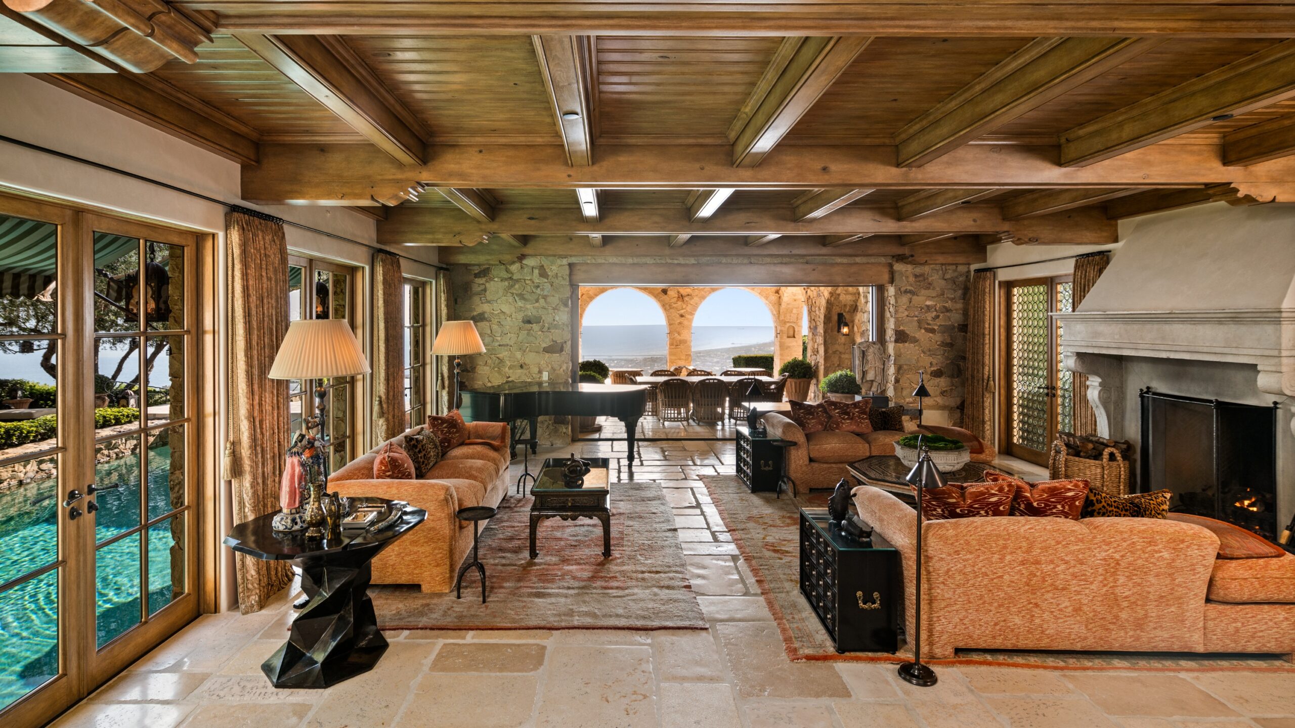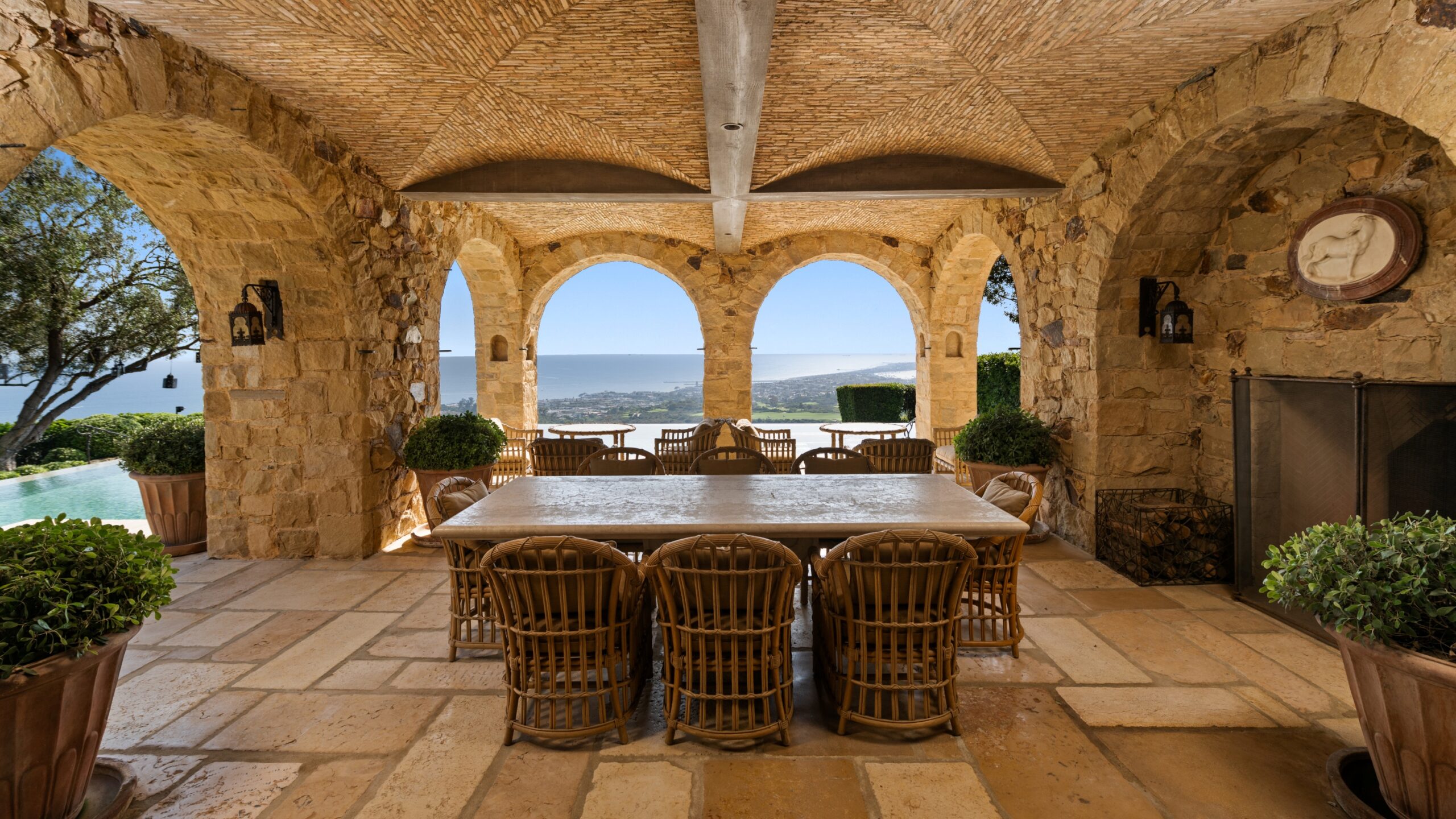 Positioned within the ultra-exclusive, guard-gated enclave of Pelican Crest, this unparalleled legacy estate once featured in Architectural Digest is a rare offering of architectural significance, timeless design, and world-class craftsmanship. Conceived by internationally renowned architect Richard Landry, with interiors curated by celebrated designer Craig Wright, and brought to life by esteemed builder John Fenton, this residence sets a new standard for coastal luxury. Encompassing approximately 13,206 square feet on an ultra-premier ~half-acre lot, this landmark estate captures unobstructed panoramic views stretching across the Pacific Ocean, Catalina Island, Newport Harbor, Pelican Hill Golf Course, and the exceptional city lights along the California coastline. Among the finest parcels ever to come to market, this estate offers an unmatched sense of place and exclusivity. Evoking the ambiance of a secluded Tuscan villa, the grounds are richly adorned by lush landscaping, tranquil pathways, and mature olive and melaleuca trees, all enhanced by atmospheric lighting and expansive entertainment terraces. A serene entry koi pond, detached guest house, and a 16th-century Venetian fountain enrich the sense of quiet opulence. Inside, the home reveals six bedrooms, six full baths, and three powder rooms, with soaring ceilings, grand-scale living areas, and seamless indoor-outdoor flow. The private lower level offers an immersive experience like no other: a vintage-inspired theater with hand-painted ceiling murals, crystal lighting, a speakeasy bar with glass walls peering into the pool, a temperature-controlled wine cellar, full gym, massage room, steam shower, and lounge areas that echo the mood of an elite members-only club. Anchoring the estate is a multi-level, infinity-edge pool clad in bespoke Italian glass mosaics, a true centerpiece. A covered loggia offers an open-air living room with breathtaking coastal views, ideal for year-round enjoyment. Created for grand-scale entertaining and intimate everyday living alike, this estate is the crown jewel of Newport Coast destined for the most discerning buyer. With immediate access to Pelican Hill Golf Course & Resort, world-class shopping, award-winning schools, and the finest of coastal Southern California living, this is more than a residence, it’s a once in a lifetime legacy offering.