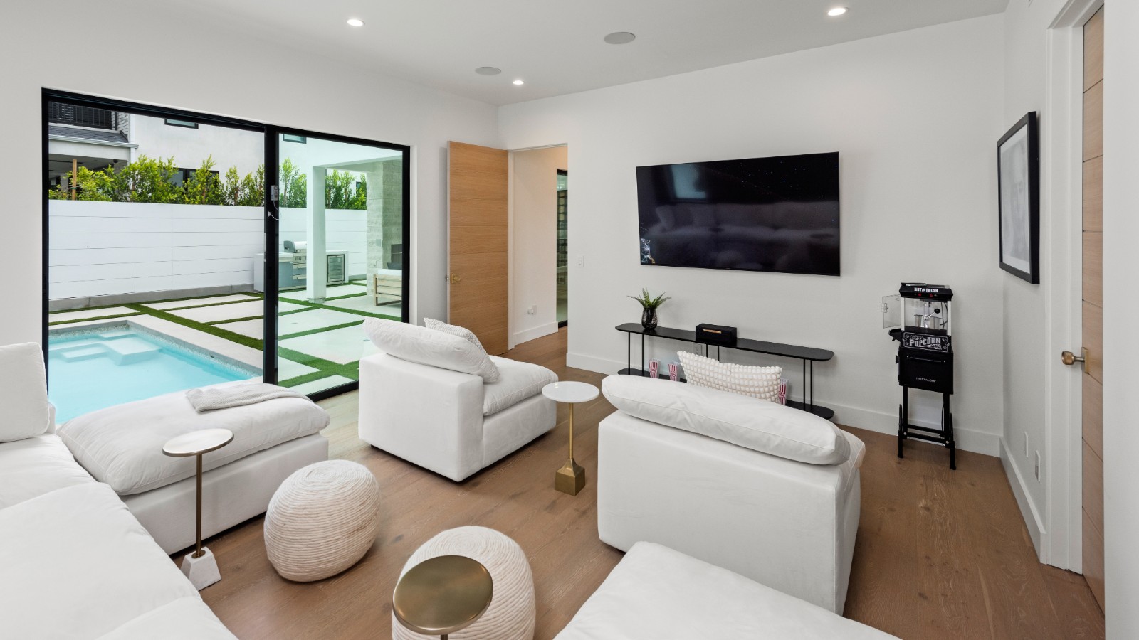 Welcome to an exquisite modern residence in the heart of Studio City. This luxurious home spans a generous 4,620 square feet, including both living space and a covered patio. Offering a perfect blend of elegance and contemporary design with 5 spacious bedrooms, 5 full bathrooms, plus an additional powder bath for guests. The primary suite boasts a beautiful balcony providing a tranquil outdoor retreat. The gourmet kitchen is a chef's dream, equipped with top-of-the-line Bertazzoni appliances and ample counter space. Step outside to find a beautiful pool and a comfortable seating area complete with a fireplace that is perfect for relaxation and entertainment. The stylish glass wine display furthers the sophistication to the living area, while the expansive walk-in closet with an island offers ample space for your wardrobe and accessories. Additional fireplaces in the living room and primary bedroom add warmth and ambiance. An outdoor BBQ setup is ideal for hosting gatherings and summer cookouts. Additionally, a dedicated office space makes working from home or managing household tasks convenient and efficient. This home is designed for those who appreciate luxury and functionality, with seamless indoor and outdoor living spaces perfect for entertaining or enjoying quiet family moments. Don't miss the opportunity to make 3696 Goodland Ave your new home.