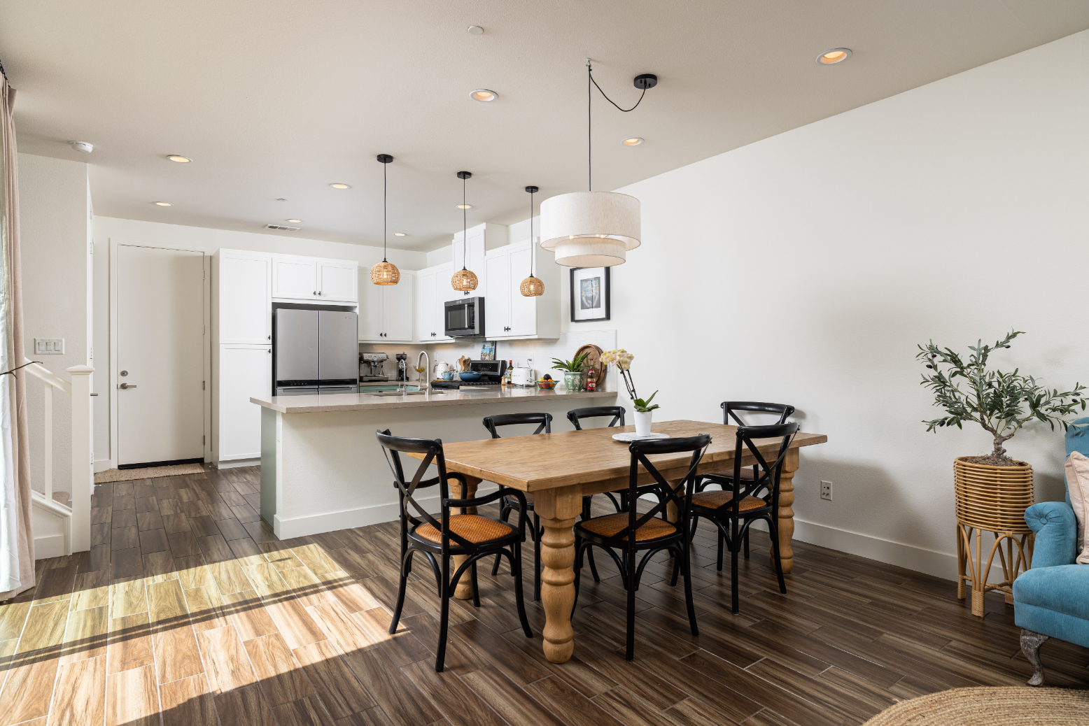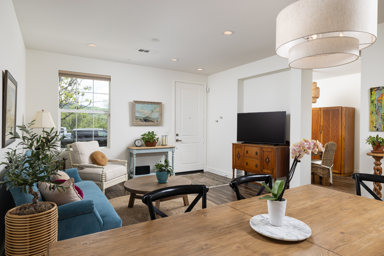 Luxury Living with Panoramic Views in Rancho Mission Viejo Welcome to 38 Gallo — a rare, end-unit townhome offering sweeping views of the nature reserve and rolling hills from both levels. This meticulously upgraded 3-bedroom, 2.5-bath residence with a versatile loft combines elevated design with thoughtful functionality in one of Rancho Mission Viejo’s most desirable locations. Step into an open-concept living space where the fully upgraded kitchen shines with newly painted cabinetry, quartz countertops, a new KitchenAid oven/range and microwave, and convenient roll-out shelving. The adjacent dining and living areas are framed by new drapery and screens, creating an inviting atmosphere for both relaxation and entertaining. Retreat to the luxurious primary suite featuring new quartz counters, dual sinks, and updated faucets, along with new window treatments throughout the home. Additional highlights include new upstairs luxury vinyl flooring, upgraded LG washer/dryer, new carpet on the stairs and bedrooms, and a chic Pottery Barn powder room vanity with designer lighting. Major system upgrades include a new Rinnai 199 BTU tankless water heater and water softener system. The attached 2-car garage adds convenience to this exceptional home. Enjoy resort-style amenities exclusive to Rancho Mission Viejo residents—including pools, fitness centers, community farms, putting greens, parks, pickleball courts, and more. Just steps from the Sendero Clubhouse, Sendero Farm, and scenic trails, 38 Gallo offers a lifestyle of ease, elegance, and endless outdoor enjoyment.