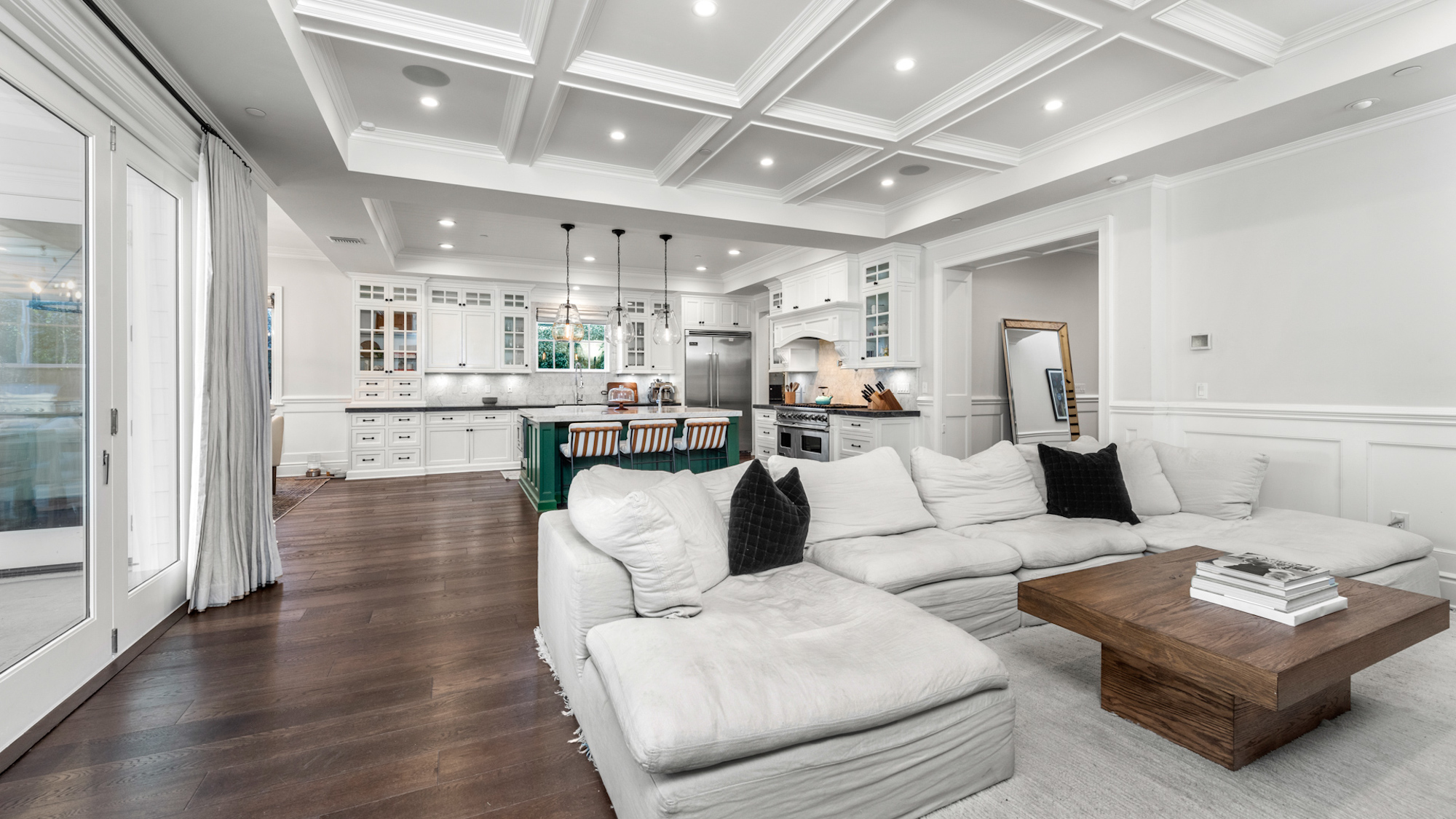string(1227) "Situated in Prime Studio City, south of Ventura Blvd on the end of a quiet cul-de-sac, this one of a kind East Coast Traditional home boasts 5 beds, 6 baths with over 4,700sf of open spaces and an overabundance of indoor/outdoor entertainment living. Two-story entry with soaring ceilings, formal living and dining room, state of the art chef's kitchen with an oversized island, top of the line appliances, large butler's pantry, and spacious breakfast area right off of the living room and bonus room perfect for a playroom, gym, or entertainment space. The main living space sliders disappear and open to the ultra private, expansive, serene and lush backyard featuring a sparkling pool with a waterfall and jacuzzi, large covered patio with dining, seating area, fire pit and built-in BBQ kitchen, making this your dream oasis. The grand owner's suite features a fireplace, walk-in closet and resort-like bathroom with a large balcony overlooking the lush greenery in the backyard. All guest bedrooms are en-suite with large walk-in closets (4 upstairs, 1 on main level). Hidden storage area, mudroom and two car garage. Moments away from award winning Carpenter Elementary School, shops, best dining and the Farmers Market."