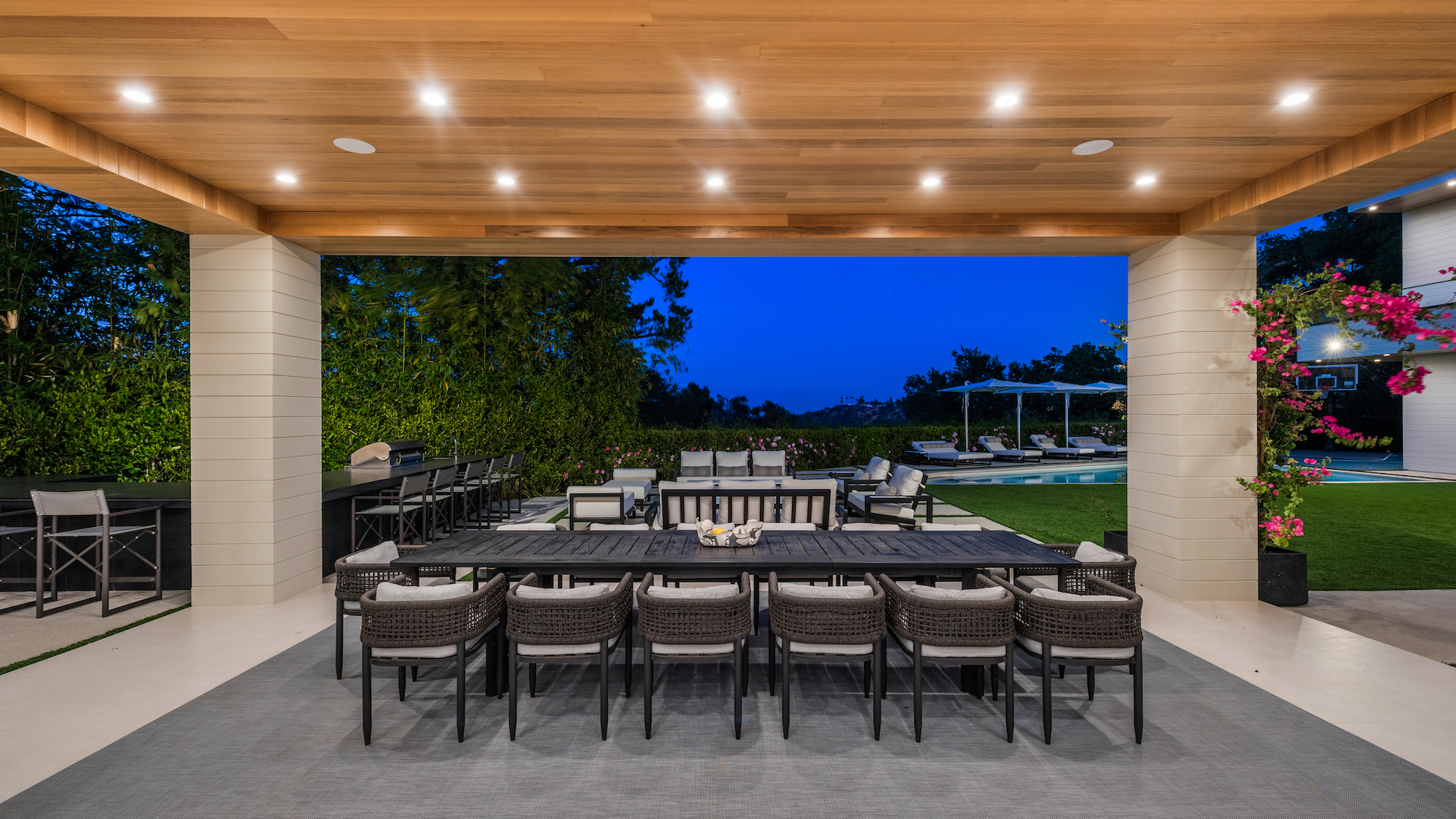 string(1000) "Behind private gates in the coveted Royal Oaks of Encino lies this newly constructed contemporary masterpiece w/ unobstructed views. Fastidiously crafted, this entertainer's dream home seamlessly fuses indoor & outdoor living all throughout. Grand entry welcomes you to 12,000 sqft of luxury w/ soaring ceilings, custom designer finishes, & a remarkably open floor plan. Massive glass pocket doors surround all entertaining areas, bring in natural light & open to the backyard oasis. Enjoy the pool & spa, shoot hoops at the basketball court, have a cookout at outdoor kitchenette w/ bbq & bar seating, & cozy up to the fire pit. Upstairs, you are greeted by a family room w/ balcony & oversized ensuite bedrooms. Primary retreat showcases unparalleled vistas, fireplace, balcony, dual walk-in closets, & a bathroom the Ritz-Carlton would envy. Additional top notch amenities include 1,000 sqft guest house, bar w/ wine cellar, theater, gym, office, rooftop, smart home, laundry room, & 3 car garage."