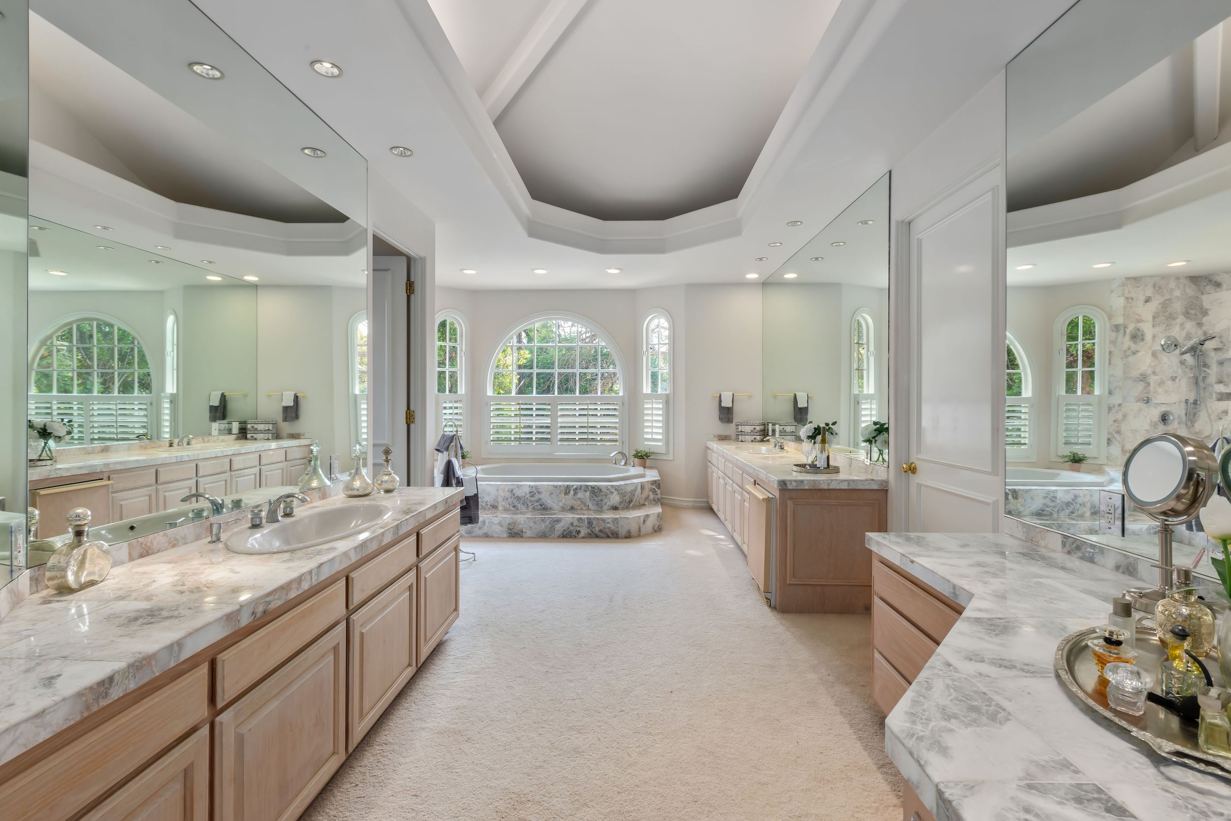string(824) "Incredible double height interior ceiling volume is throughout this grandly-sized Tennis Court estate located in desirable Silver Triangle near best restaurant & retail destinations. Over one half acre lot size -- one of the areas absolute largest, allowing it to feature the spacious Main Residence, Pool & gardens, 2 Br/2Ba Guest House plus the court. Large gathering spaces include double width hallways that lead to family lounges or homework study areas near the accompanying bedroom suites. Enormous Game & Media Room overlooks Pool and lounge firepit terrace. Fully independent Guest House with Kitchen, Liv Rm plus 2 sleeping suites, overlooks Tennis Court and just-finished reconstruction /expansion. Carpenter School proximity and beautiful walk streets in neighborhood create a rare offering for the value minded."