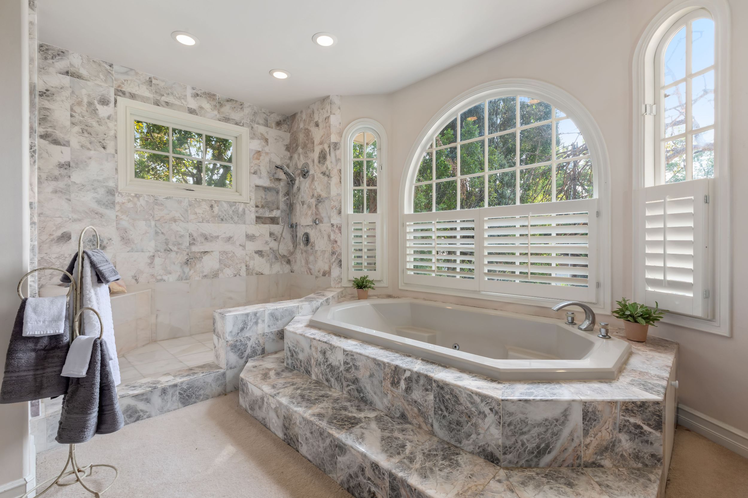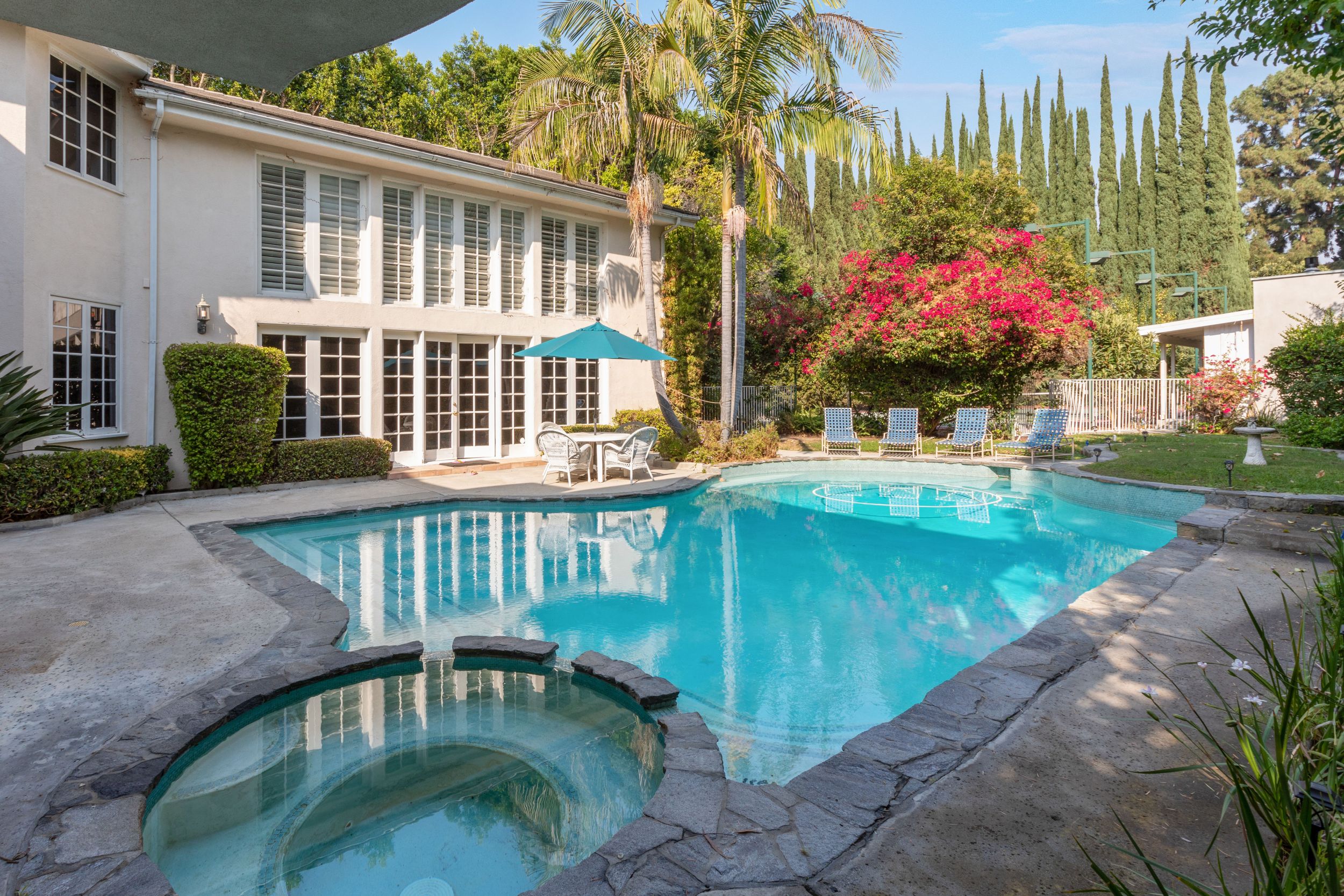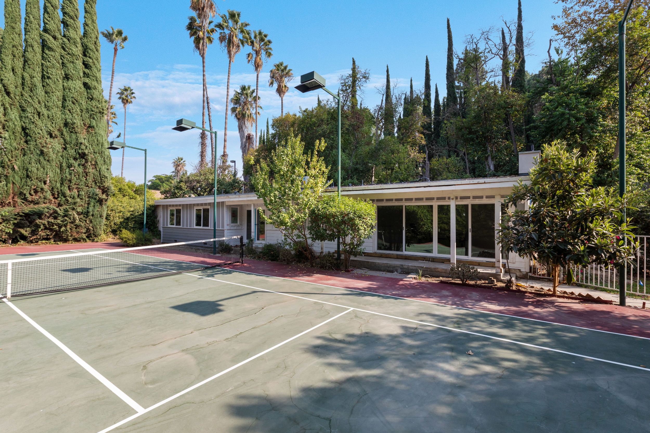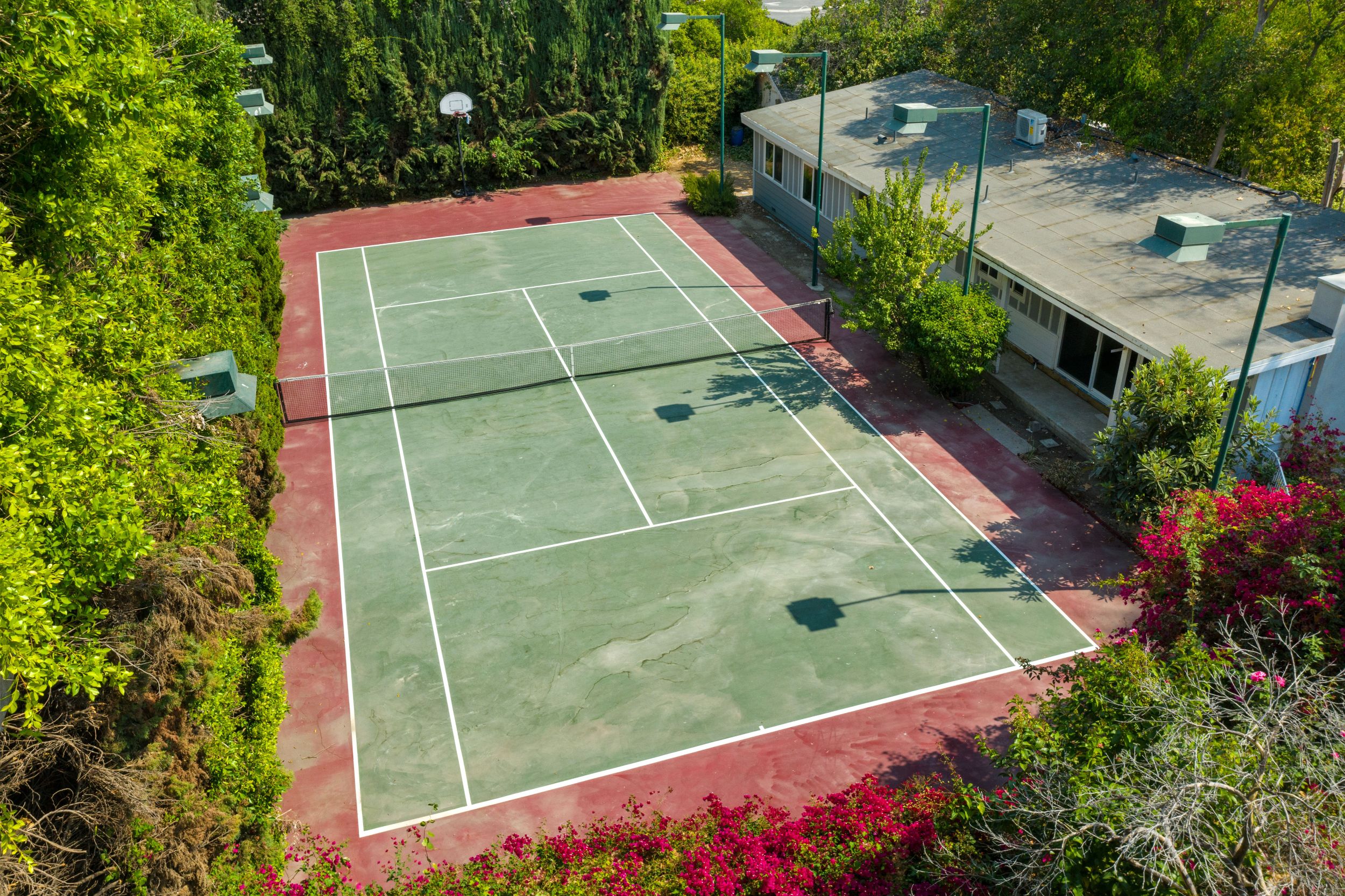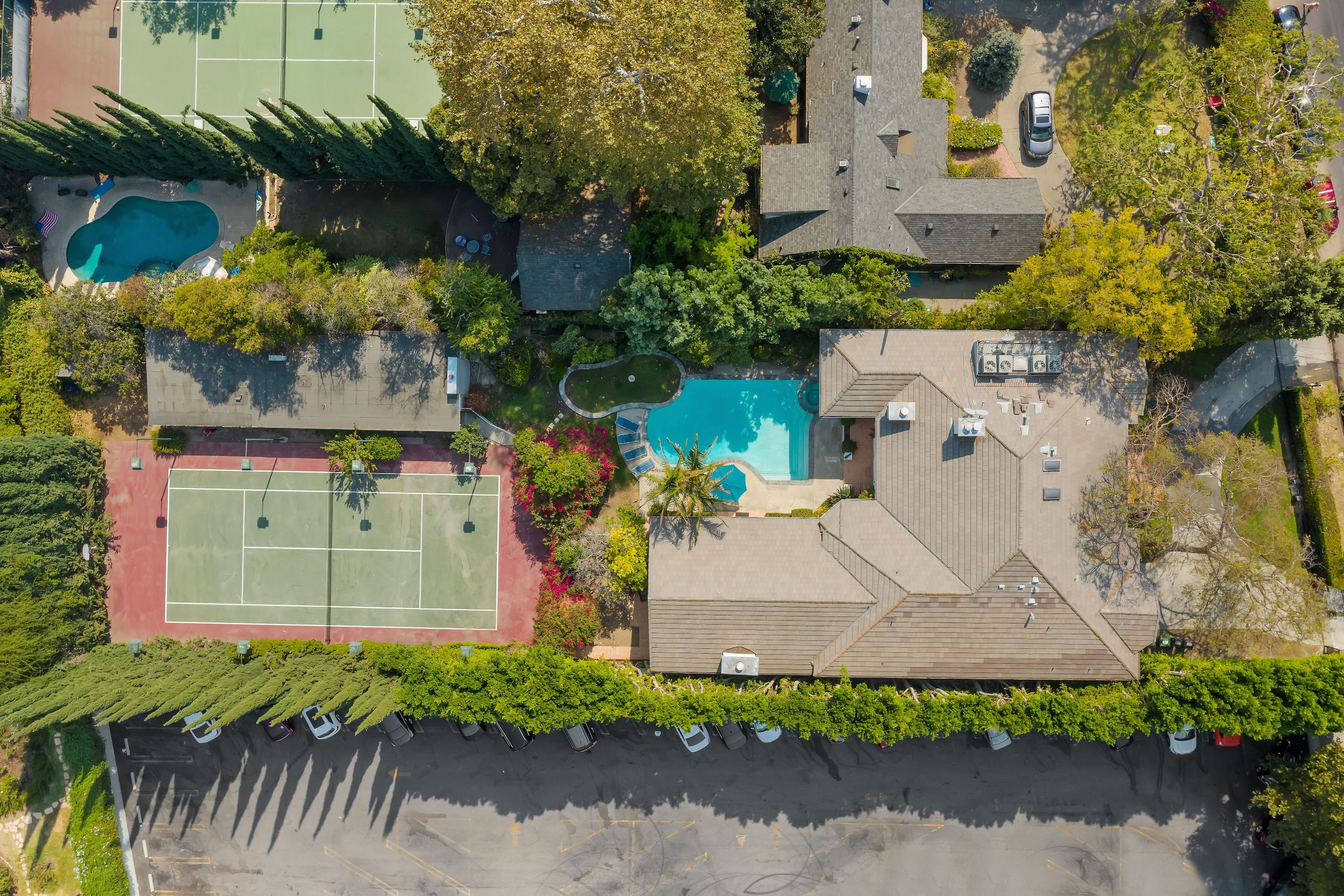 Incredible double height interior ceiling volume is throughout this grandly-sized Tennis Court estate located in desirable Silver Triangle near best restaurant & retail destinations. Over one half acre lot size -- one of the areas absolute largest, allowing it to feature the spacious Main Residence, Pool & gardens, 2 Br/2Ba Guest House plus the court. Large gathering spaces include double width hallways that lead to family lounges or homework study areas near the accompanying bedroom suites. Enormous Game & Media Room overlooks Pool and lounge firepit terrace. Fully independent Guest House with Kitchen, Liv Rm plus 2 sleeping suites, overlooks Tennis Court and just-finished reconstruction /expansion. Carpenter School proximity and beautiful walk streets in neighborhood create a rare offering for the value minded.