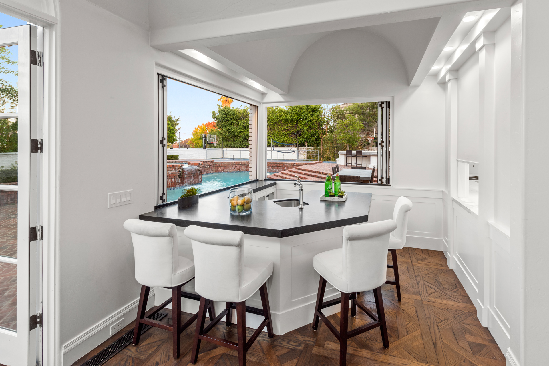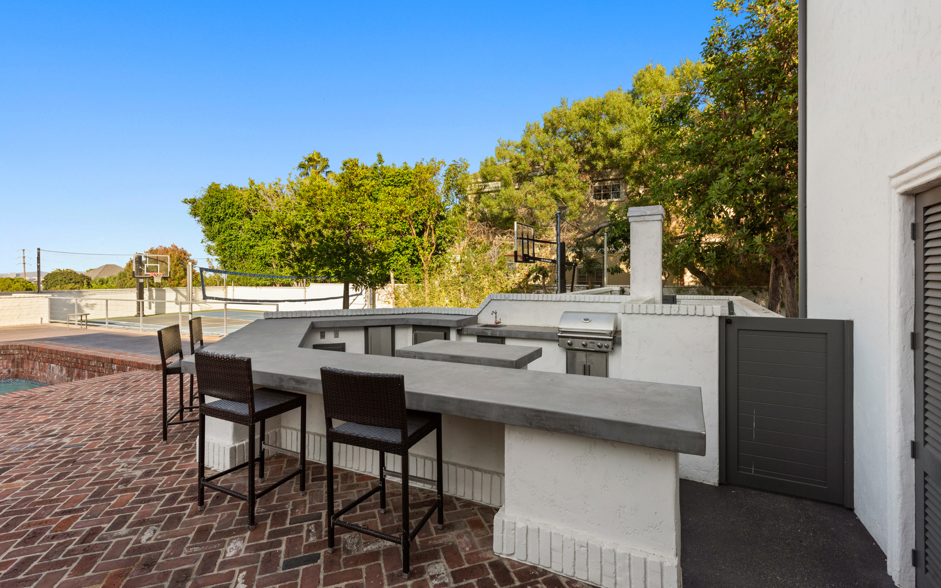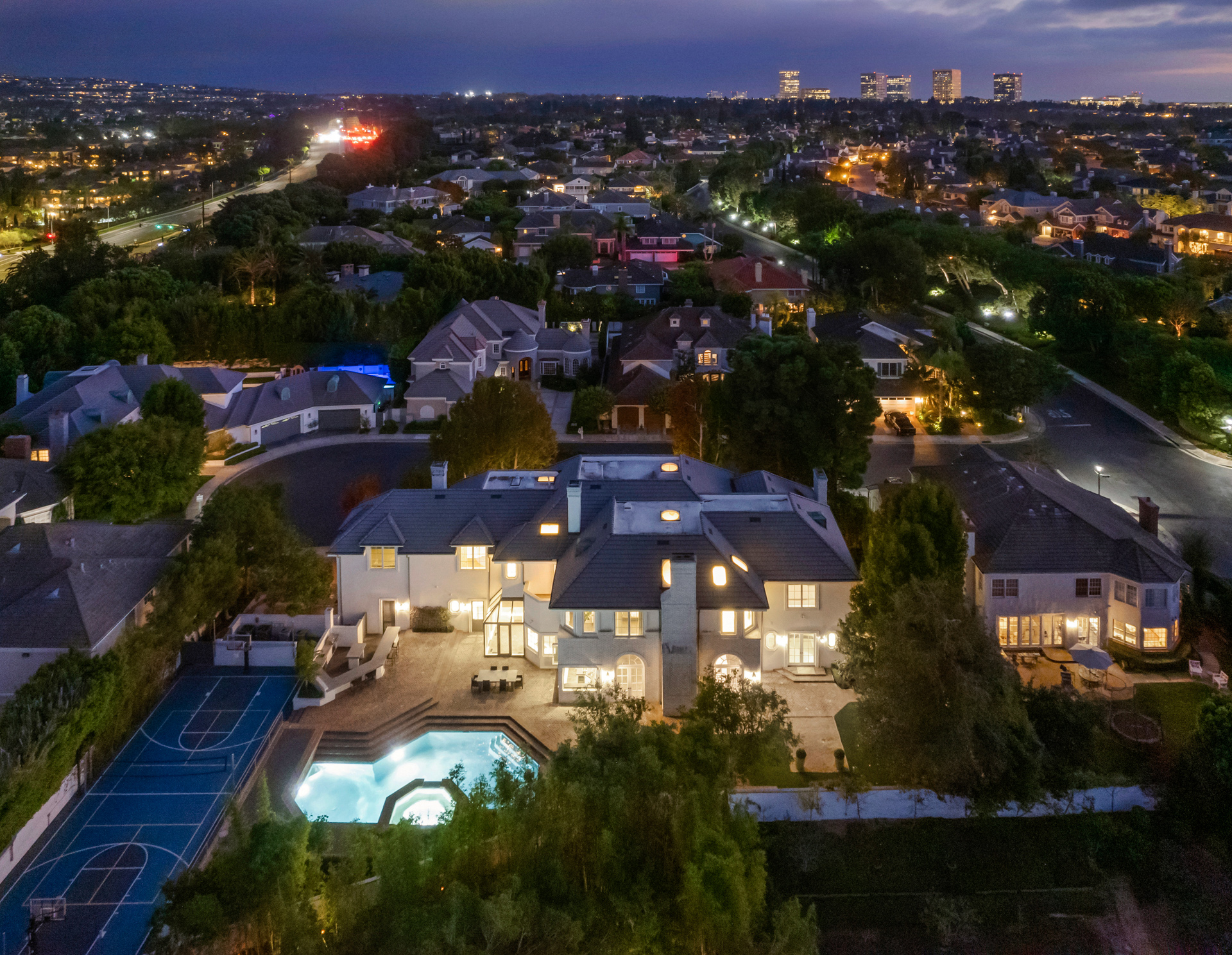 string(1623) "Located in the heart of Newport Beach in the prestigious Belcourt gated community sits this impressive, one-of-a-kind estate at the end of a quiet cul-de-sac. Set on over half an acre of well-manicured grounds, the home boasts an impressive ~8,200sf of livable space with 5 bedrooms and 6.5 bathrooms. A dramatic two-story foyer instantly captivates your attention toward an architecturally profound floating staircase. The property offers a well thought out and conducive floor plan designed for those that appreciate quality and comfort. The main level showcases an impressive formal living room, office, family room with a built-in bar equipped with folding glass paneled windows, formal dining room, and a gourmet chef's kitchen that features top-of-the-line appliances, an expansive center island, butler's pantry, and a breakfast room with tons of bright, natural light. Glide up to the second level where you can find three additional ensuite bedrooms, a spacious bonus room, and the primary suite that includes a fireplace, attached deck overlooking the impressive grounds, and a spa-like bathroom with two separate restrooms, a sauna, and palatial walk-in closet. The resort-style backyard includes a glistening pool and spa, outdoor kitchen and BBQ area, full basketball and volleyball court, and a beautifully manicured yard for endless entertaining. Recent upgrades include new oak and marble flooring, new custom carpets in bedrooms, solid wood paneling with tasteful accent walls done with custom craftsmanship, designer counter tops, designer backsplash, premium quality appliances and brilliant chandeliers."