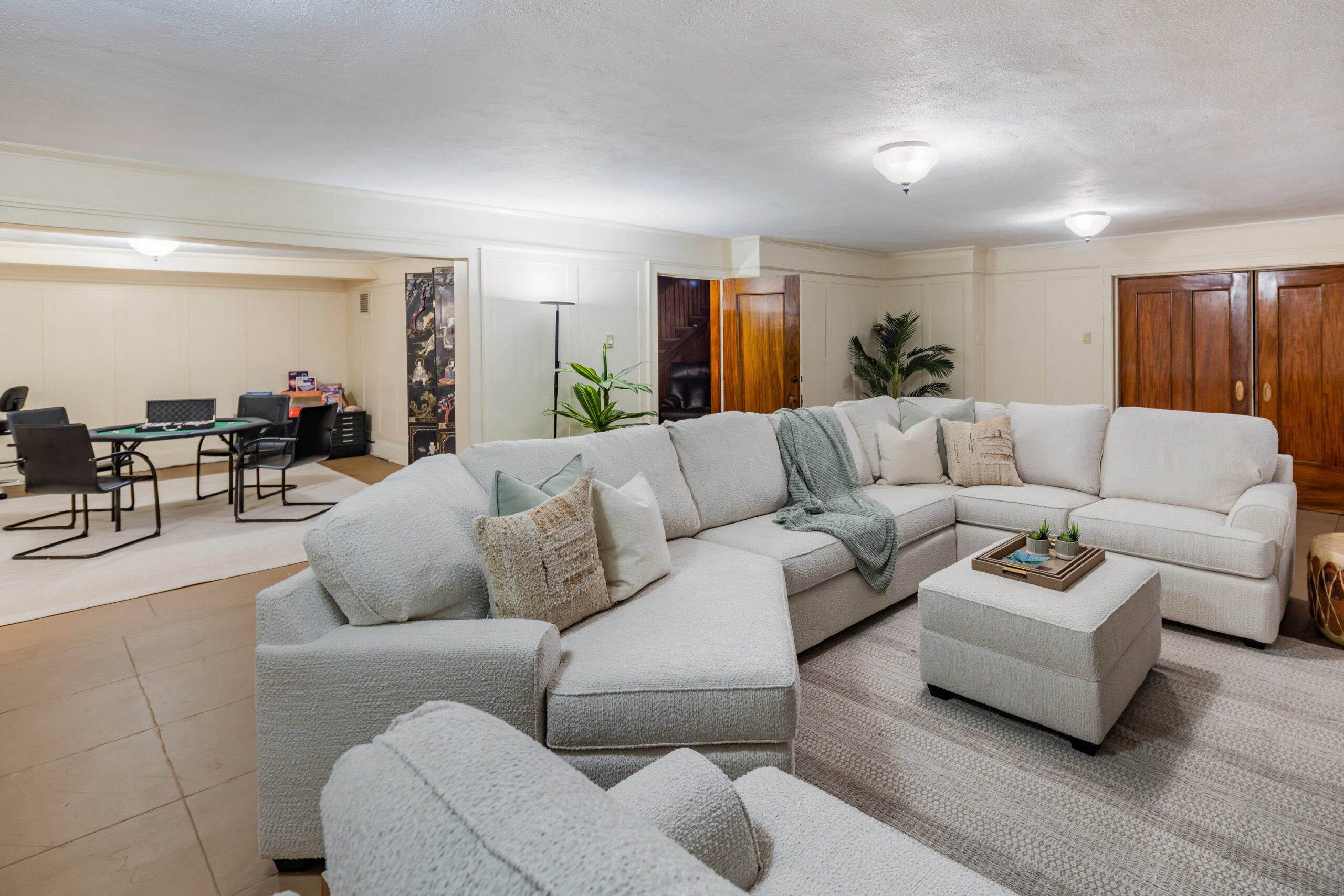 Welcome to this exquisite Windsor Square estate, a stunning blend of historic charm and modern luxury. This home boasts timeless craftsmanship, elegant architectural details, and luxurious finishes throughout. The grand living and family rooms feature large windows, intricate woodwork, and beautiful fireplaces, creating spaces that are both inviting and refined. A formal dining room sets the stage for unforgettable gatherings, while the chef's kitchen combines classic design with modern convenience, offering top-of-the-line appliances and ample space. The property is steeped in history and charm, offering a glimpse into Old Hollywood. Imagine driving by during daylight hours and witnessing people from around the world stopping to capture the iconic view unique to this block, the historic and magical Hollywood Sign in all its glory, flanked by a palm tree-lined street. It's a breathtaking sight that never gets old. Over the years, this home has served as the backdrop for countless movies, television shows, music videos, and even high-end brand runway fashion shows, with hundreds of people paying to photograph this historic property. The primary suite serves as a serene retreat with a spacious dressing area and a spa-like marble bathroom, while additional bedrooms are generously sized, each with its own unique charm. A private guesthouse adds to the home's appeal, complete with a kitchen and bathroom, offering an ideal space for visitors or additional flexibility. One of the standout features of the property is its history as an entertainment haven. Originally built as a game room for entertaining rather than a basement, the space once featured one of the only private bowling lanes in Hancock Park. Though the lane was removed a few years ago in preparation for a screening room (a project that was sidelined for other pursuits), the original ball return still remains. Picture the fireplace lit, friends and family bowling, poker being played in the adjacent side room, an Old Hollywood "man cave" designed for vibrant gatherings and lively fun. Outside, the lushly landscaped backyard serves as a secluded oasis with a sparkling pool, spa, and spacious patio perfect for entertaining or relaxing. Stained-glass windows, balconies, and period-inspired tilework enhance the home's timeless allure, while modern updates ensure comfort and convenience. This Windsor Square masterpiece is more than just a home, it's a lifestyle and a rare opportunity to own an elegant estate that perfectly balances history, modern living, and the magic of Hollywood.