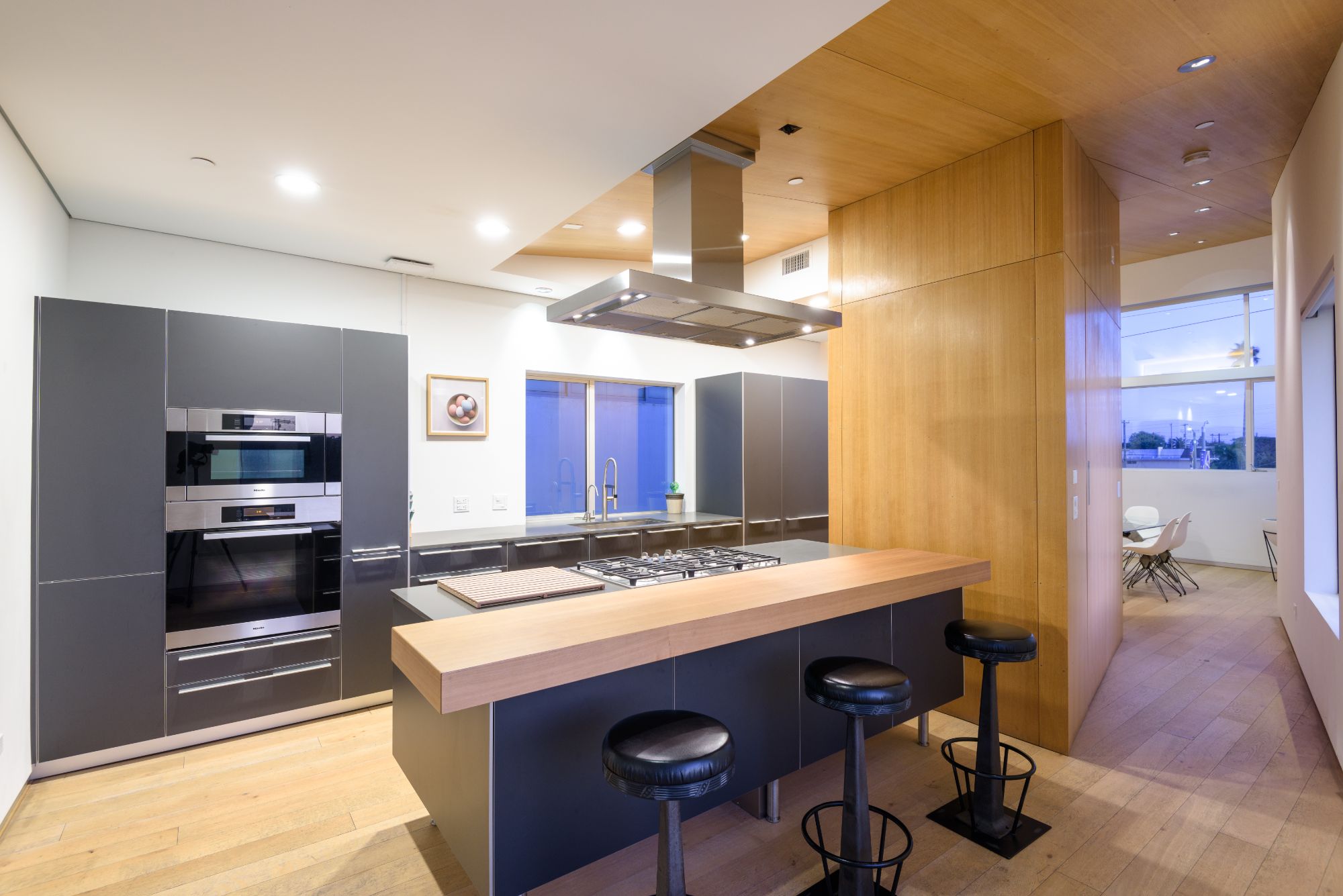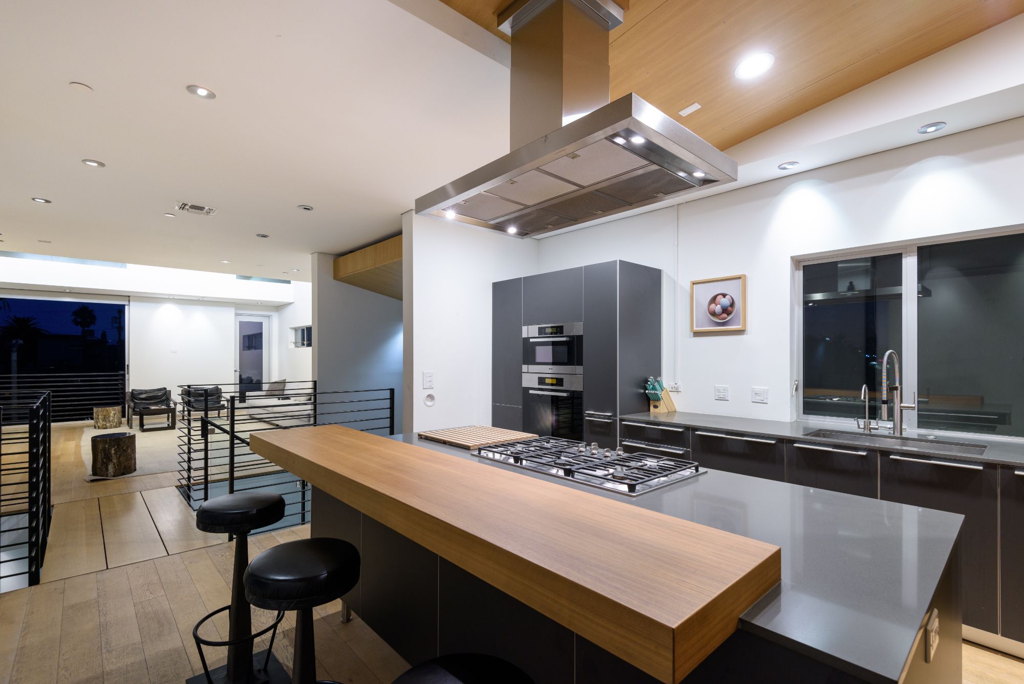 Within walking distance to Abbot Kinney and Venice Beach, this meticulously designed 3,089 Sq Ft home is a must-see. William Adams, an award winning Architect was instrumental in creating the industrial ambience felt throughout the property. Screed-polished concrete, and white oak floors make up the base of the home, which comprises 3 bedrooms and 4 bathrooms. Each bedroom and bathroom benefits from great ceiling height, and natural light. The Master Bathroom benefits from a stand alone Americh tub, along with Graff fixture sinks. The cherry on the cake is an amazing 300 Sq Ft roof terrace (with amazing views of the water and the hills). There is great rental upside if an owner ever wishes to lease the property. The home is fitted with top of the range appliances, ranging from a Miele stainless steel kitchen with Bulthaup cupboards, a 200+ bottle wine room, and a superb dine-in bar. making the home perfect for entertaining. Any buyer looking in Venice will have to see this home.