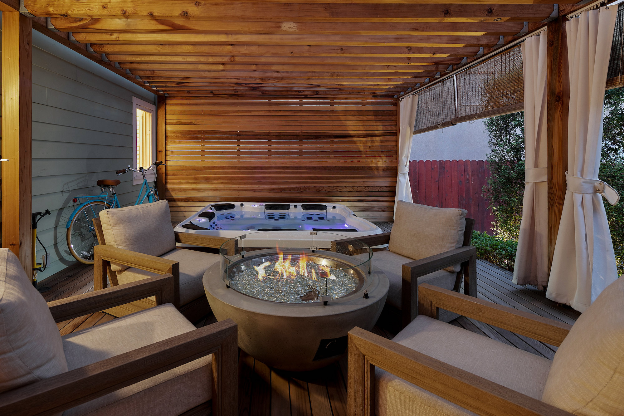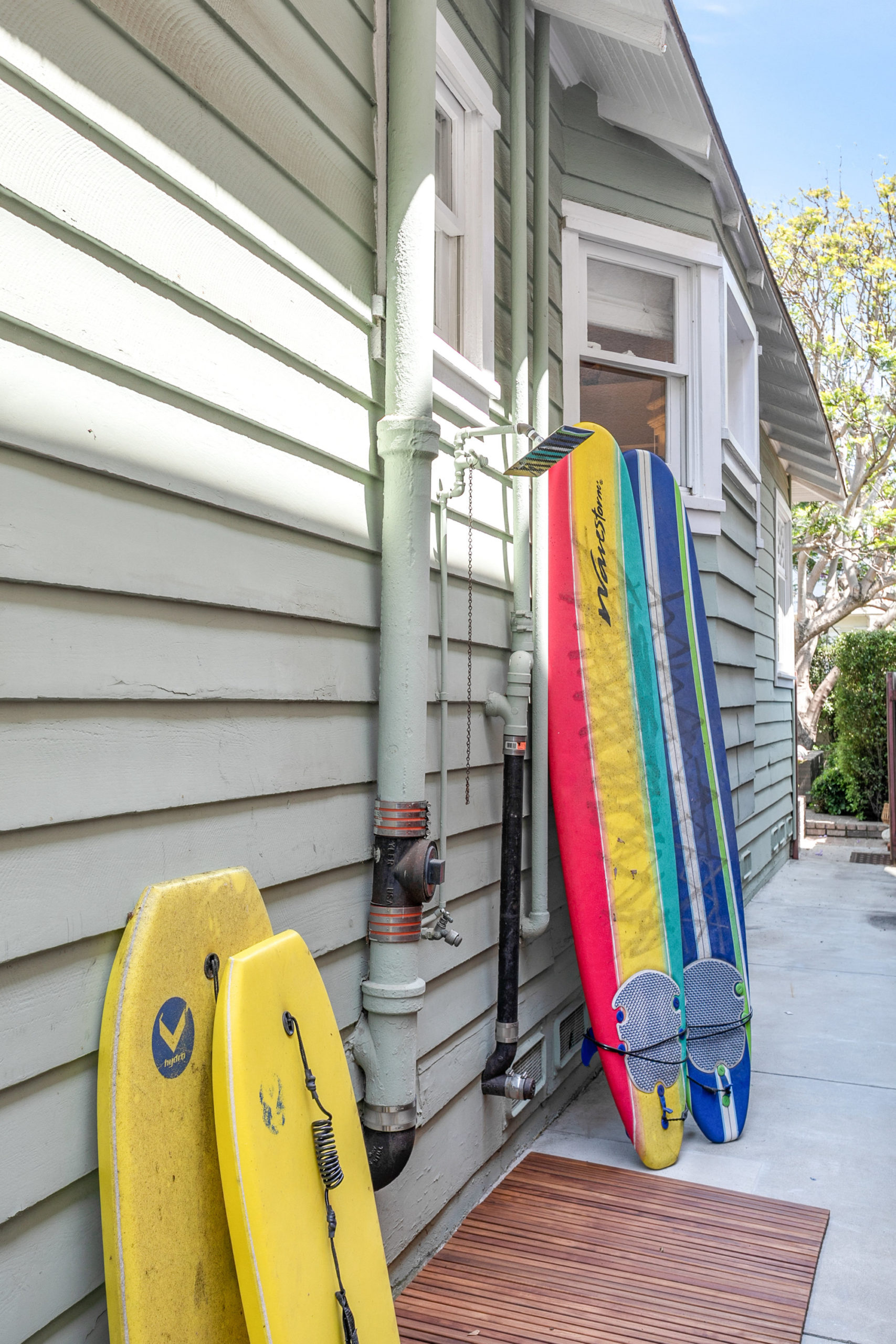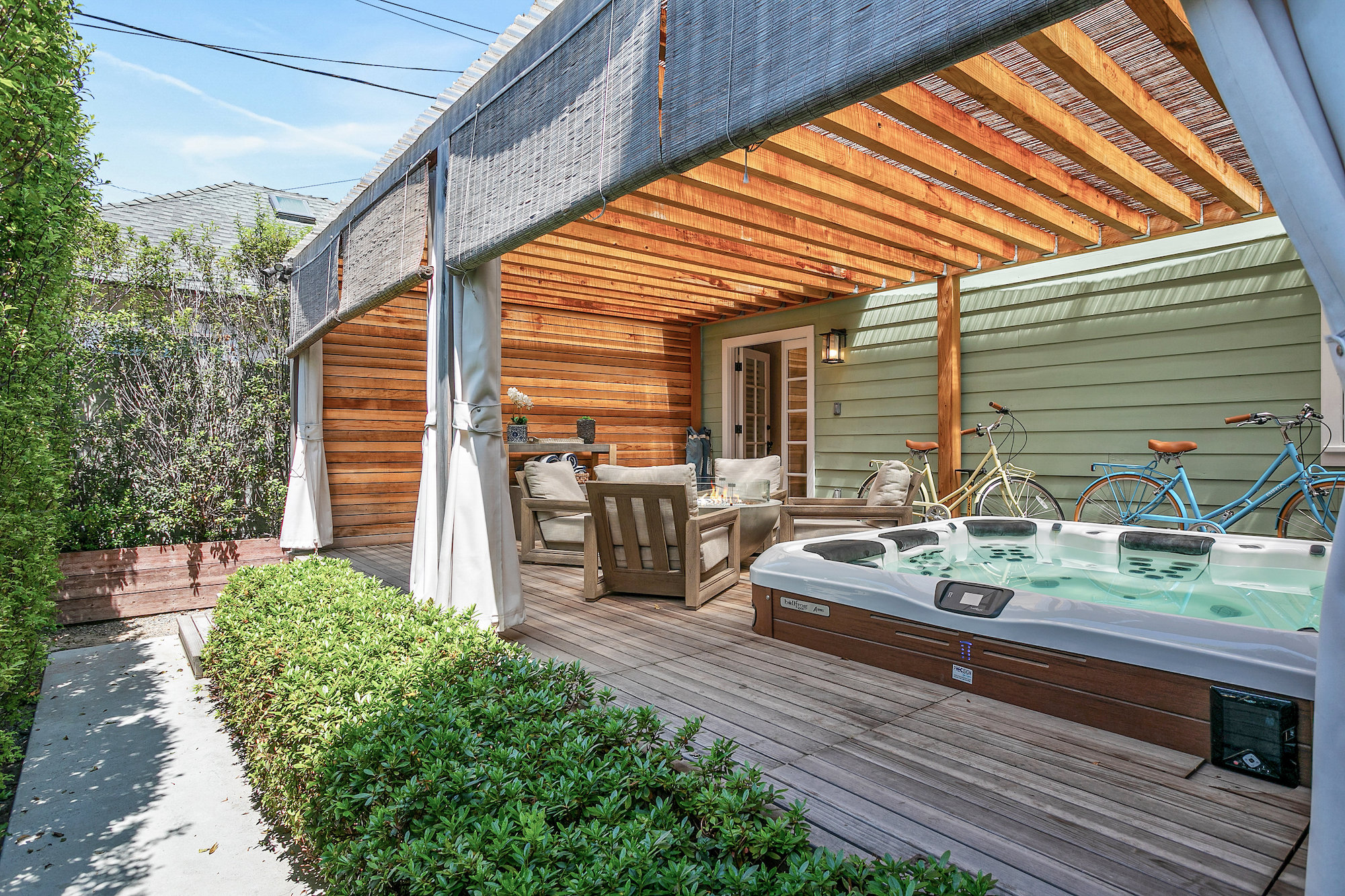 Beautifully renovated 1906 craftsman. Located on a nostalgic Venice beach walk-street near the Venice & Santa Monica border. This classic home exudes character and charm. The renovations are a perfect blend of the past and present. Just steps from the sand, this 2100 square foot, 4 bedroom and 3 bathroom home features nicely landscaped front and back yard patios, great for entertaining. Newly refinished hardwood floors throughout. Fully updated kitchen with new appliances, cabinets, and custom cement counter tops. Large Master suite is on 2nd level with vaulted ceilings, his and her closets, bookcase, & large bath. Master bath features a refinished 1924 claw foot bathtub. The front patio and backyard gated on all sides with code access create a safe compound feel that is ideal for entertaining and spending time outdoors. Cozy up next to the fireplace after a soak in a private outdoor hot tub after exploring the best of Venice. The rear driveway has a new roll up gate that spans the width of the property, and parking for 3. Come embrace the Venice beach lifestyle at its best.