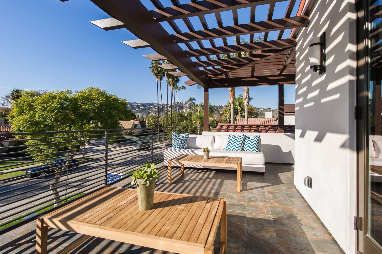 Behind gates and set back from the street, this stunning home is a combination of classic Spanish architecture and exquisite modern finishes offering four generously sized en-suite rooms, five bathrooms, a two car garage, and saltwater pool. This stunning Spanish features a dramatic foyer leading to wonderfully proportioned rooms with great scale and volume – perfect for entertaining. The large open floor plan with living and dining rooms open to a private beautifully landscaped yard with saltwater pool and spa. Master suite features an enormous bath, walk-in closet, and private balcony. Chef's kitchen with top of the line appliances. Exquisite attention to detail and designer touches throughout. This home captures the casual yet sophisticated lifestyle of Southern California.