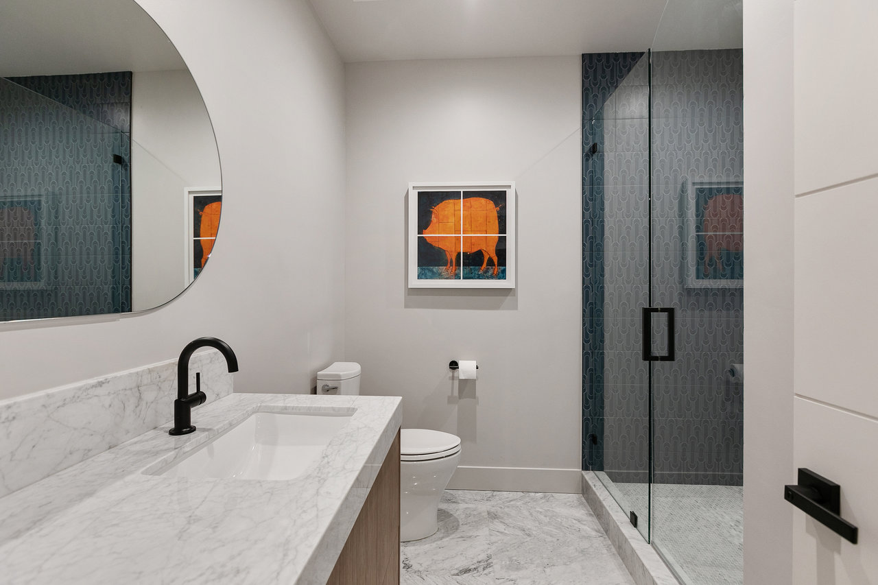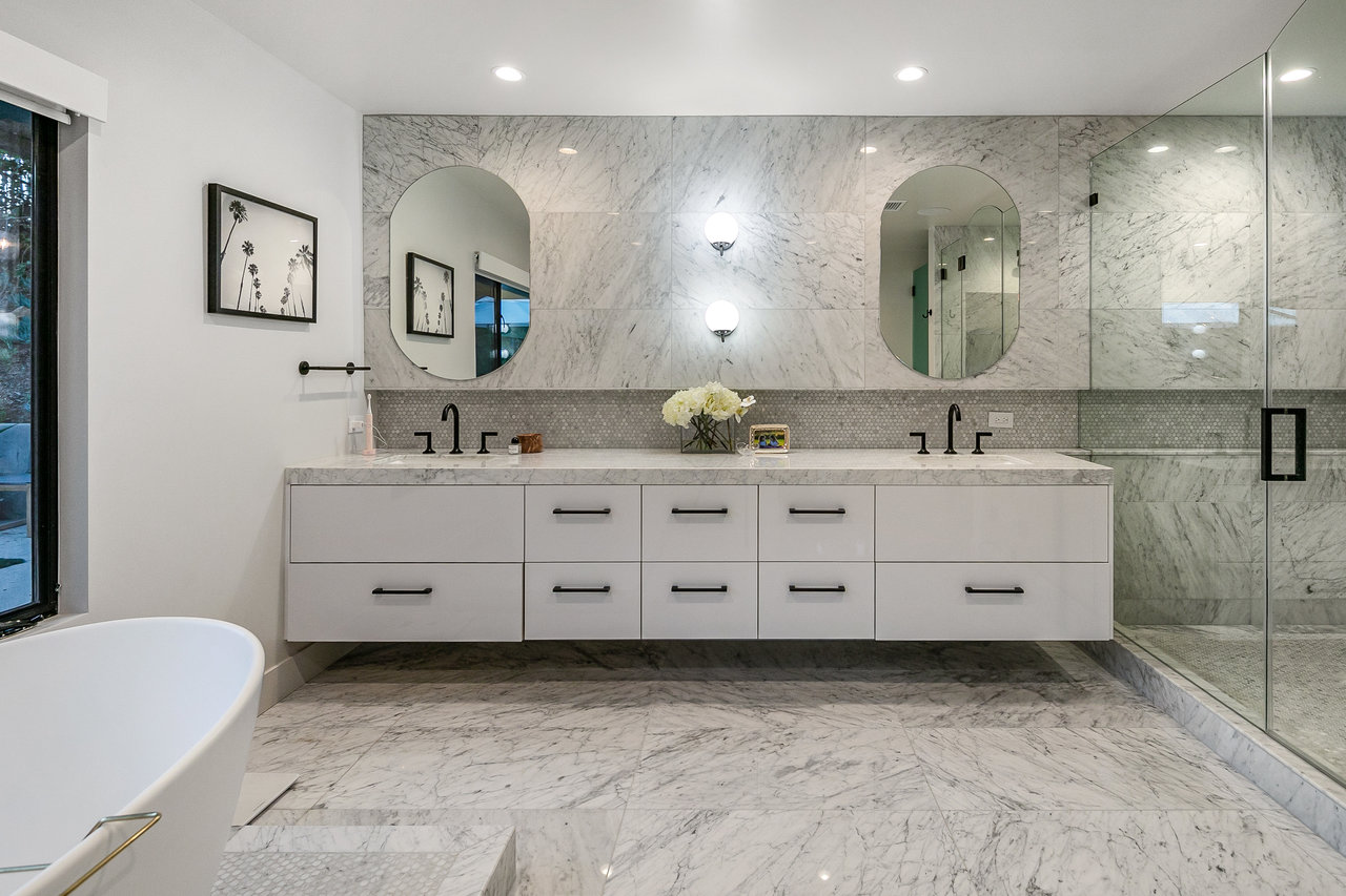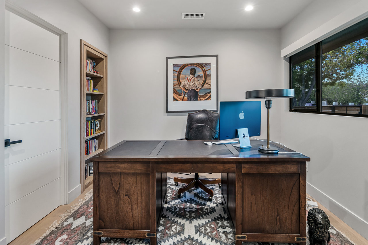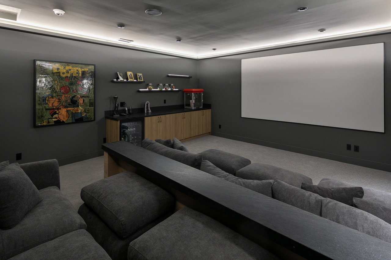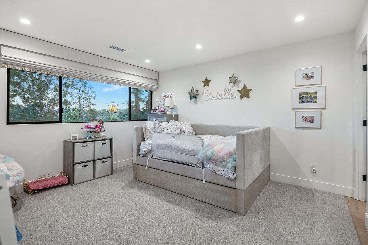 Situated on a serene and secluded corner lot, just moments from the famed Ventura Blvd, this ~4,200 square foot home showcases 5 bedrooms all en-suite, 6 bathrooms and a complete open floor plan. Outfitted with exceptional design and finishes, the home radiates natural light with walls of glass that allow for a complete indoor/outdoor flow. The main living area hosts a grand, see-through fireplace, unifying the dining room, living room, and gourmet chef's kitchen. An entertainer's dream, the kitchen features top-of-the-line appliances, a large stone-topped waterfall island with seating, and white bespoke cabinetry. The primary suite includes floor-to-ceiling glass sliding doors, a generous walk-in closet, and bath with dual vanities, sunken tub, and a walk-in shower with rainfall shower-head. California living at its finest, this home seamlessly allows for the grand interior space to flow out to the backyard that has lush, matured greenery, a pool, spa, outdoor BBQ area with island seating, and fire pit. Other features included in this home include a movie theater, gym, wine storage wall, office, and complete smart home system. Setting the bar for entertaining, convenience, and luxury, this home has it all!