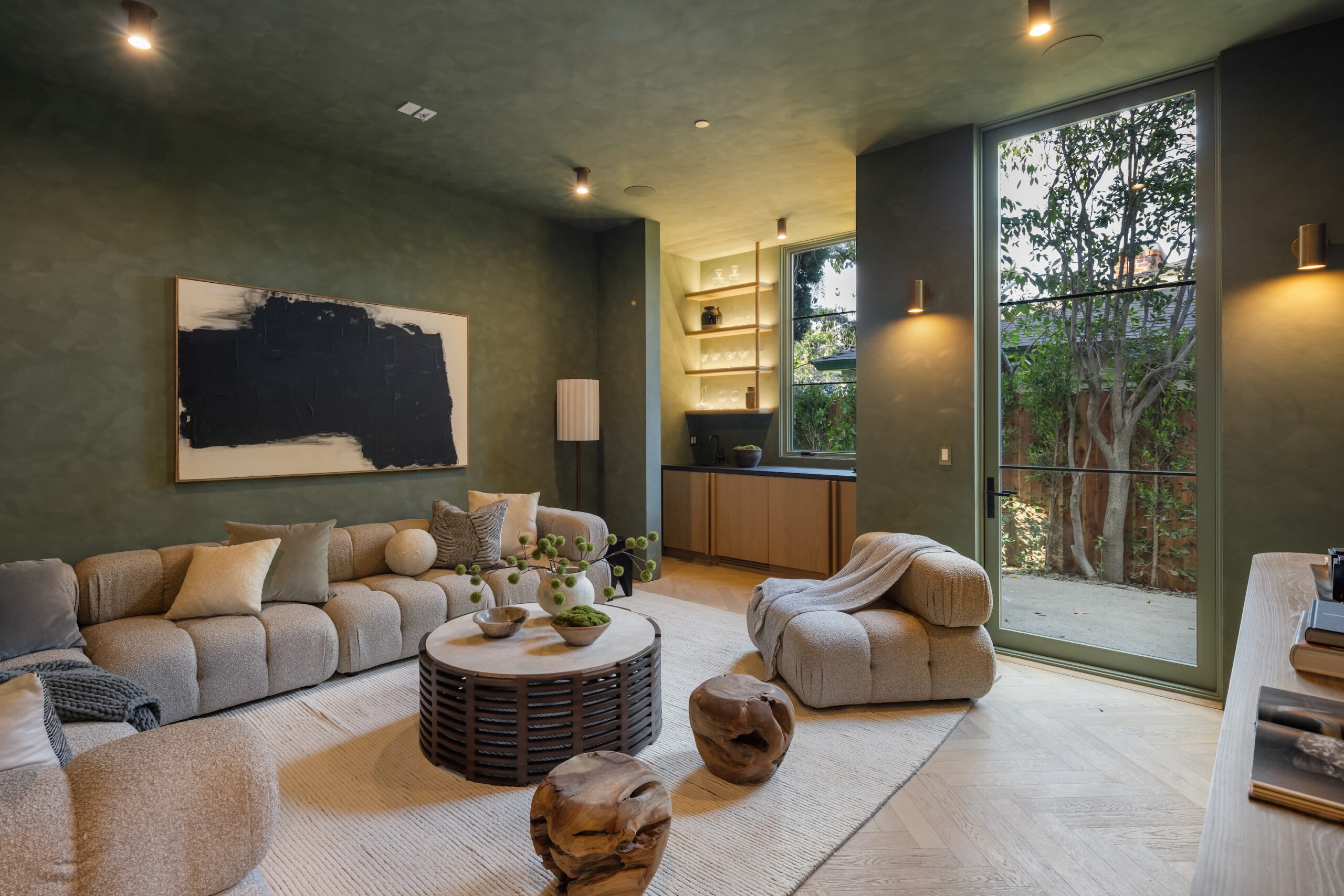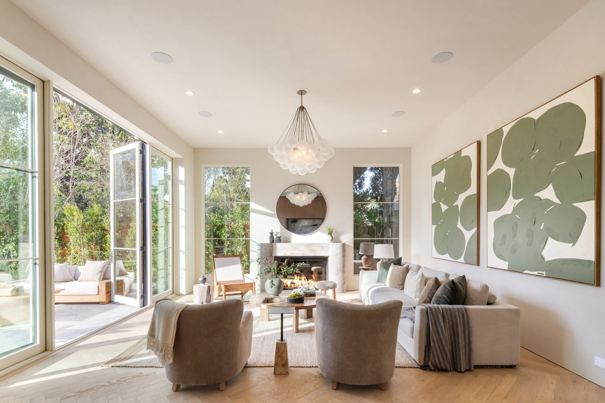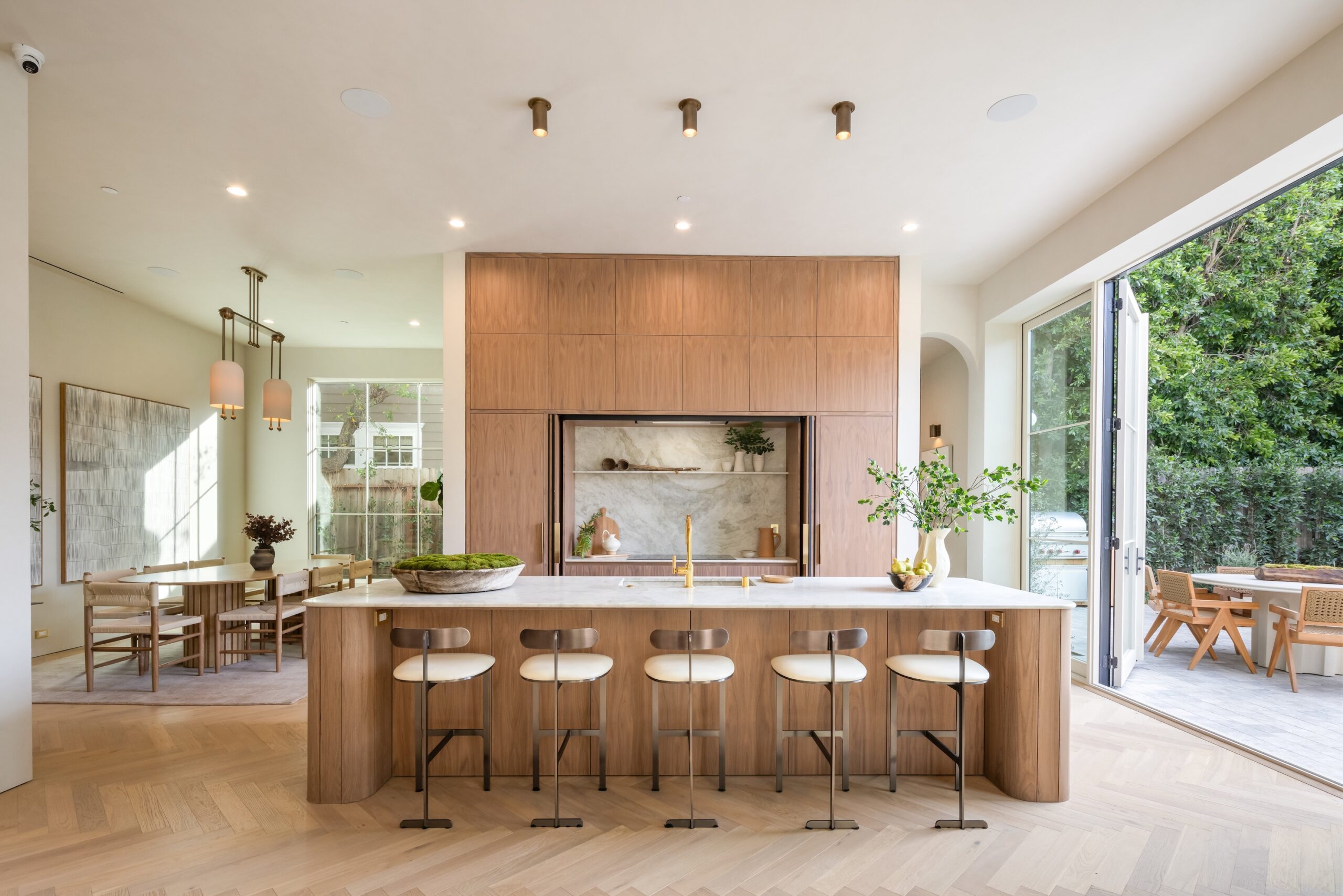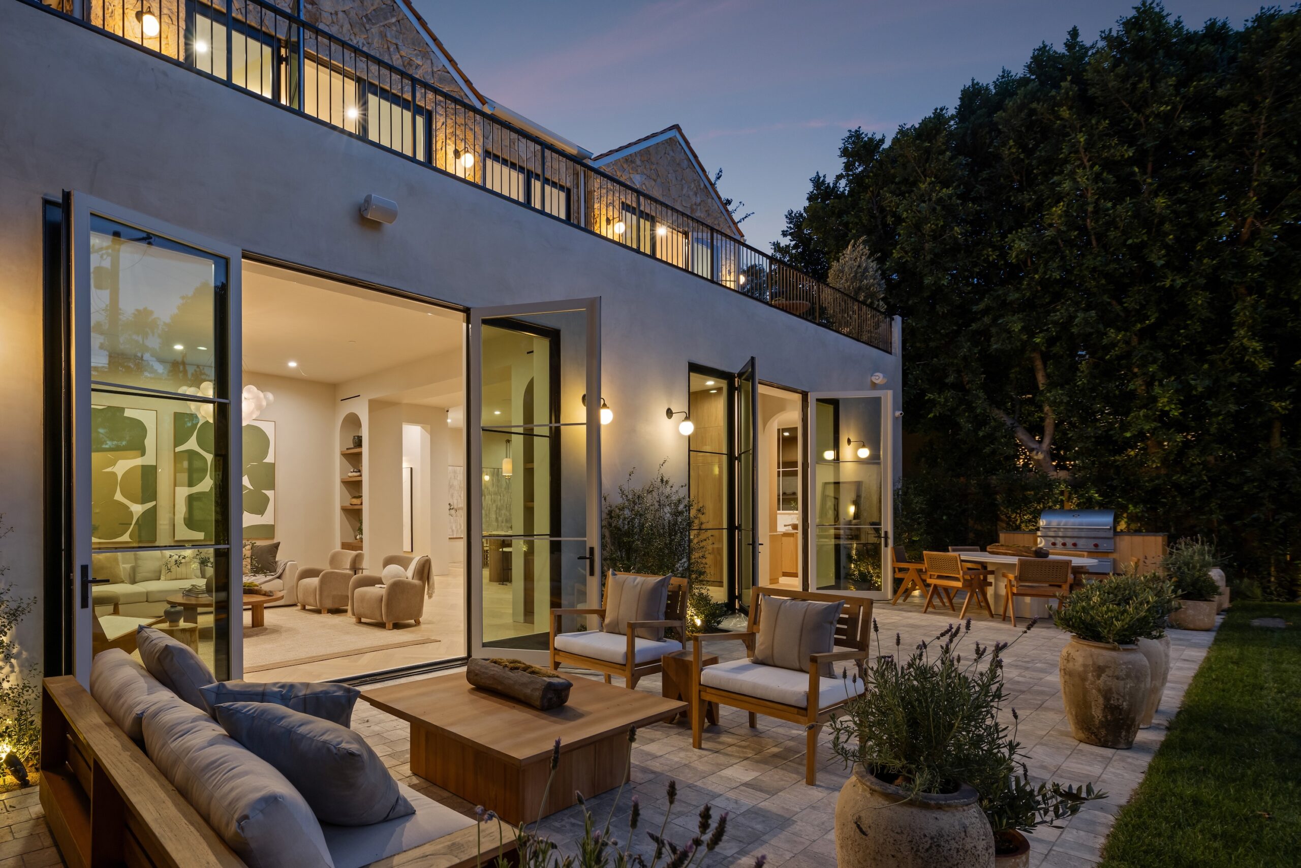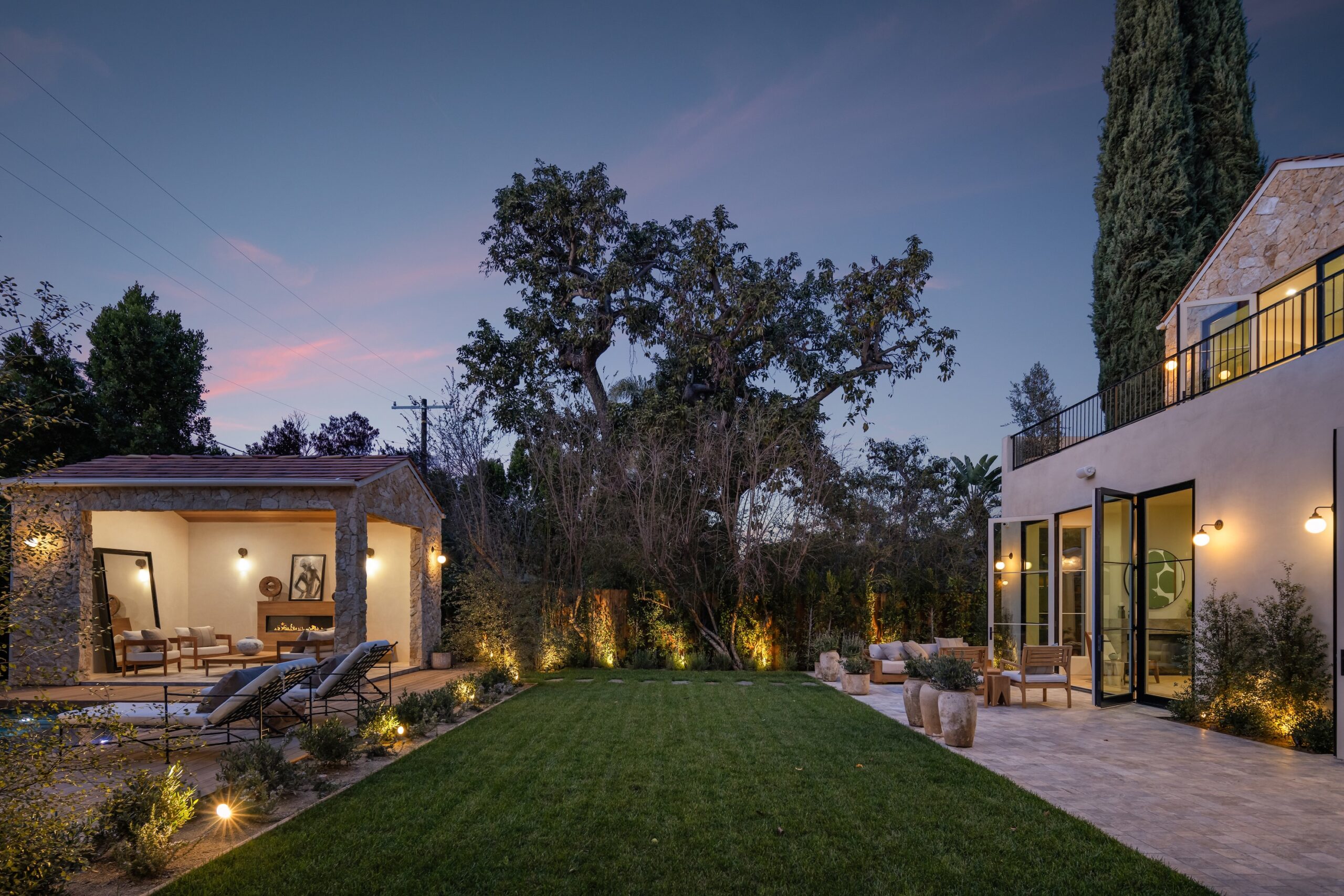 4163 Ventura Canyon Ave presents a breathtaking fusion of elegance and contemporary luxury. Tucked behind gates in a lush, private setting, this newly built residence showcases exquisite craftsmanship, warm organic textures, and an effortless indoor-outdoor flow. Step through the grand arched entry into a sunlit interior defined by soaring ceilings, refined plaster walls, and European white oak flooring in a stunning chevron pattern. The open-concept living spaces exude warmth and sophistication, anchored by a chef's kitchen with custom walnut cabinetry, marble countertops, a prep kitchen for additional functionality, and seamless access to the outdoor oasis. The adjoining dining and family room, illuminated by expansive glass doors, extends onto an alfresco lounge overlooking the serene backyard. The primary suite is a private sanctuary, featuring a fireplace, vaulted ceilings, and direct access to a tranquil terrace. The spa-like ensuite is adorned with book-matched marble, dual rain showers, a freestanding soaking tub, and custom oak vanities. Generous secondary bedrooms boast designer finishes and oversized arched windows framing picturesque views. Outside, the meticulously landscaped grounds offer multiple patios, a lush lawn, and a sparkling pool and spa, perfect for entertaining or quiet relaxation. A detached guest house provides additional versatility, ideal for a home office, gym, or retreat. Every detail of this residence reflects an unparalleled commitment to quality and design, creating a home that is as striking as it is inviting. Nestled in a prime Sherman Oaks location, moments from fine dining and upscale shopping, this architectural masterpiece delivers the ultimate California lifestyle. Square footage is as follows: 4,089 Main House; 231 Cabana; 231 Rec Room; Total 4,551SF.