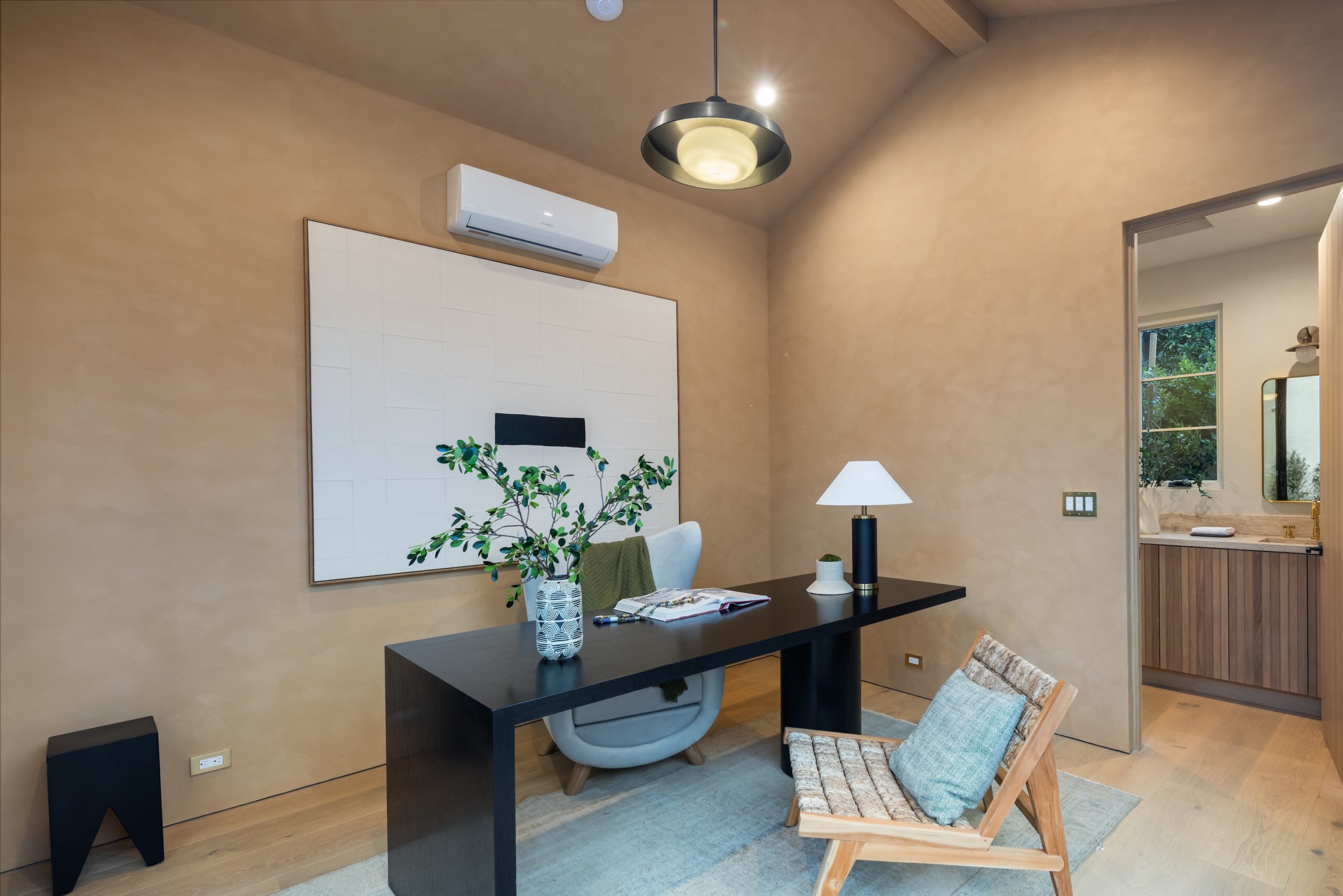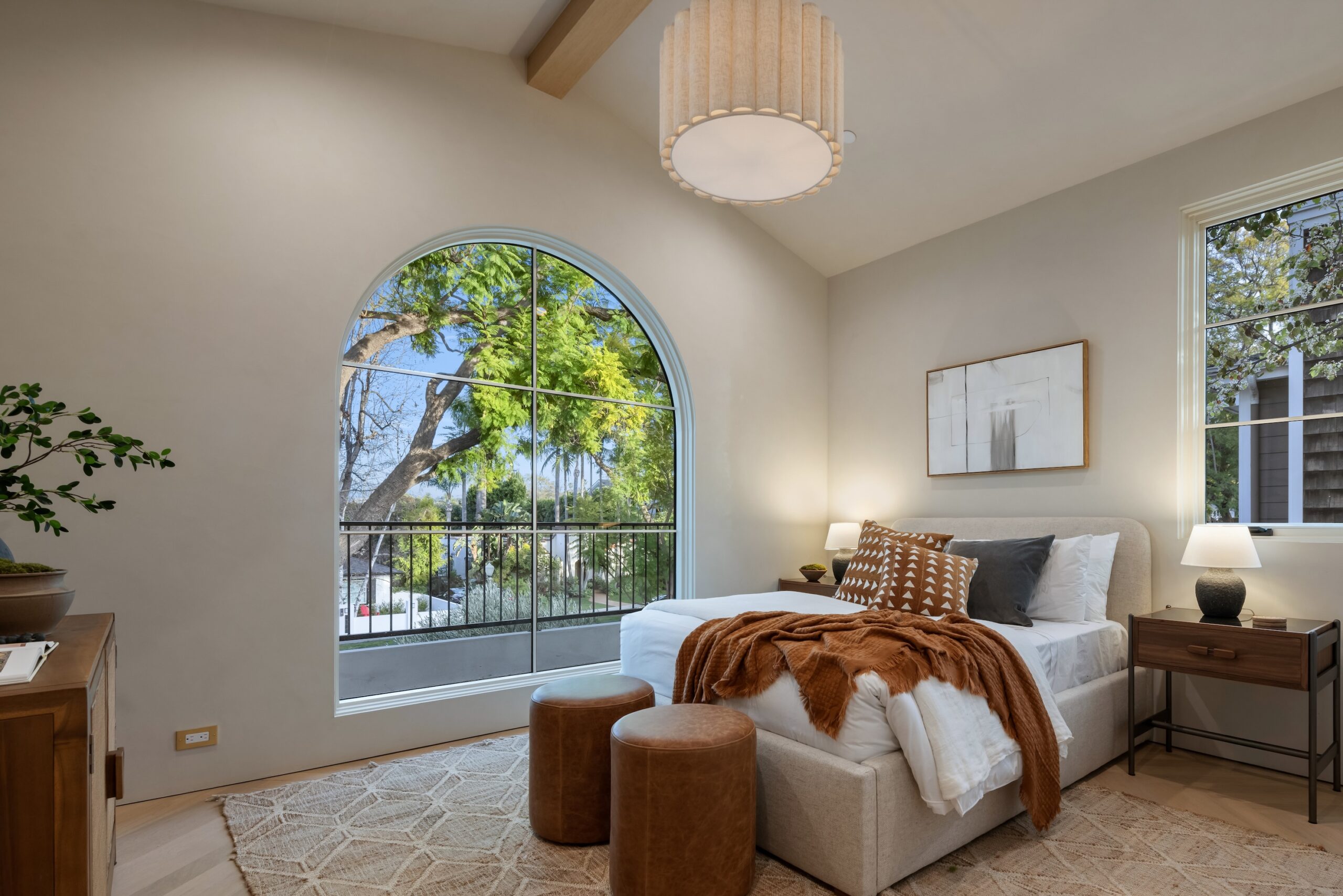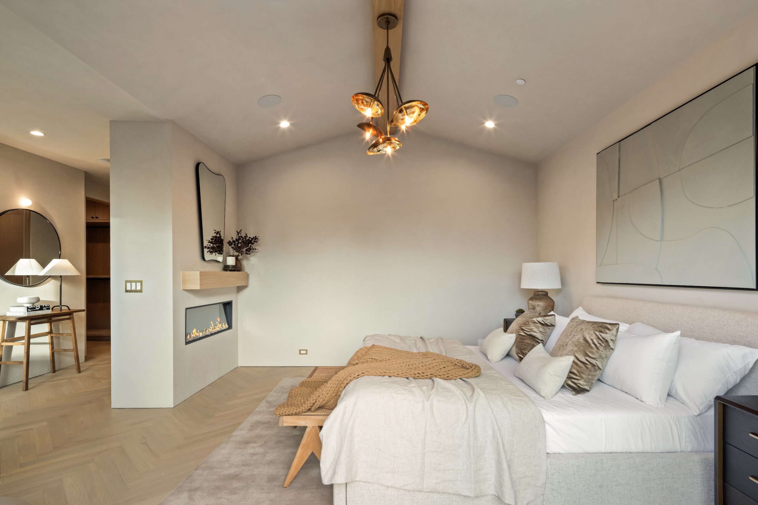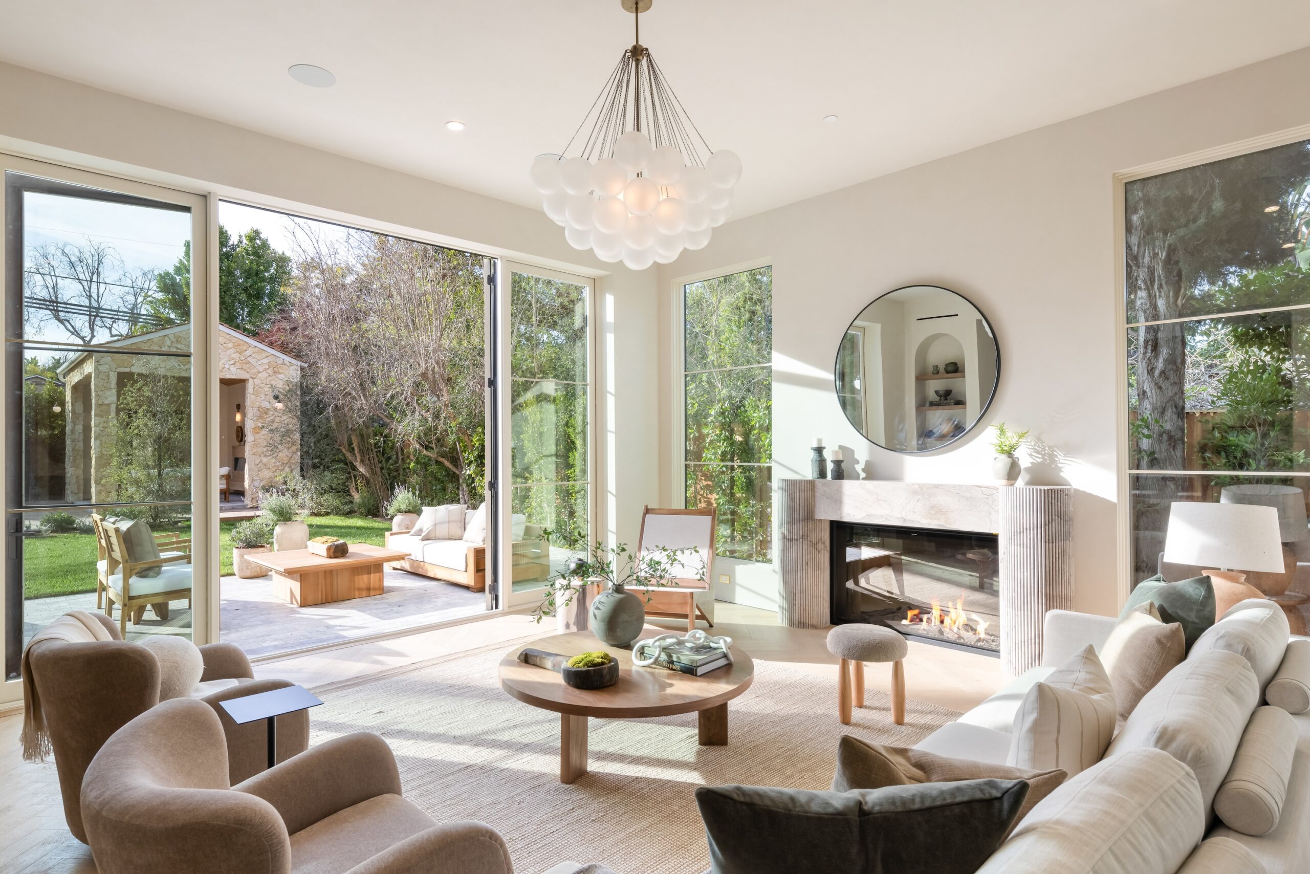 4163 Ventura Canyon Ave presents a breathtaking fusion of elegance and contemporary luxury. Tucked behind gates in a lush, private setting, this newly built residence showcases exquisite craftsmanship, warm organic textures, and an effortless indoor-outdoor flow. Step through the grand arched entry into a sunlit interior defined by soaring ceilings, refined plaster walls, and European white oak flooring in a stunning chevron pattern. The open-concept living spaces exude warmth and sophistication, anchored by a chef's kitchen with custom walnut cabinetry, marble countertops, a prep kitchen for additional functionality, and seamless access to the outdoor oasis. The adjoining dining and family room, illuminated by expansive glass doors, extends onto an alfresco lounge overlooking the serene backyard. The primary suite is a private sanctuary, featuring a fireplace, vaulted ceilings, and direct access to a tranquil terrace. The spa-like ensuite is adorned with book-matched marble, dual rain showers, a freestanding soaking tub, and custom oak vanities. Generous secondary bedrooms boast designer finishes and oversized arched windows framing picturesque views. Outside, the meticulously landscaped grounds offer multiple patios, a lush lawn, and a sparkling pool and spa, perfect for entertaining or quiet relaxation. A detached guest house provides additional versatility, ideal for a home office, gym, or retreat. Every detail of this residence reflects an unparalleled commitment to quality and design, creating a home that is as striking as it is inviting. Nestled in a prime Sherman Oaks location, moments from fine dining and upscale shopping, this architectural masterpiece delivers the ultimate California lifestyle. Square footage is as follows: 4,089 Main House; 231 Cabana; 231 Rec Room; Total 4,551SF.